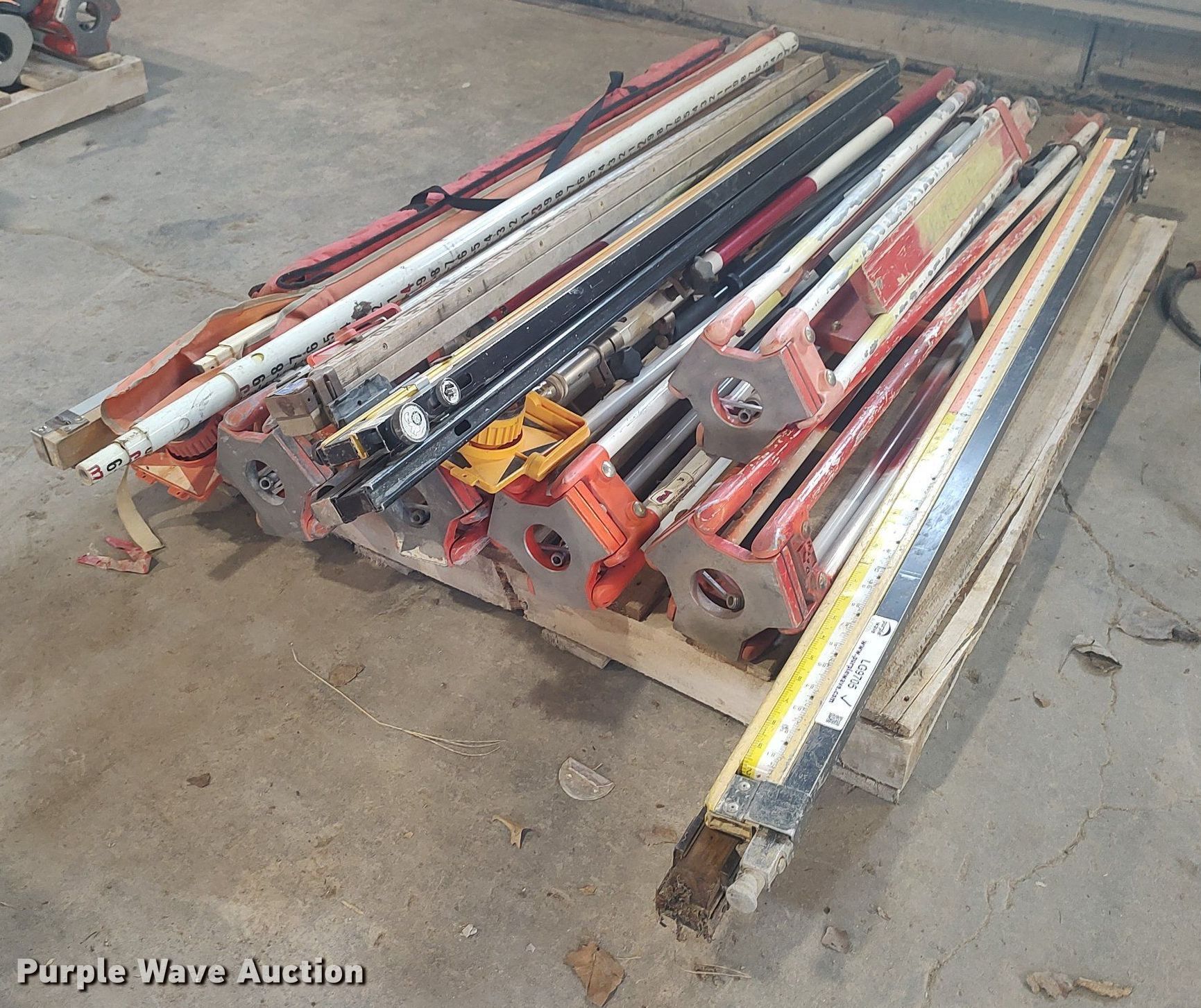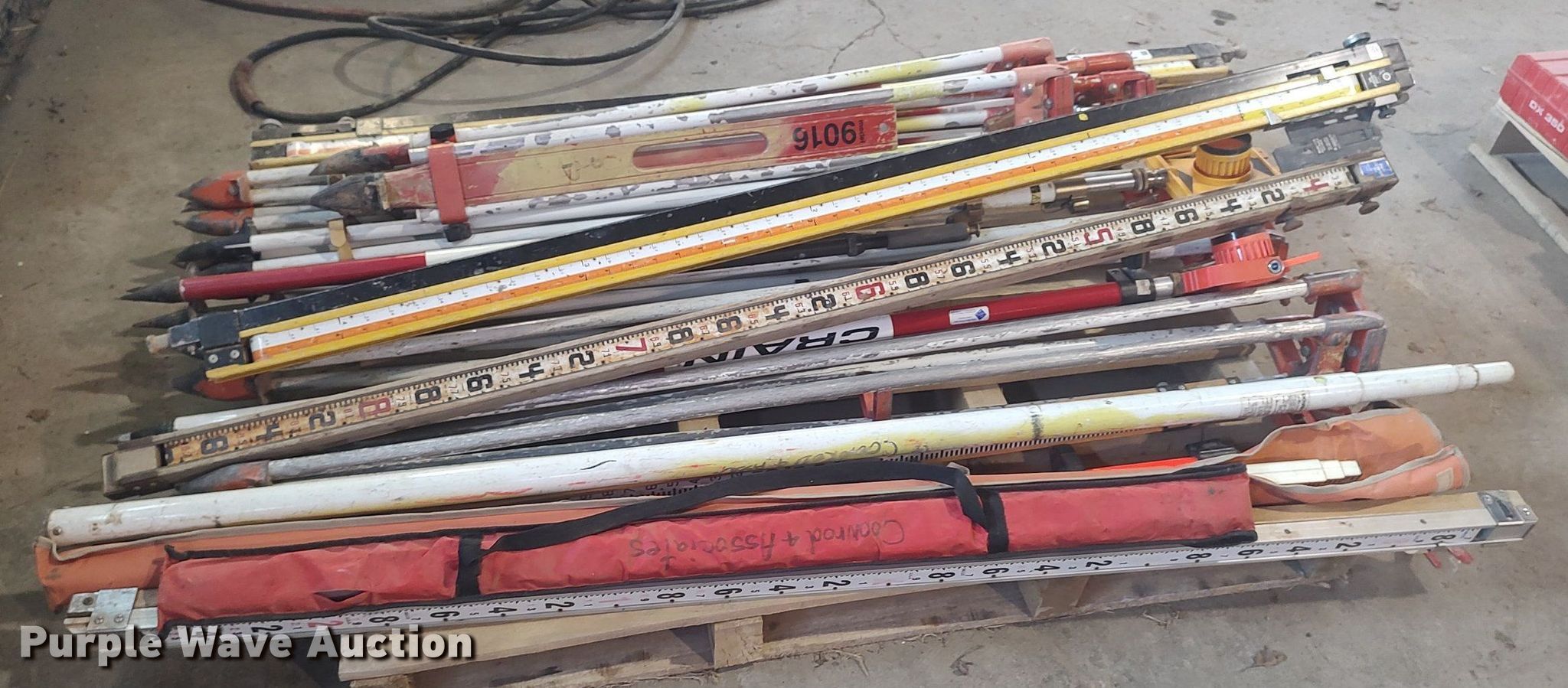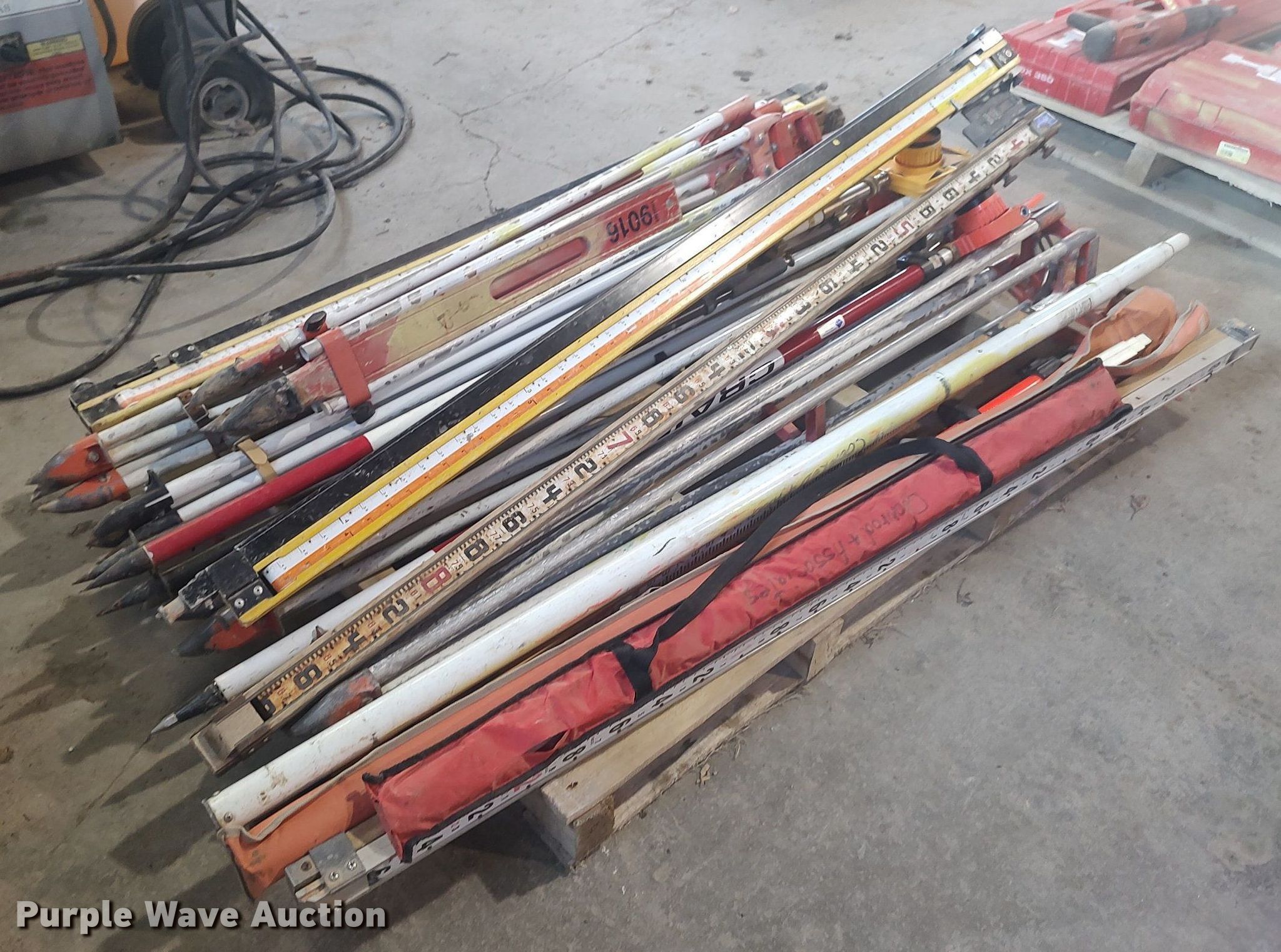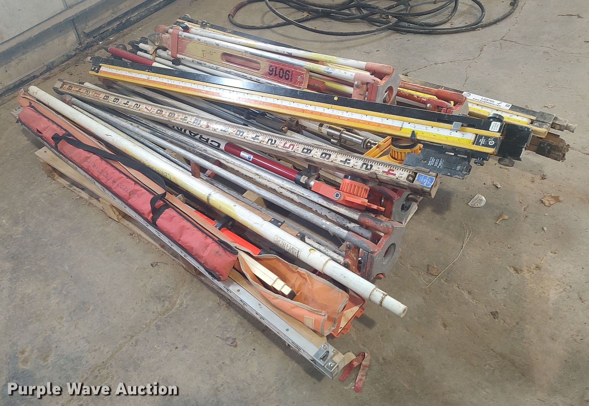 Purple Wave is selling a used Surveying Equip. in Kansas. This item is a Surveying equipment with the following: (6) tripods, (6) measuring sticks