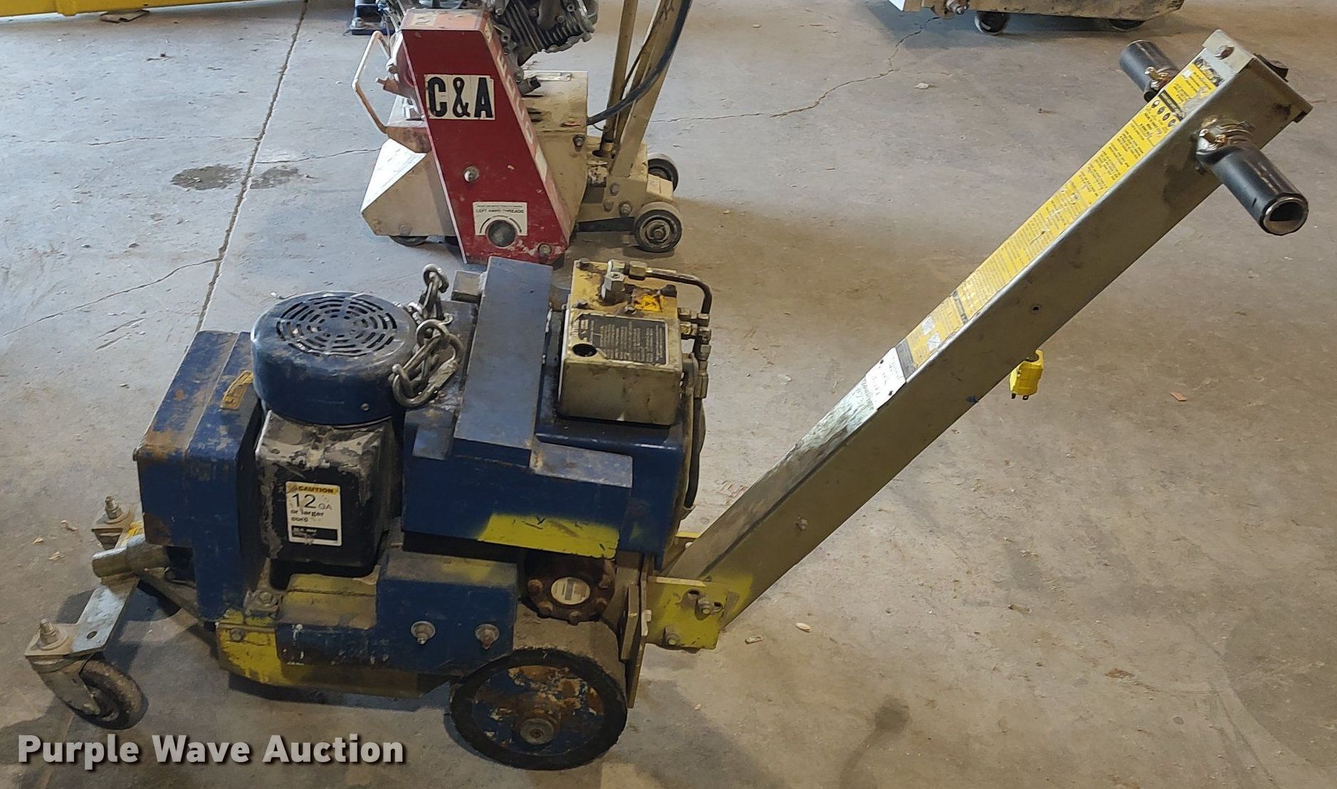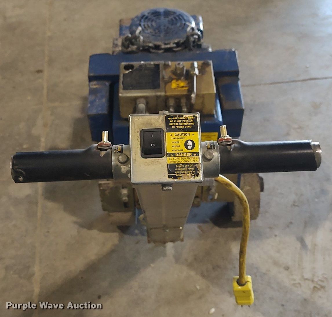 National floor scraper. Serial: 917081. Electric Motor Volts: 115, Phase: Single. Notes Attachments, Unknown operating condition. Coonrod & Associates Construction Co. Retirement. 3550 South Hoover Road. Wichita, KS 67215