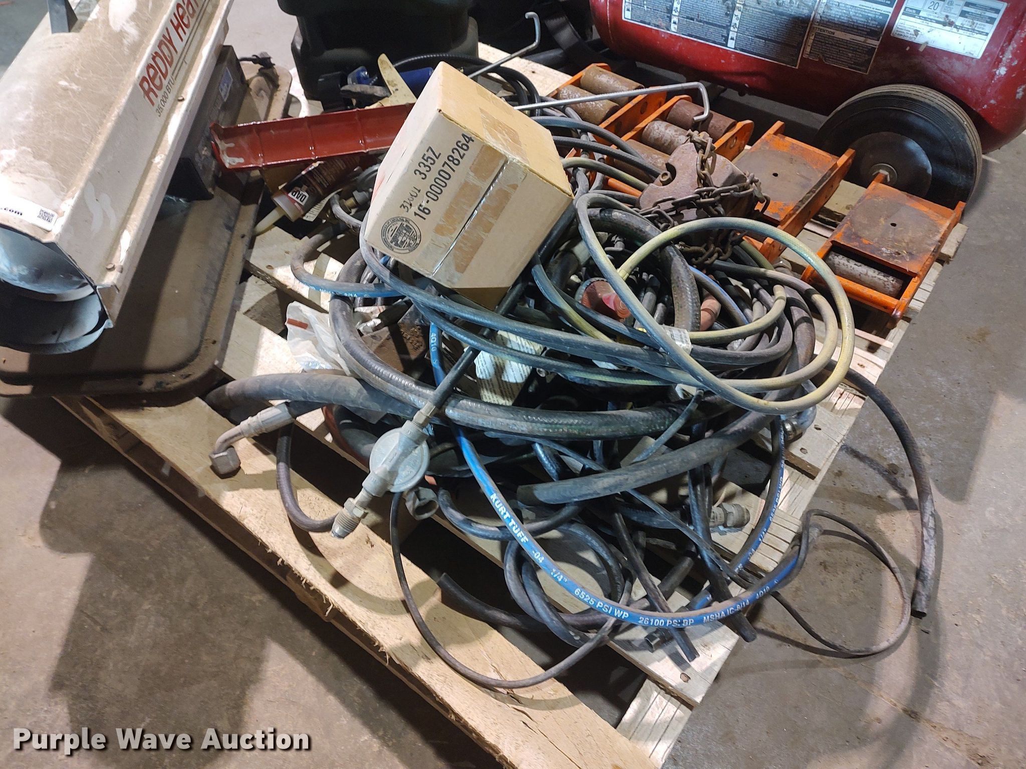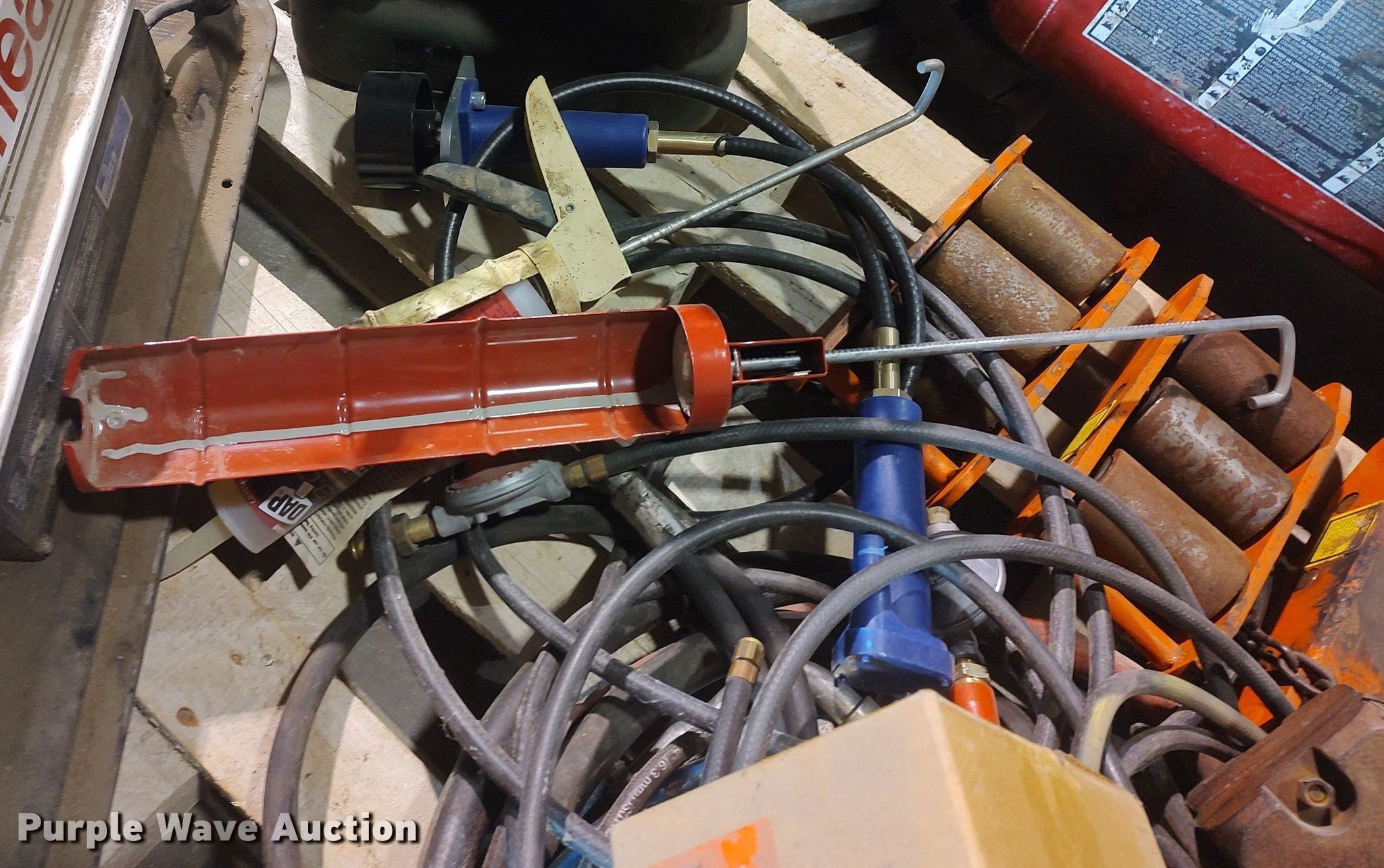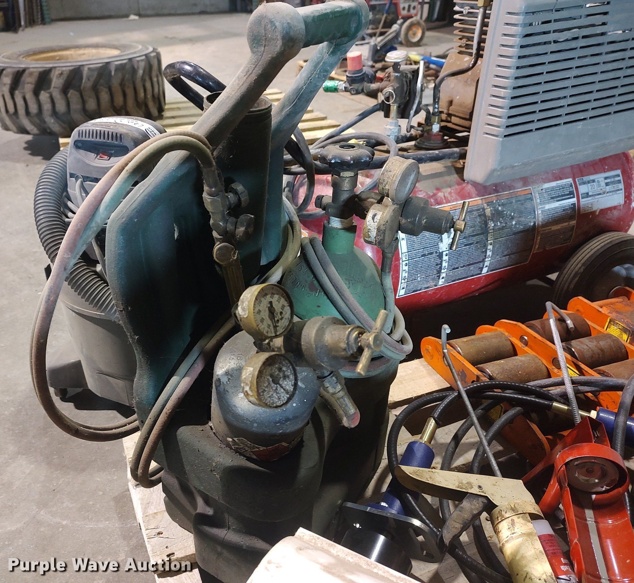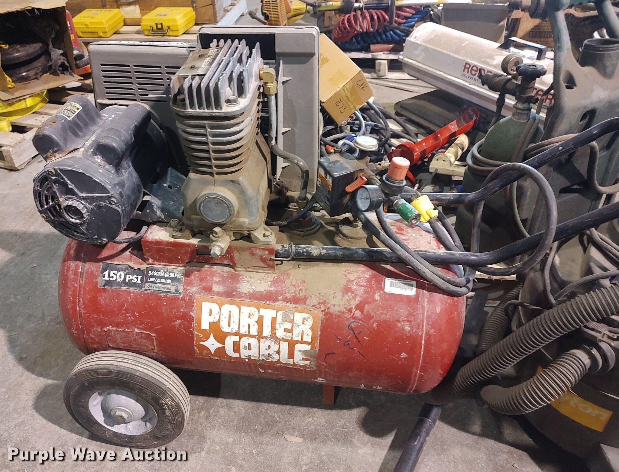 Purple Wave is selling a used Tools in Kansas. This item is a Tools with the following: Porter-Cable air compressor, Reddi 35000 heater, Acetylene bottle, Torch hoses, Dayton wet/dry vacuum, Caulking guns, Material rollers