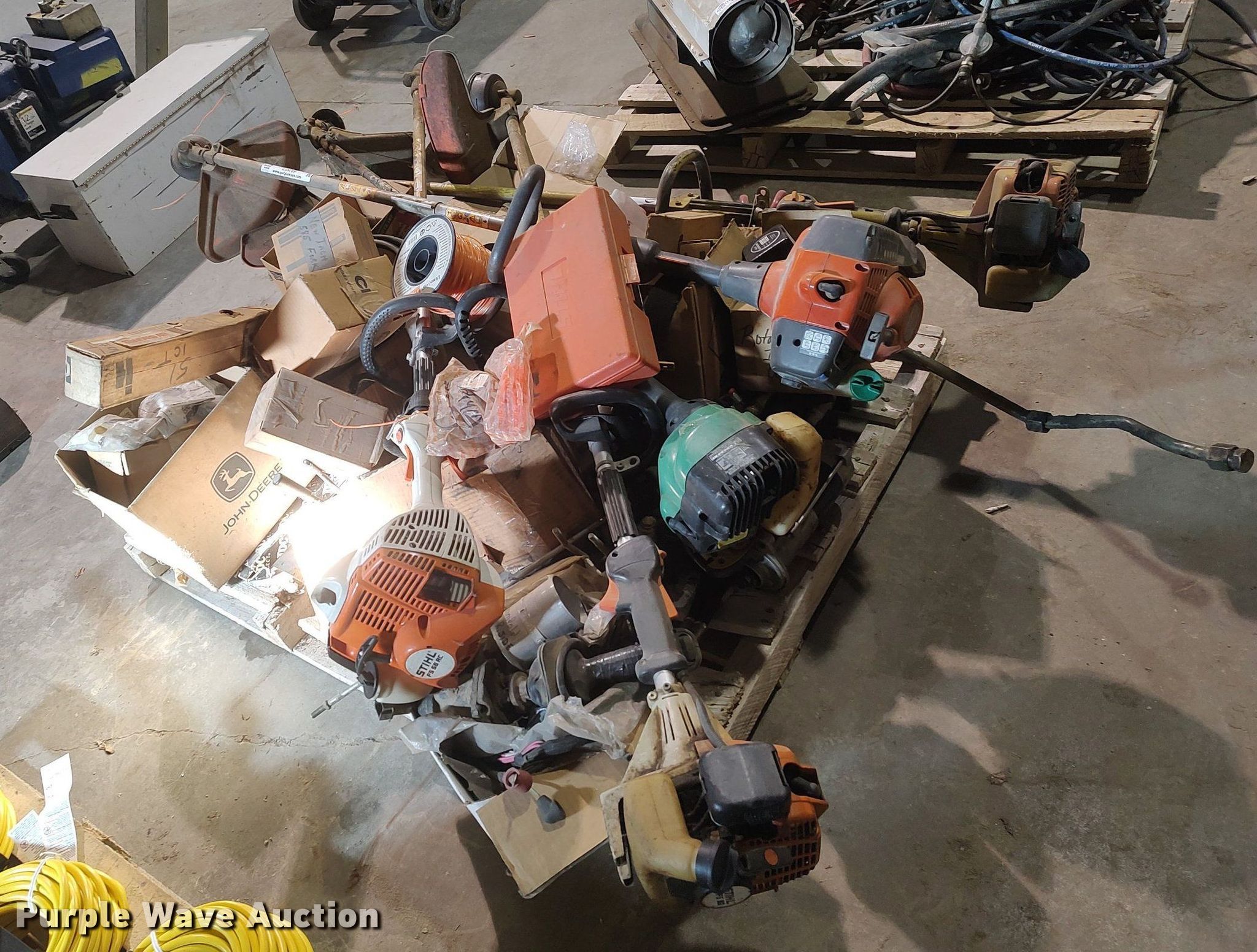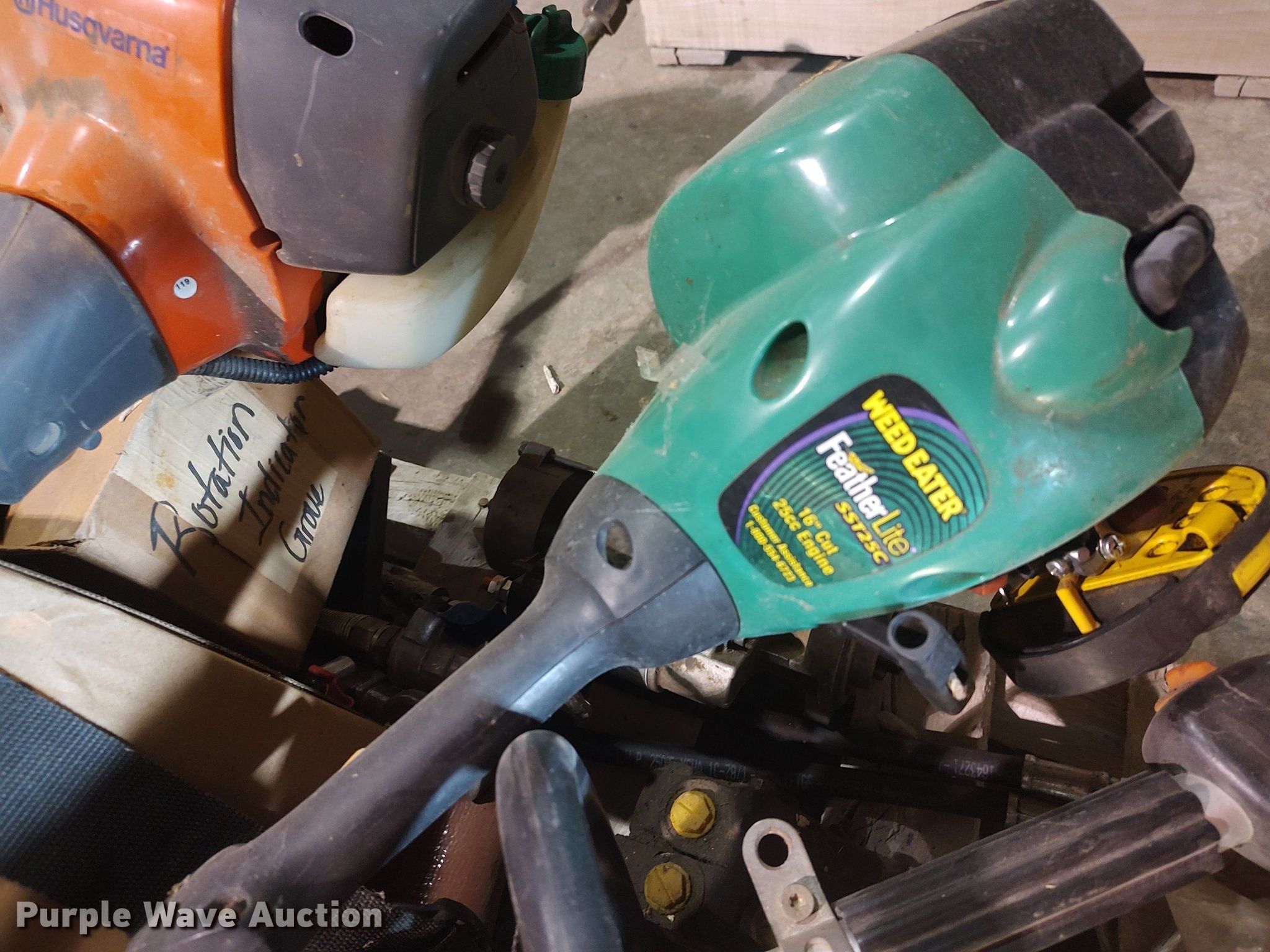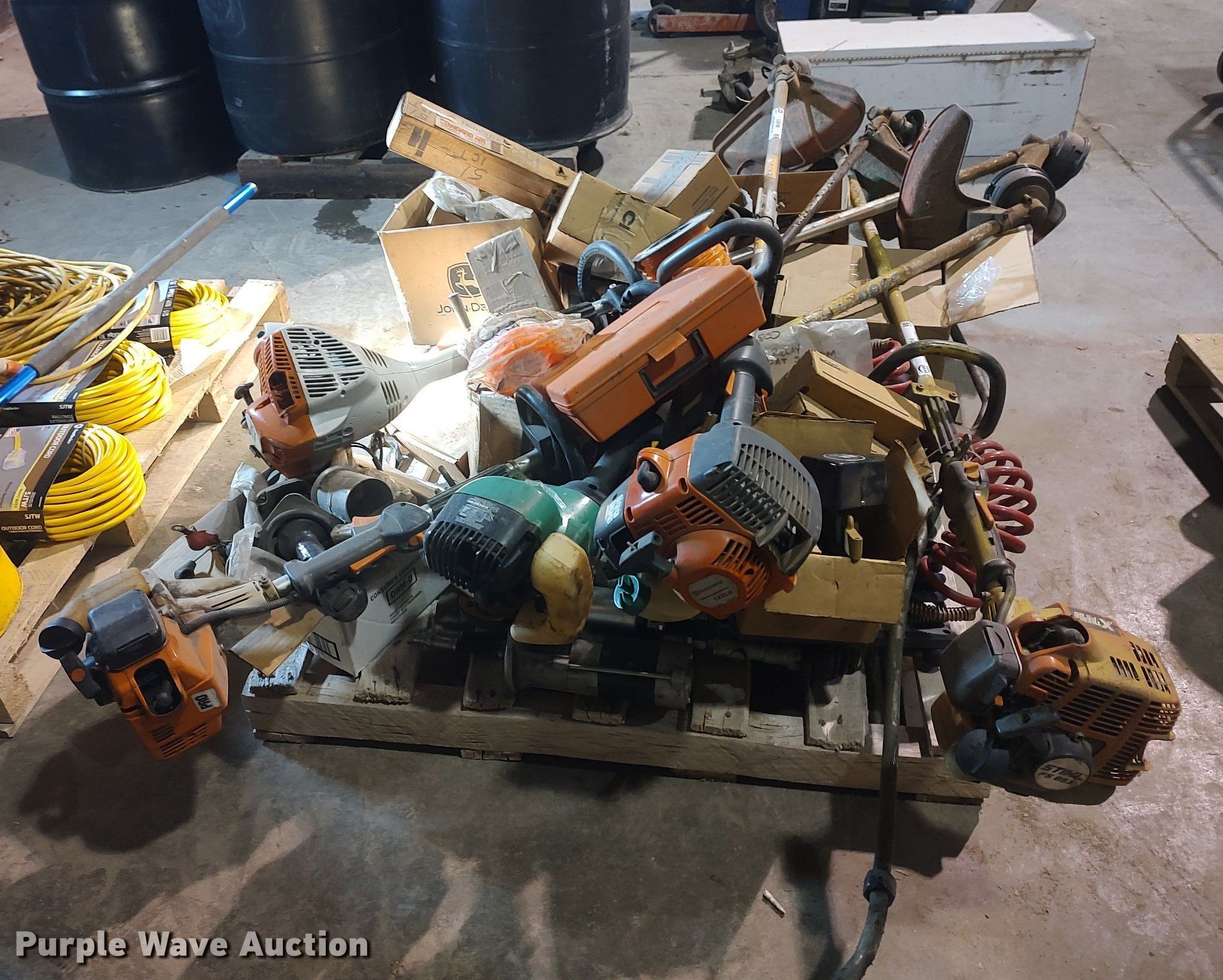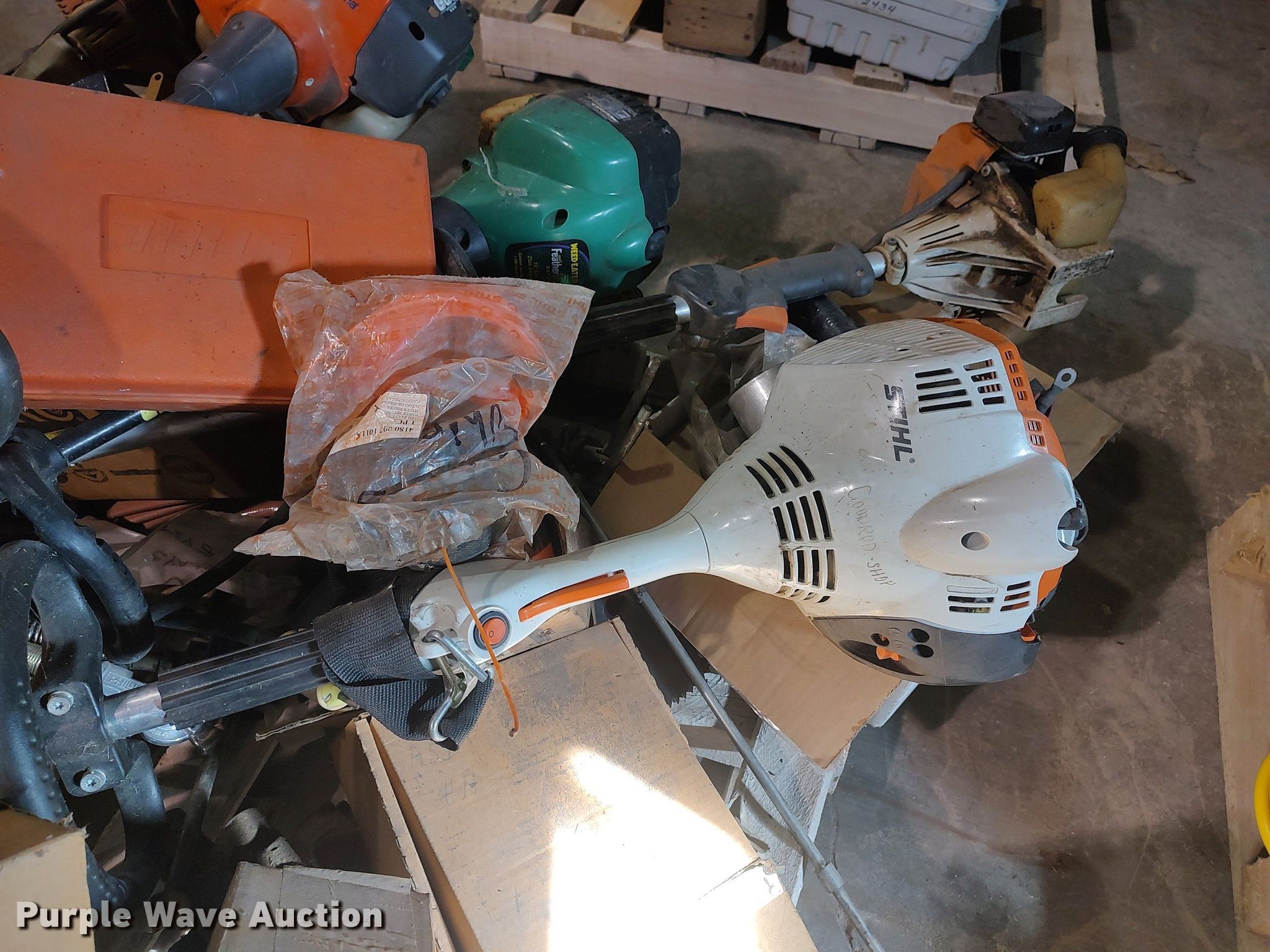 Purple Wave is selling a used Lawn and Garden in Kansas. This item is a Lawn and garden equipment with the following: (5) string trimmers, Parts, Tools, Unknown operating condition