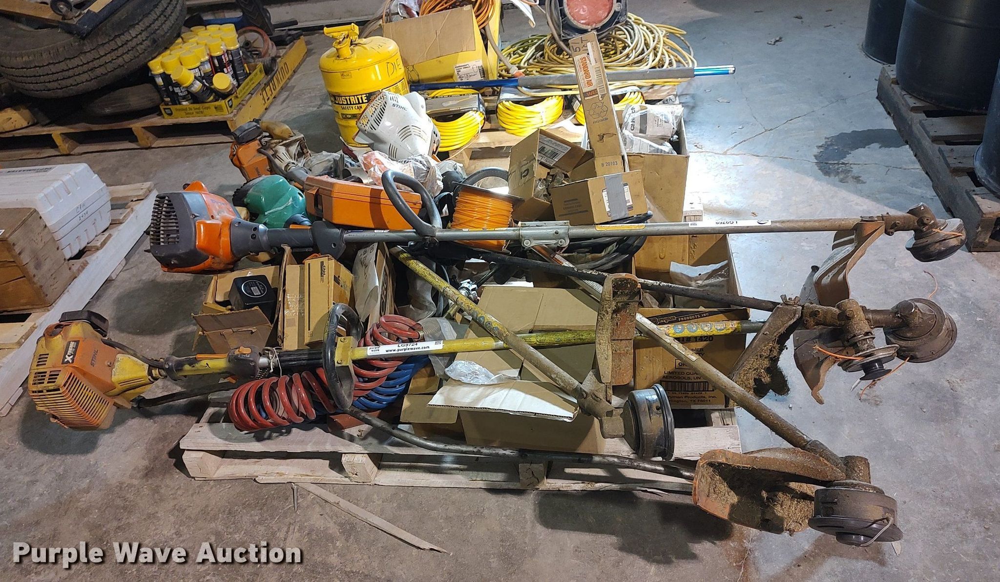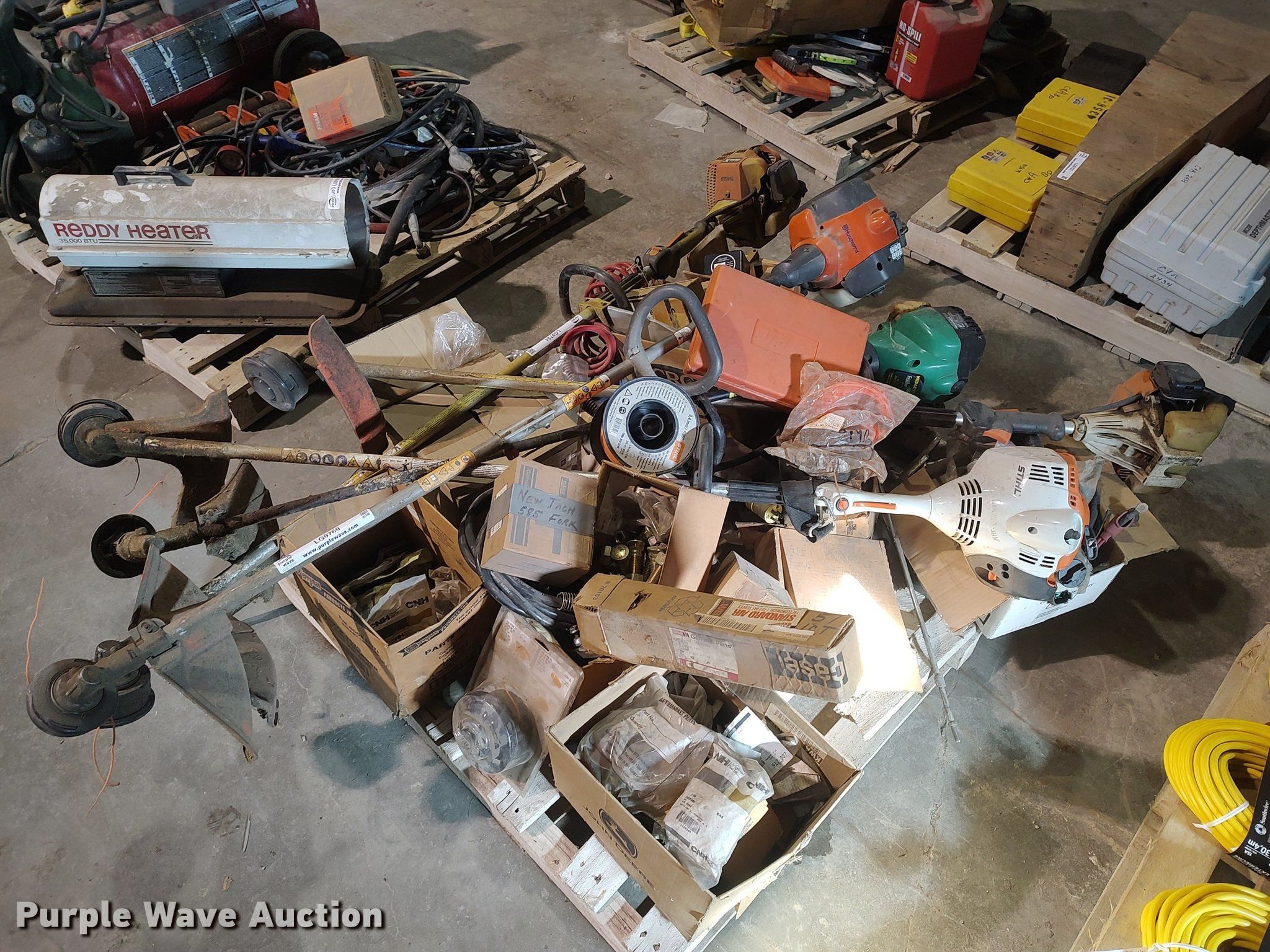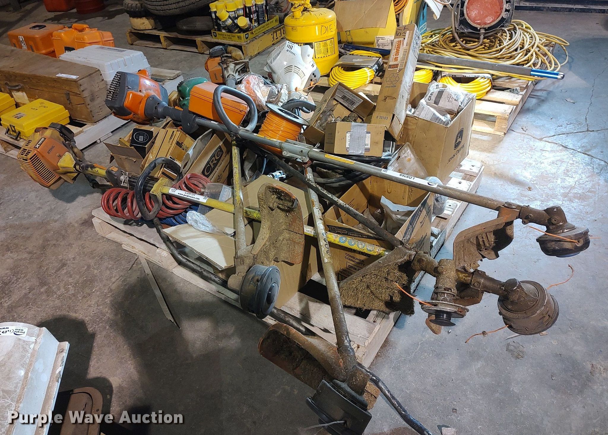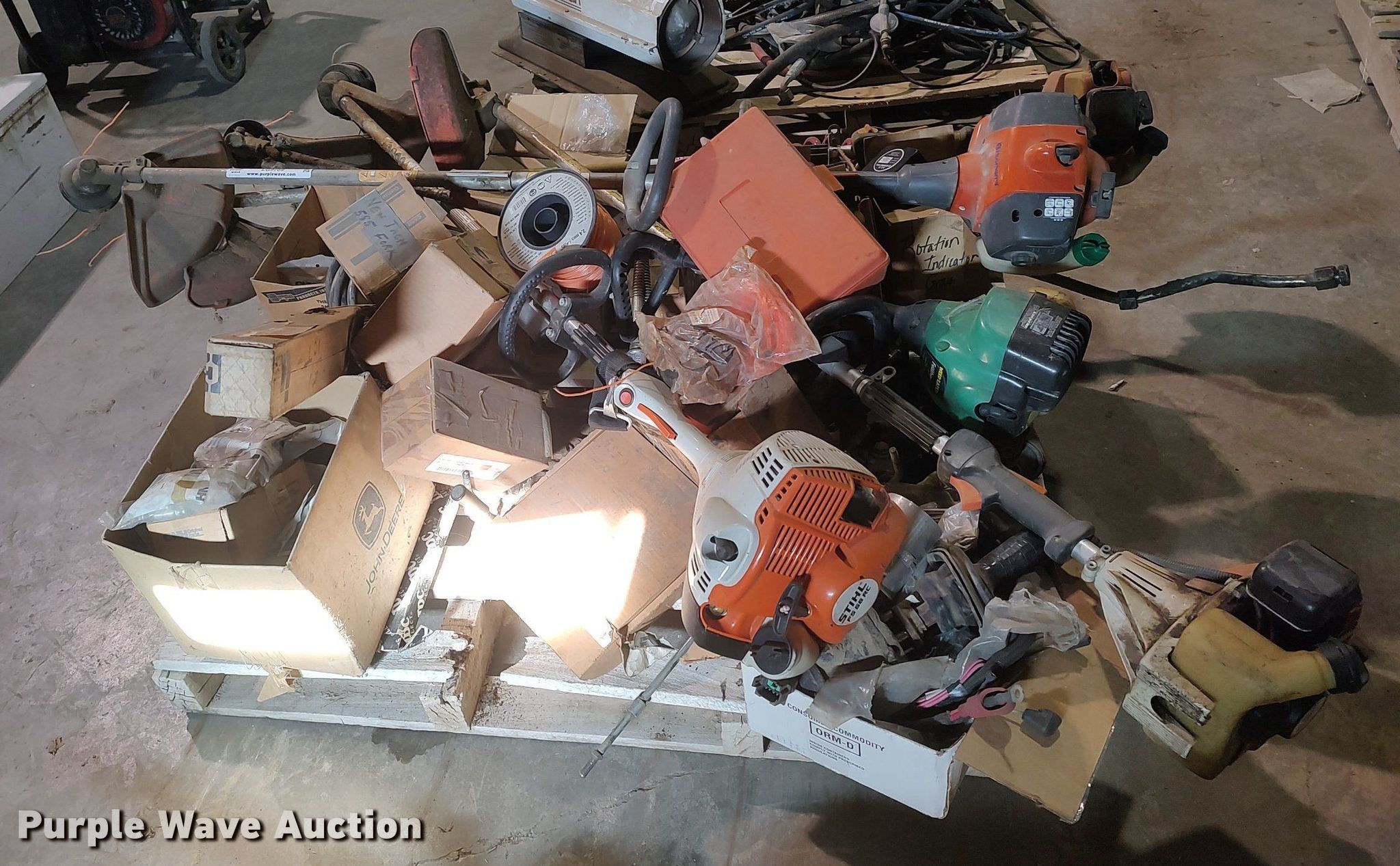 Purple Wave is selling a used Lawn and Garden in Kansas. This item is a Lawn and garden equipment with the following: (5) string trimmers, Parts, Tools, Unknown operating condition