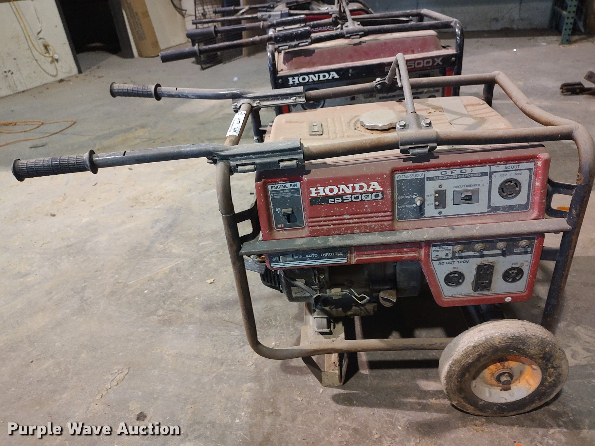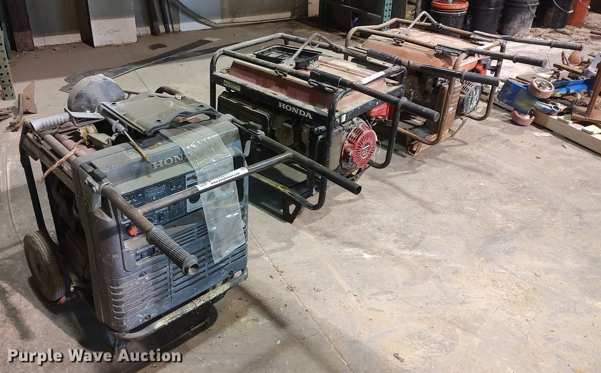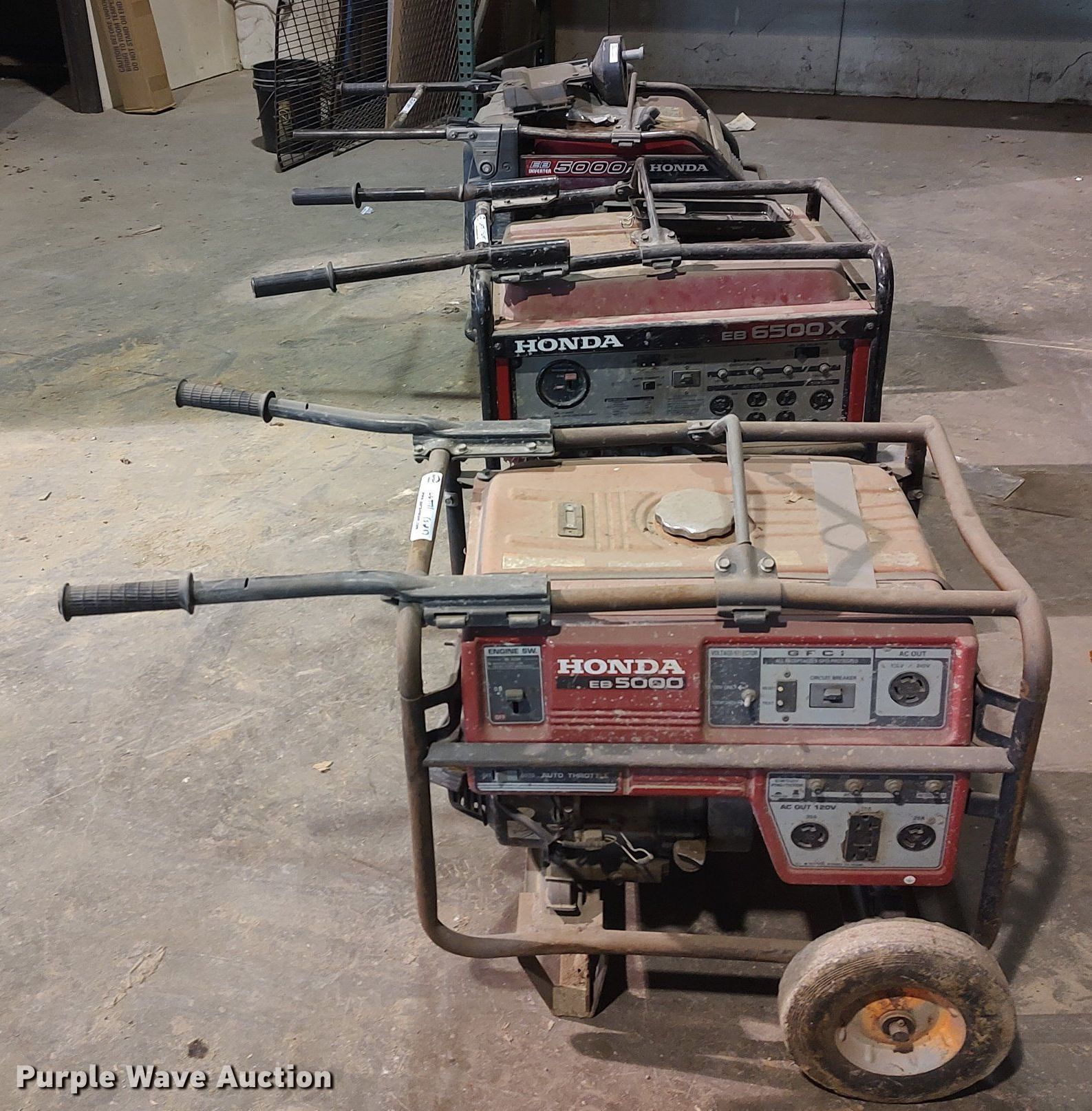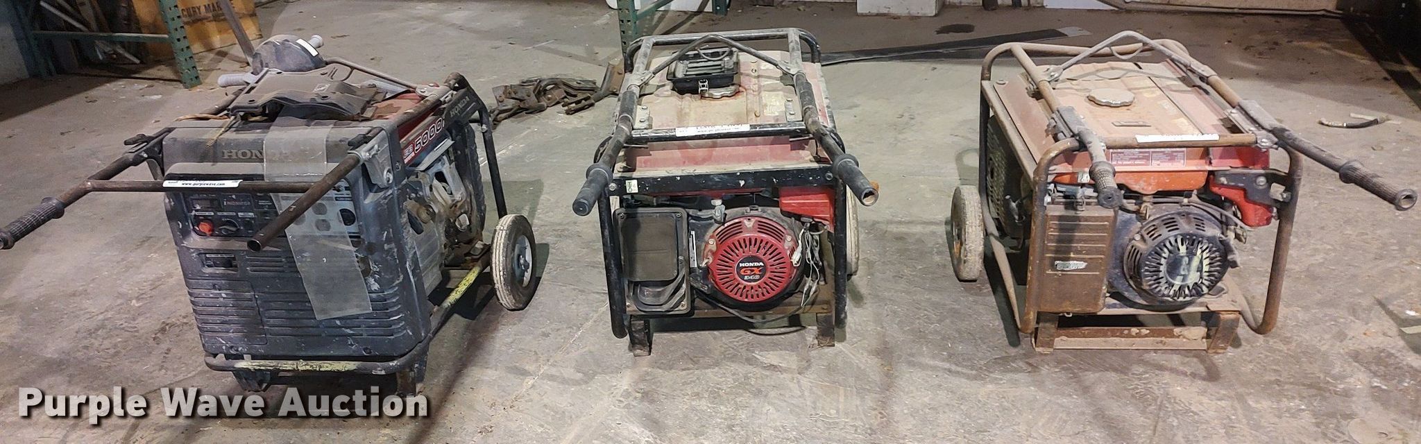 Purple Wave is selling a used Generator Set in Kansas. This item is a (3) generators with the following: Honda ES 5000, GX 340 gas engine, Honda ES 6500X, GX 340 gas engine, Honda EB 5000, GX 340 gas engine, Non-operational units