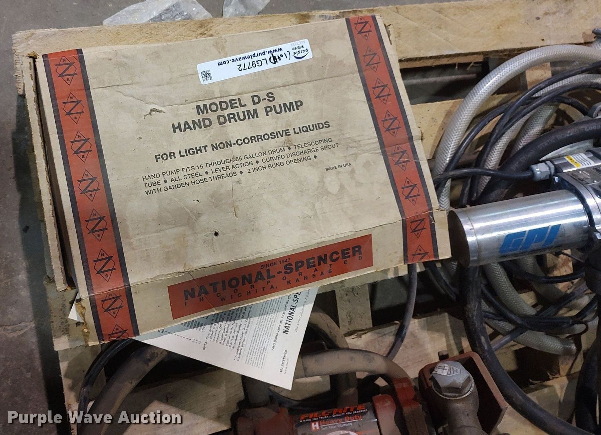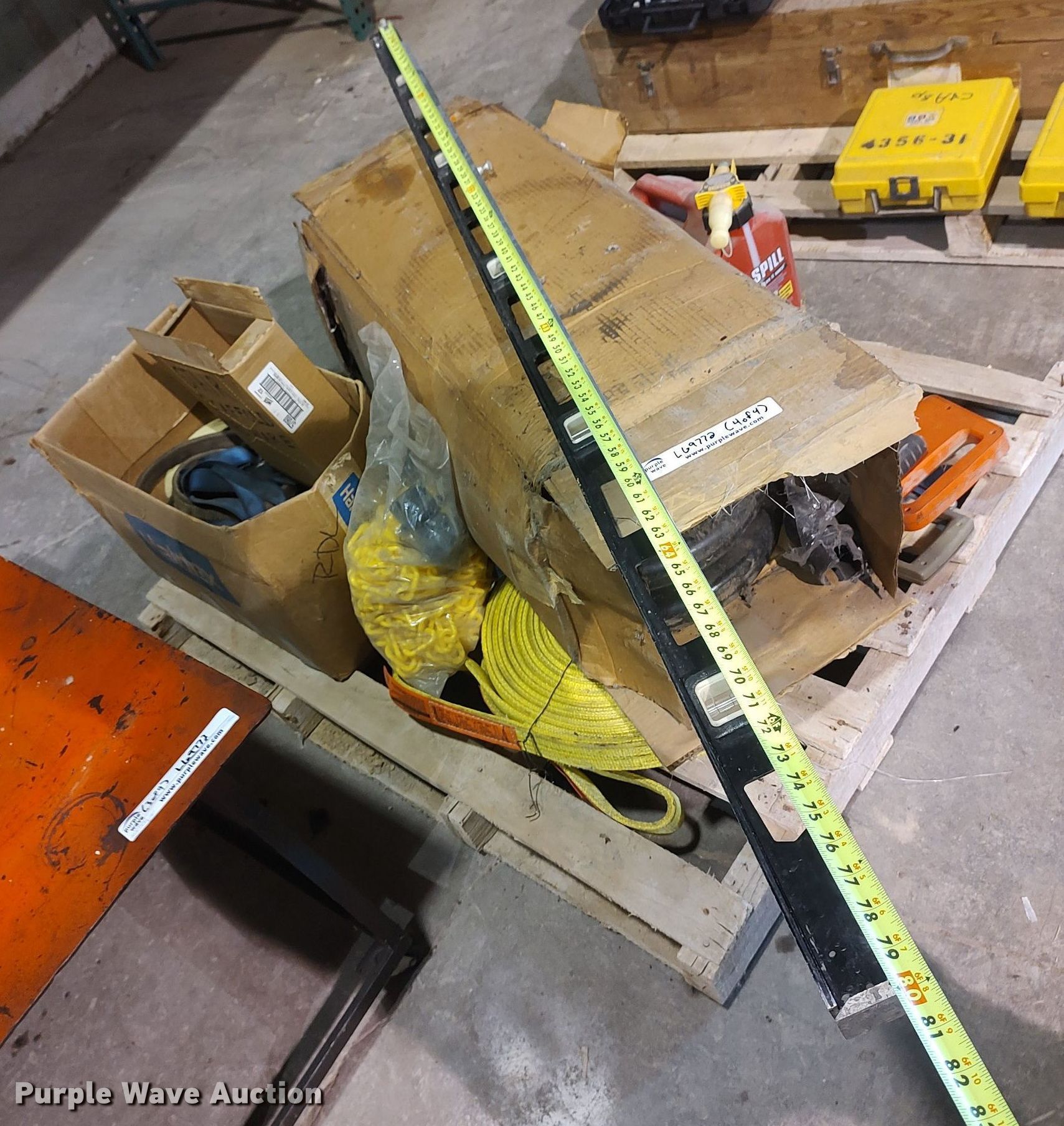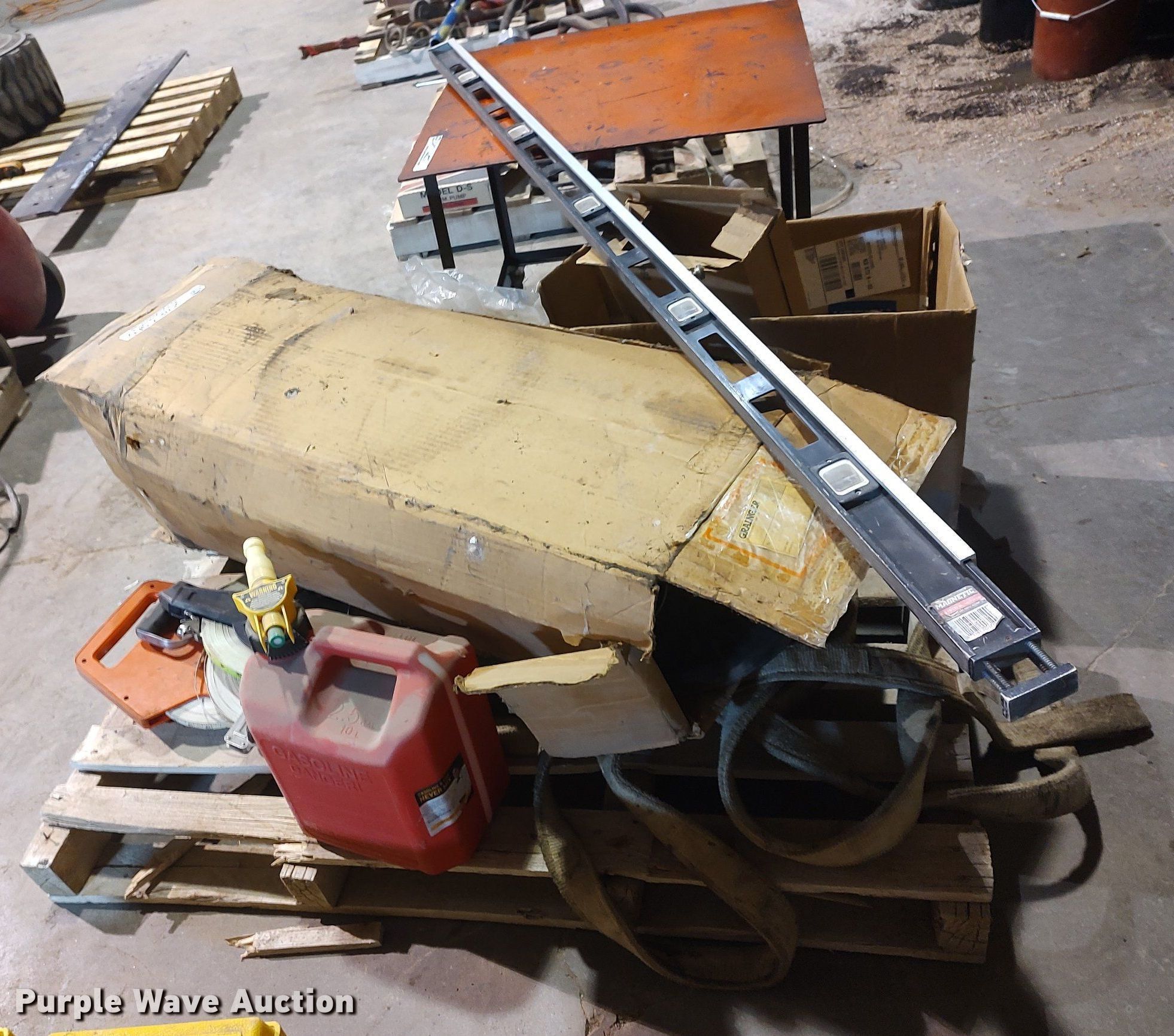 Purple Wave is selling a used Tools in Kansas. This item is a Tools with the following: (5) roll-a tapes, 2 1/2 gallon gas can, Plastic chain fence, 80" level, (2) 12,400lb capacity polyester straps, Length: 20', Metal roller table, Fill-Rite 15gpm pump, GPI 150S transfer pump, National-Spencer hand drum pump, Wrenches and more