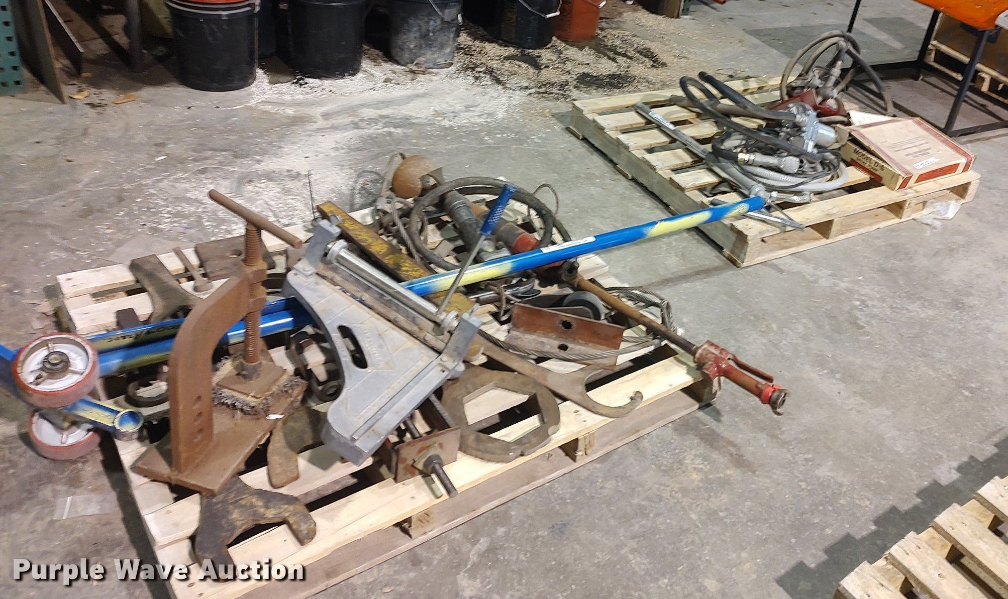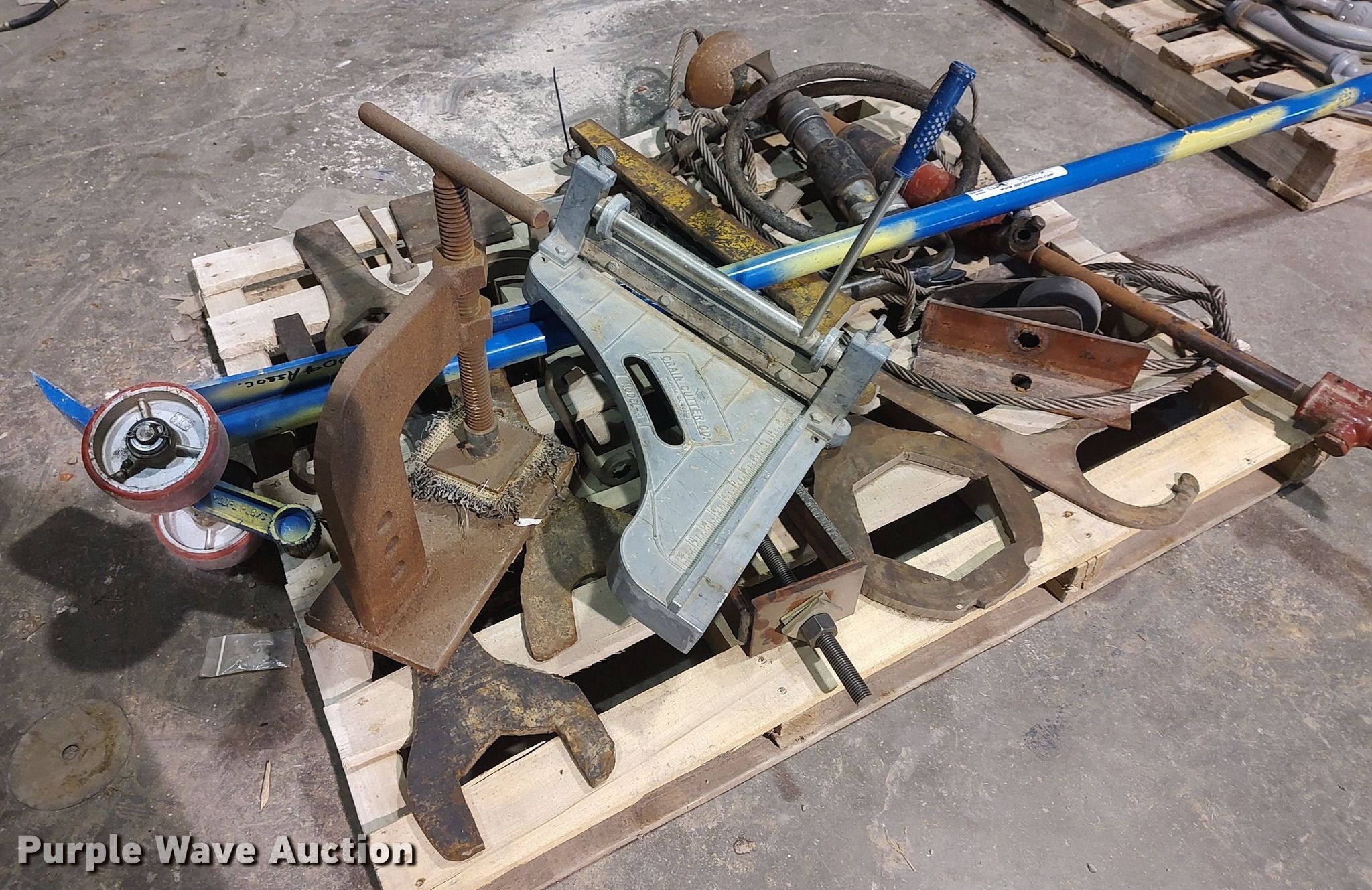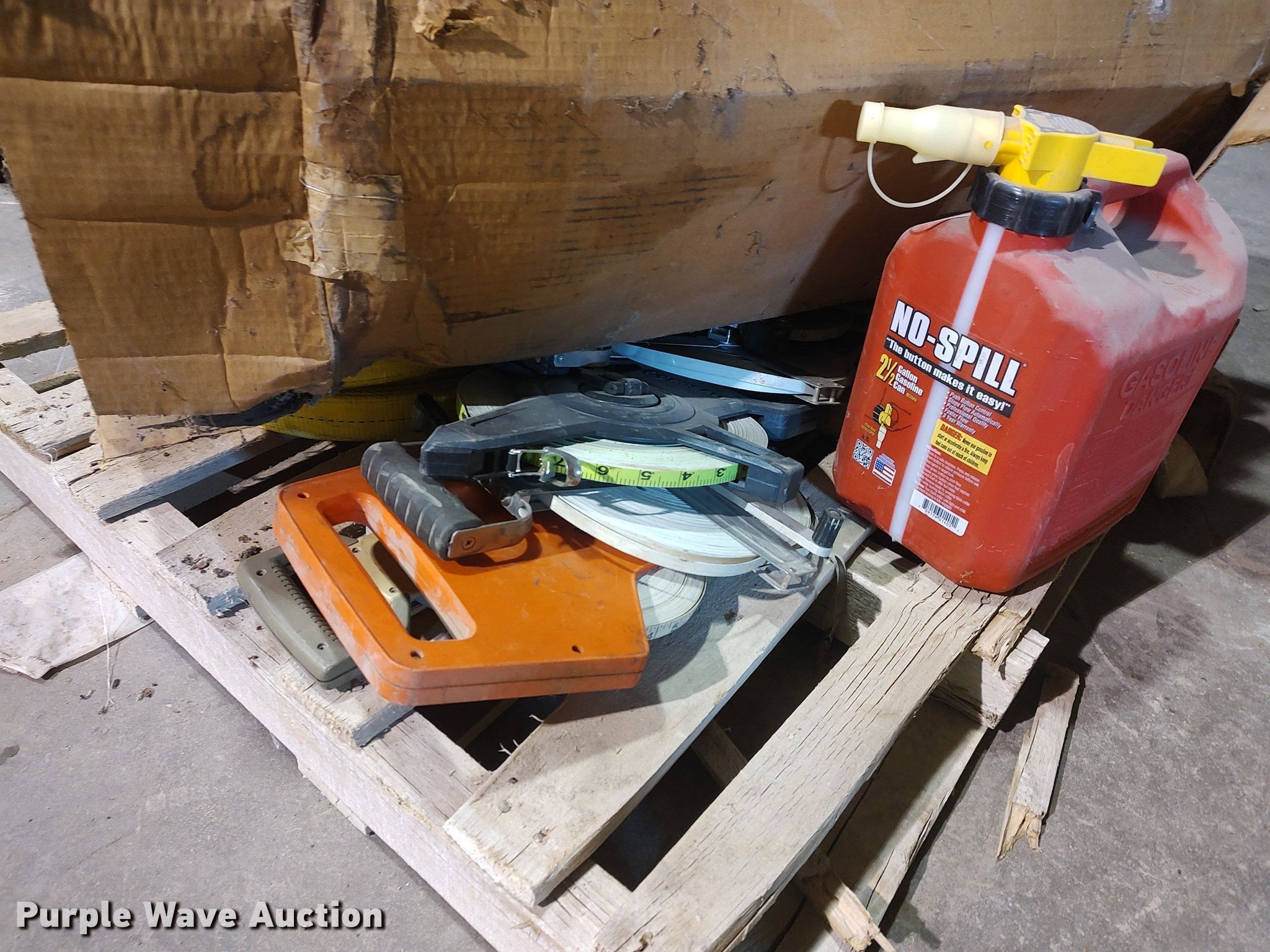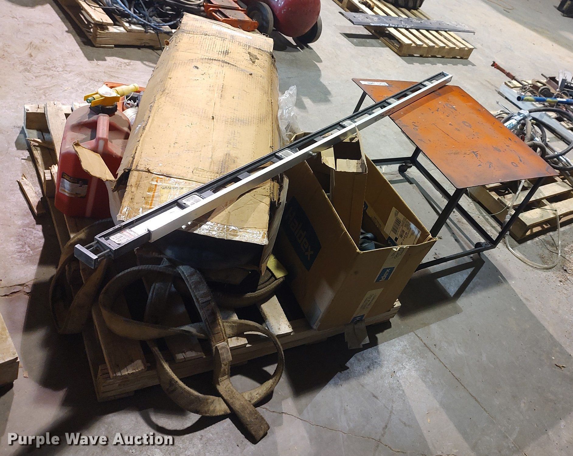 Purple Wave is selling a used Tools in Kansas. This item is a Tools with the following: (5) roll-a tapes, 2 1/2 gallon gas can, Plastic chain fence, 80" level, (2) 12,400lb capacity polyester straps, Length: 20', Metal roller table, Fill-Rite 15gpm pump, GPI 150S transfer pump, National-Spencer hand drum pump, Wrenches and more