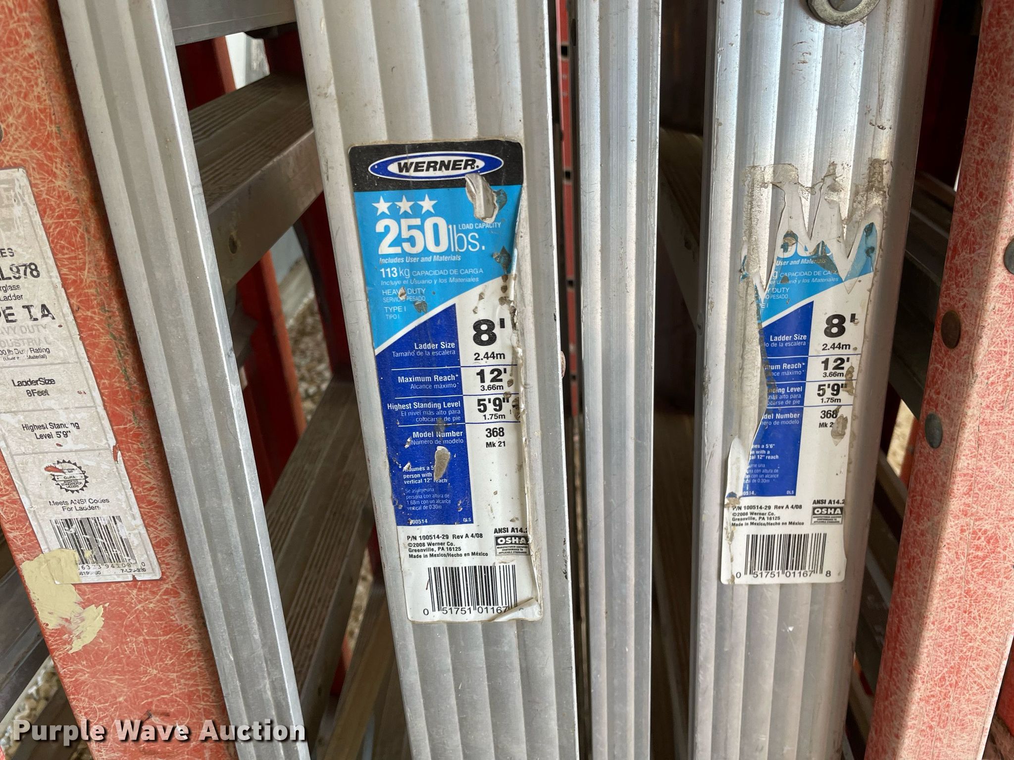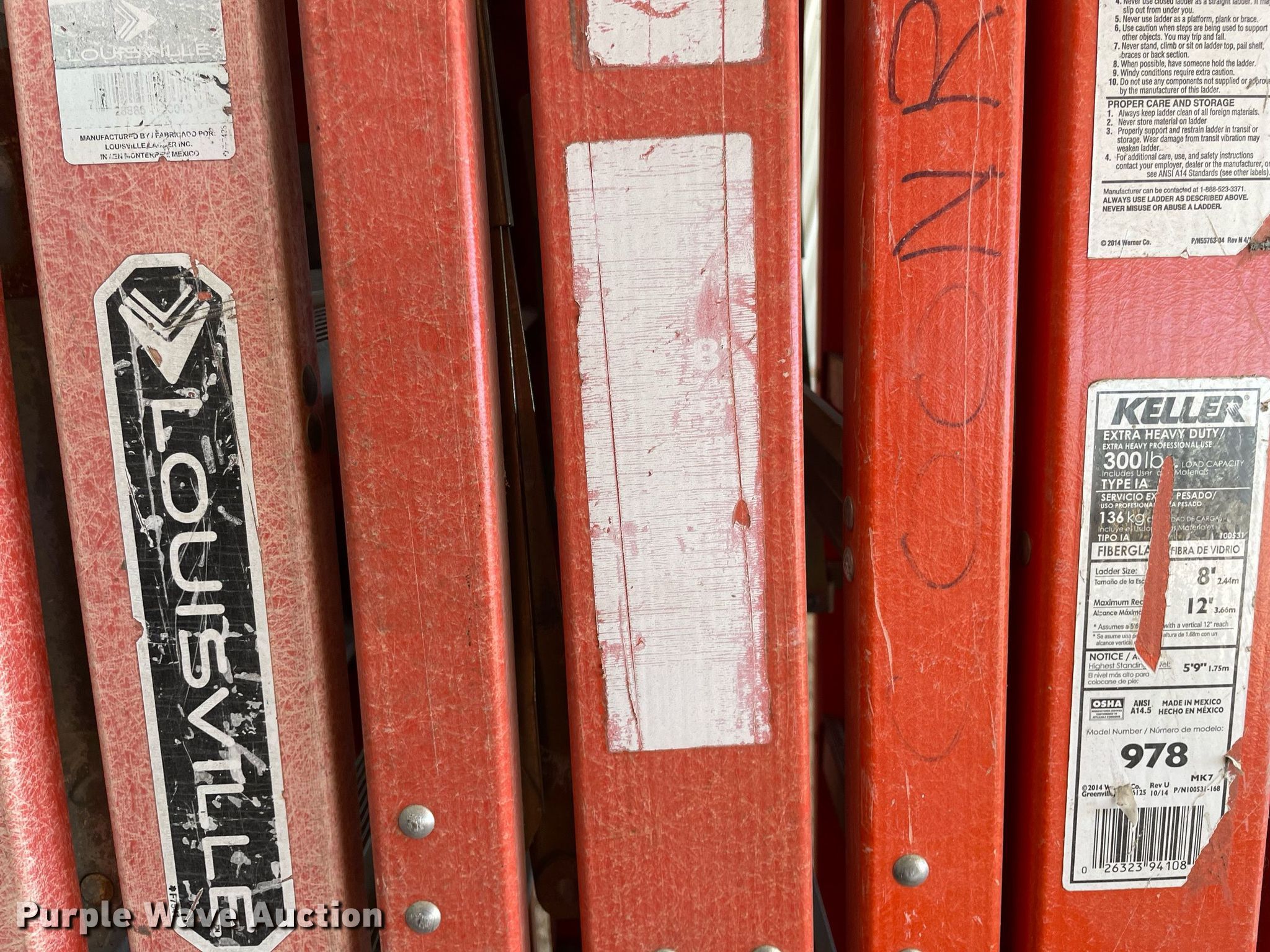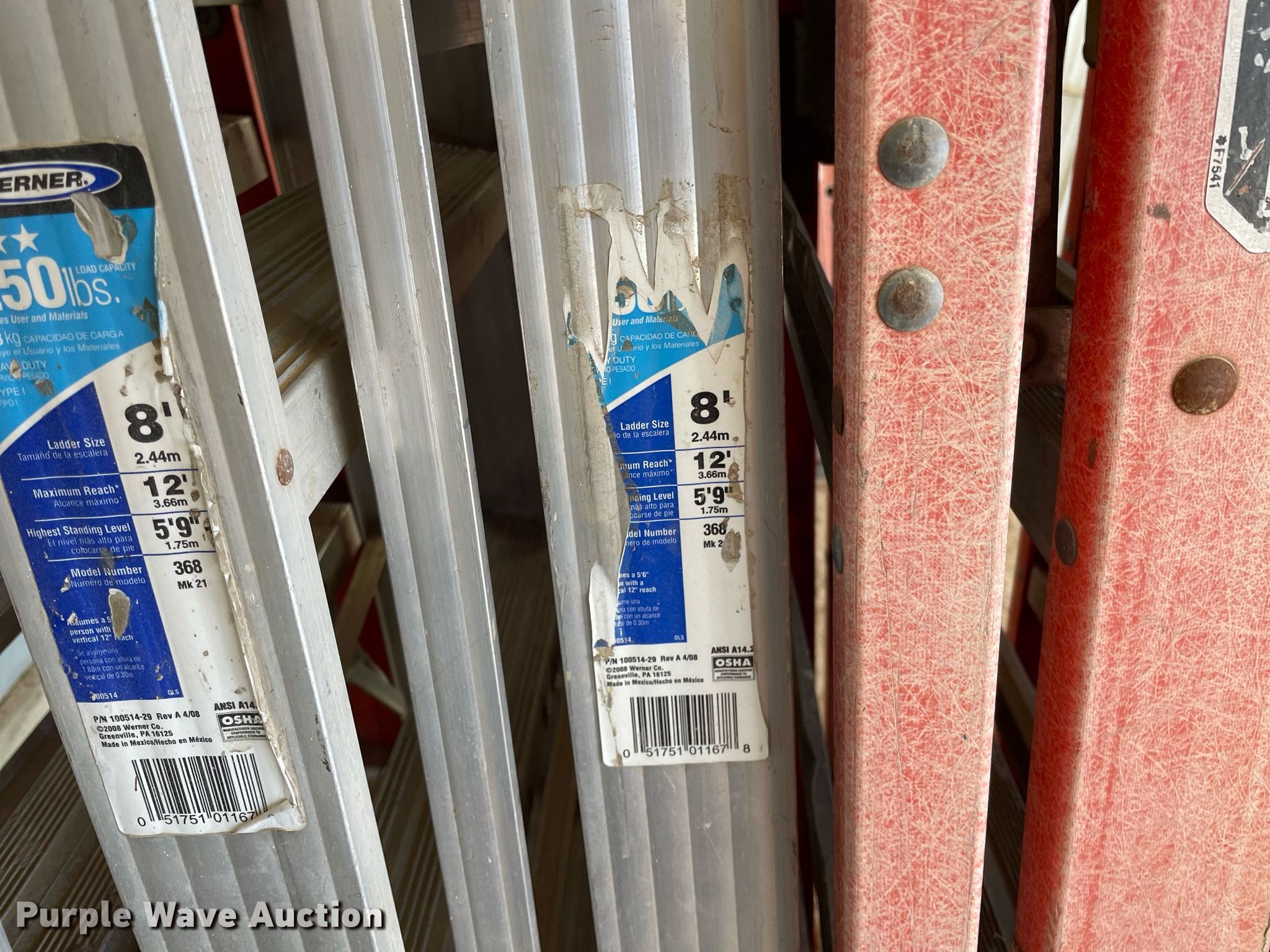 Purple Wave is selling a used Tools in Kansas. This item is a (14) ladders with the following: (11) 8', (2) 6', 4'
