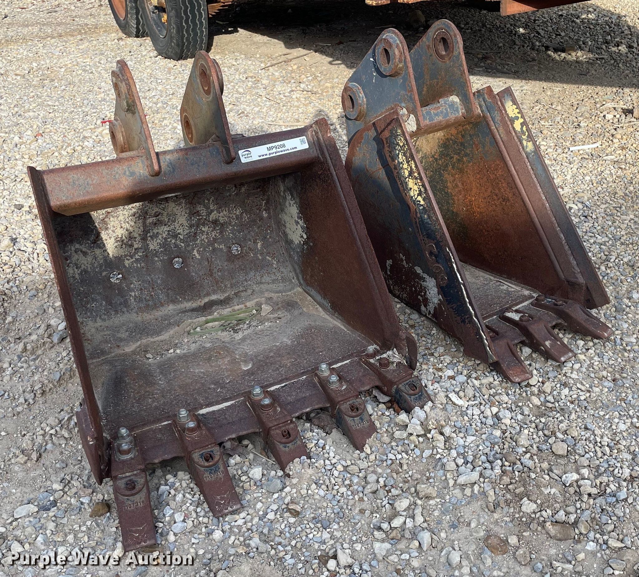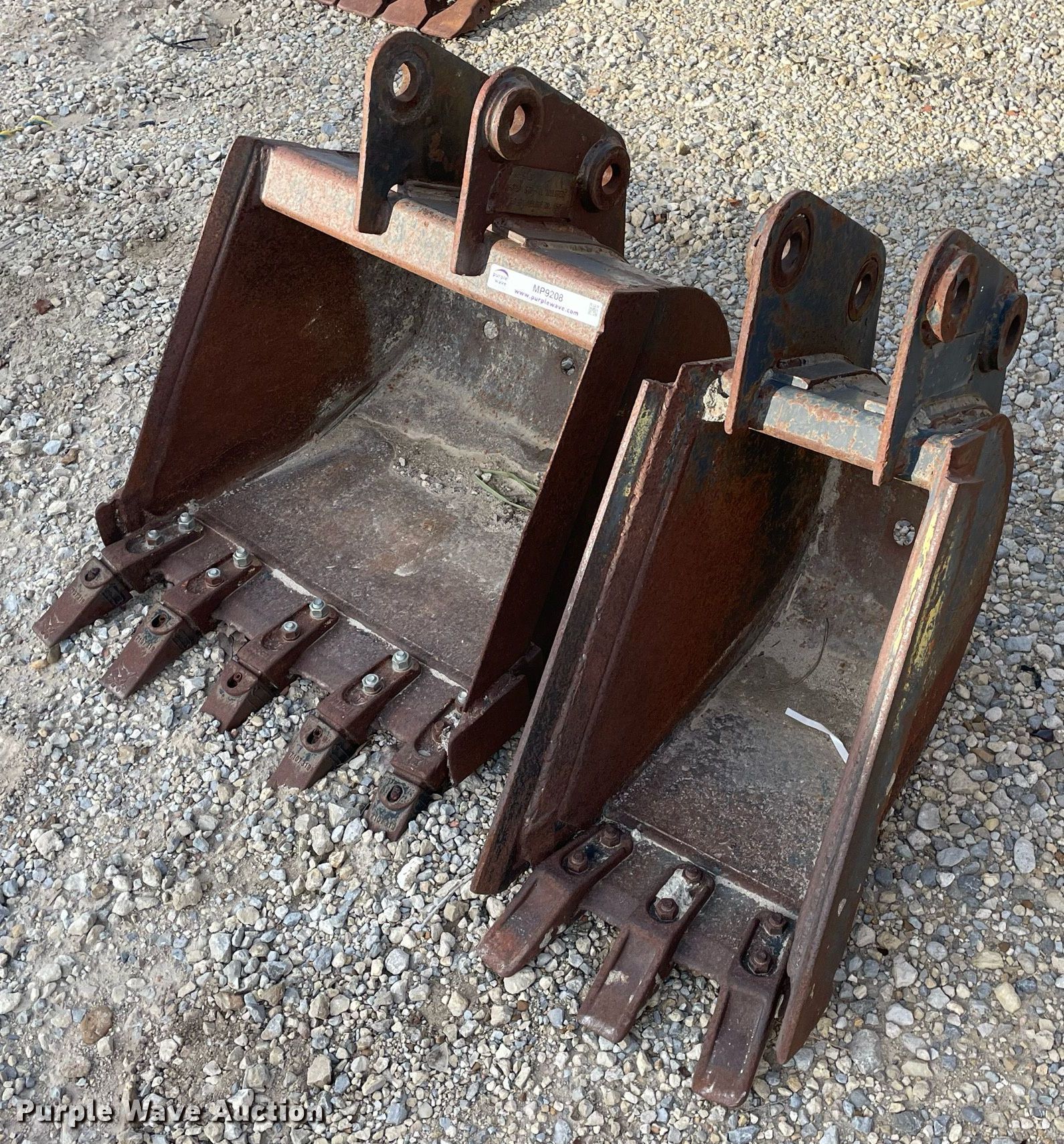 Purple Wave is selling a used Excavator Attach. in Kansas. This item is a (2) Melroe mini excavator buckets with the following: Width: 24", Teeth: 5, Width: 12", Teeth: 3