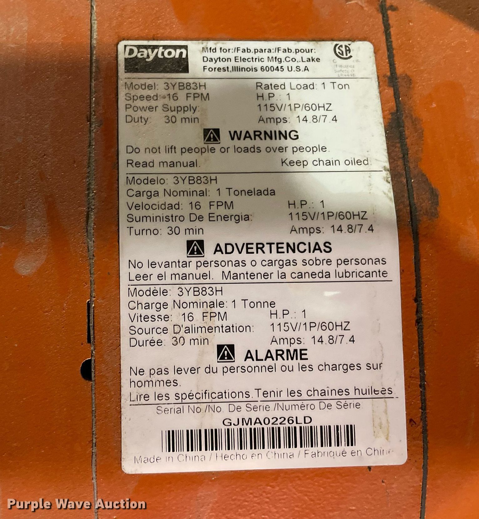 Dayton 3YB83H chain hoist | SOLD! May 04 Coonrod and Associates Construction Retirement Auction