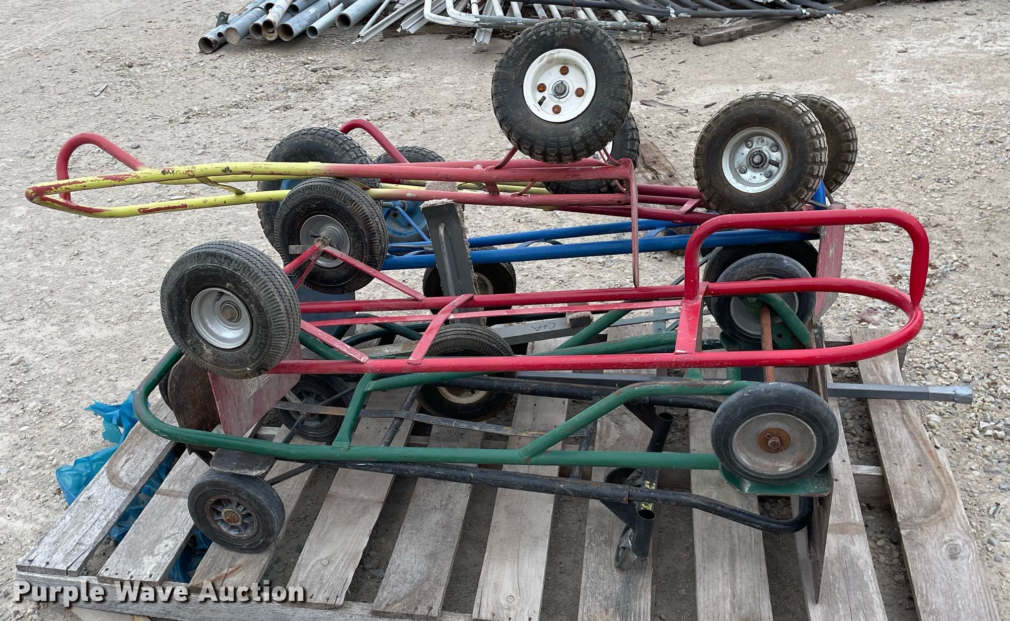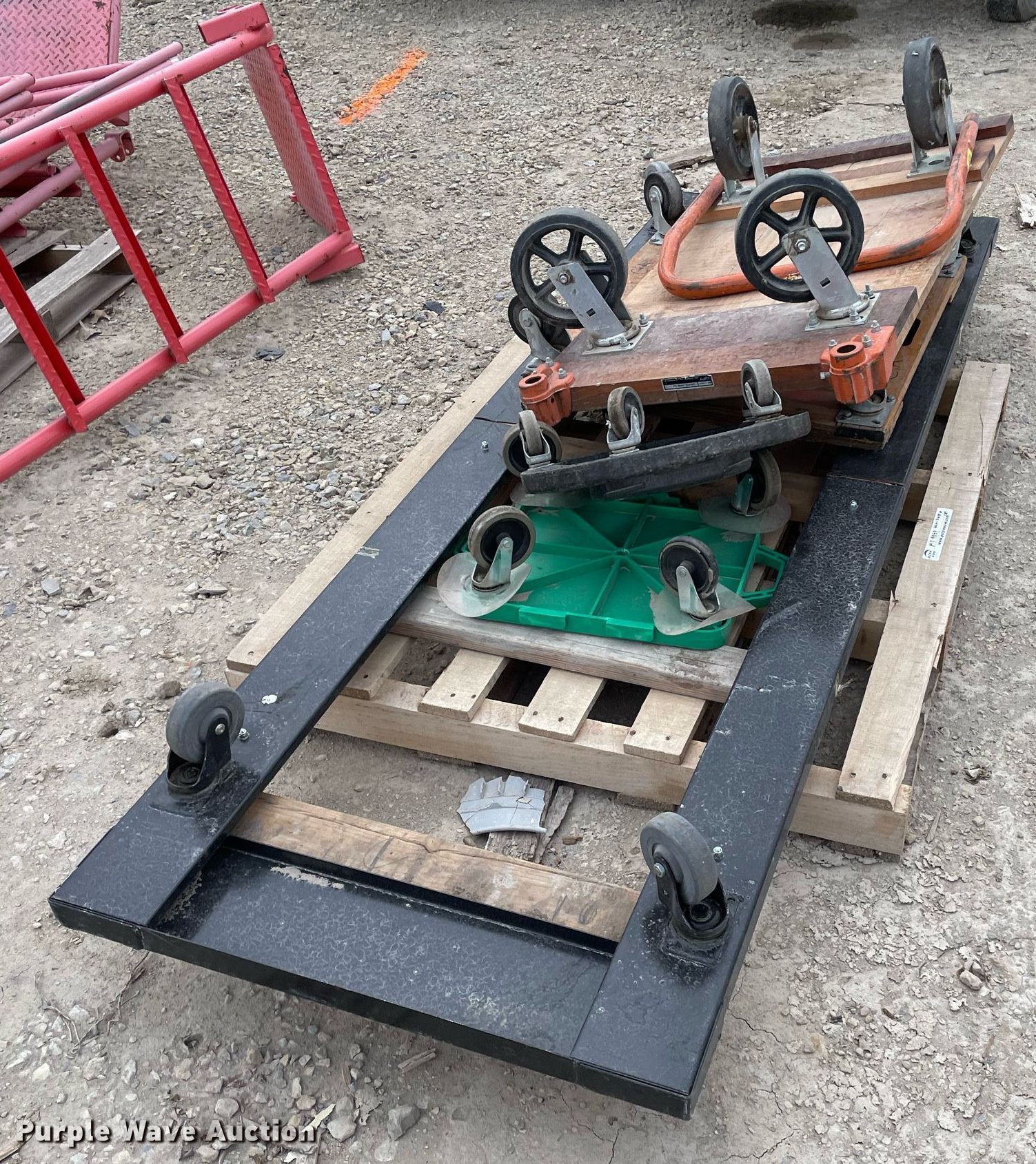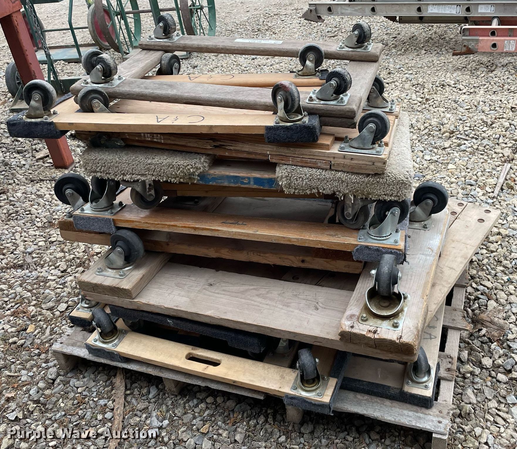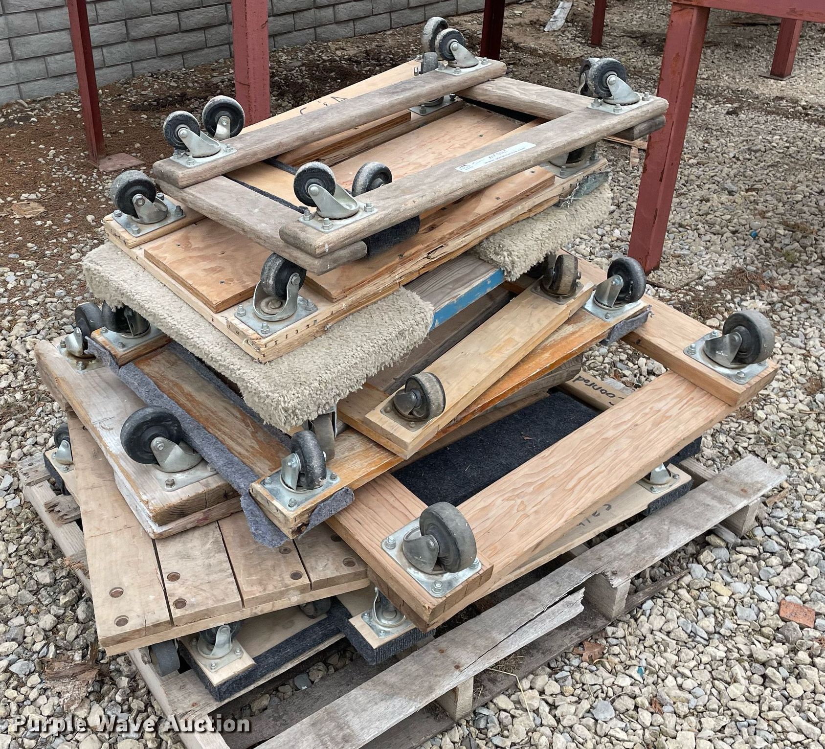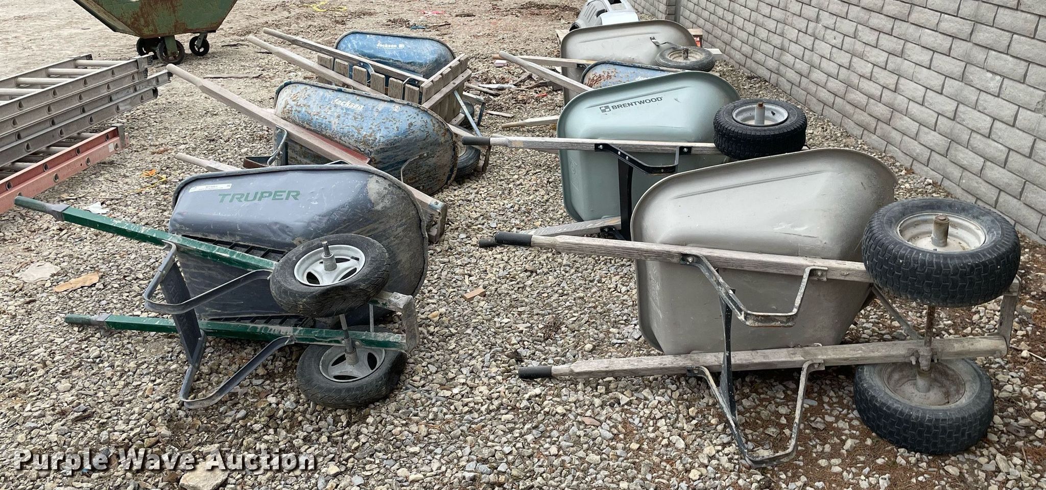 Purple Wave is selling a used Tools in Kansas. This item is a Tools with the following: Approx. 13 rollers, (8) wheel barrows, (9) saw horses, Jesco 290200 cart, Approx. 7 dollies