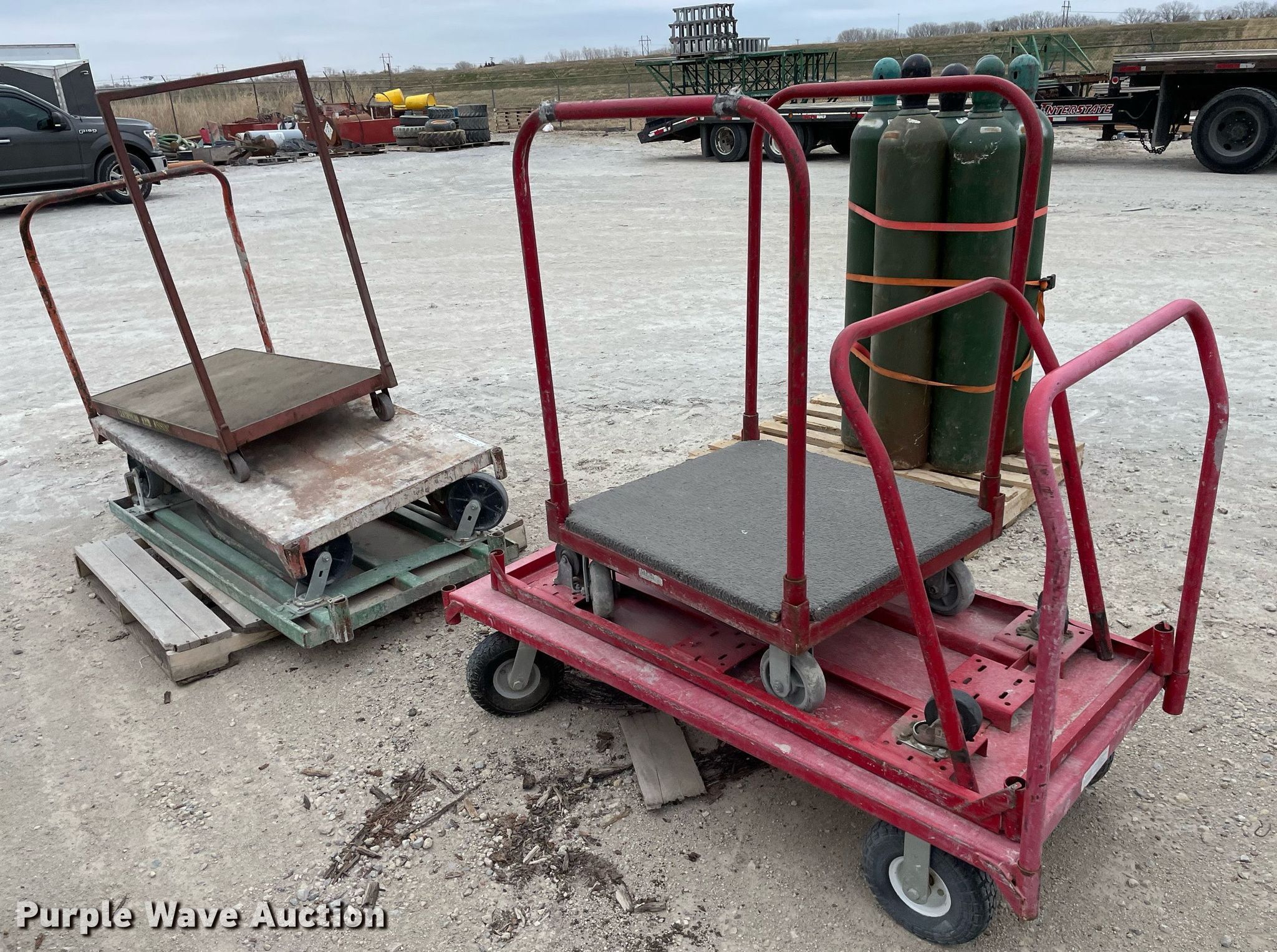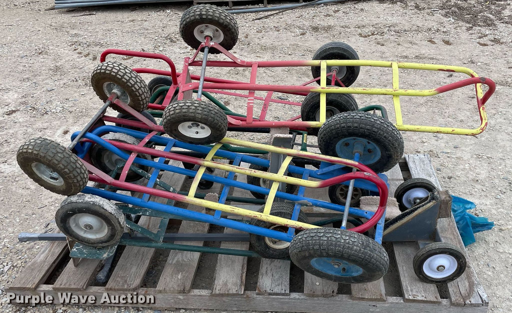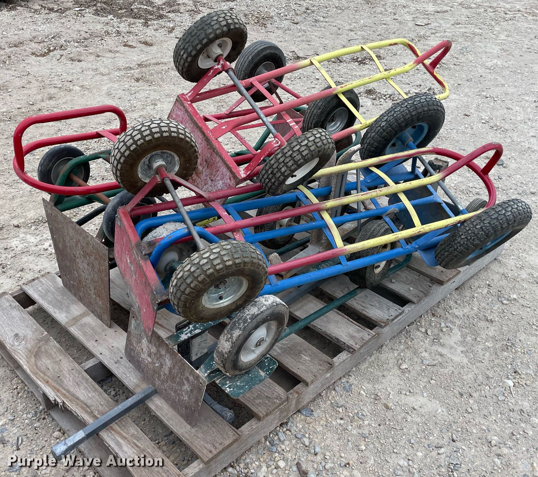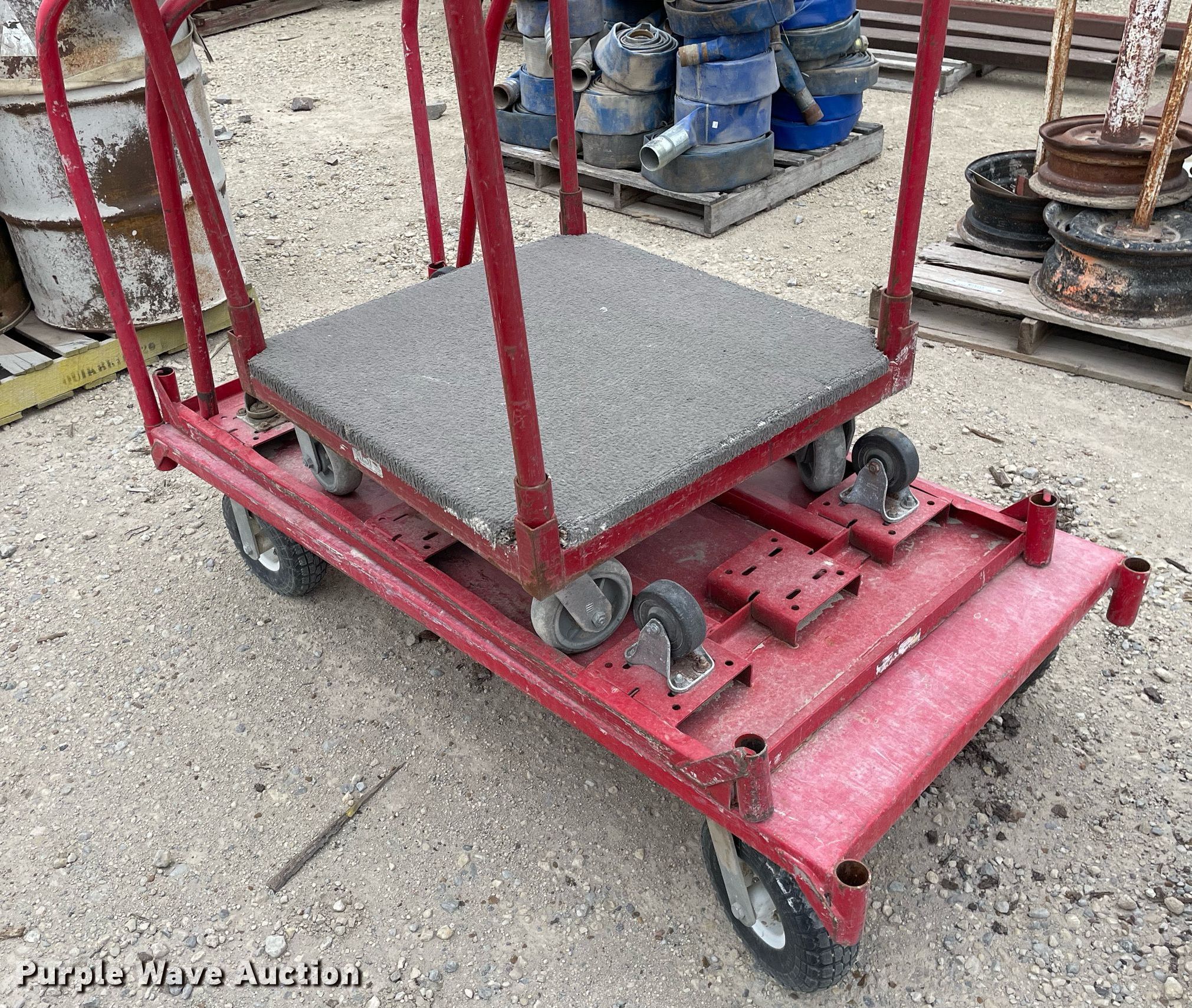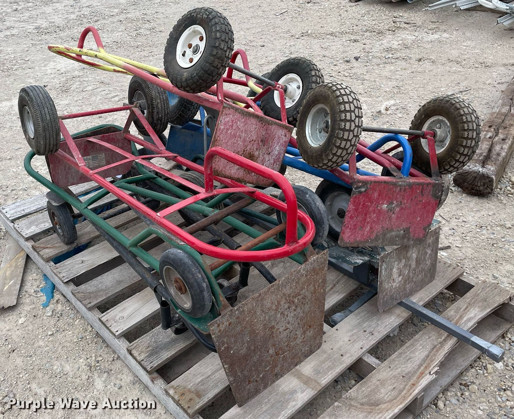 Purple Wave is selling a used Tools in Kansas. This item is a Tools with the following: Approx. 13 rollers, (8) wheel barrows, (9) saw horses, Jesco 290200 cart, Approx. 7 dollies
