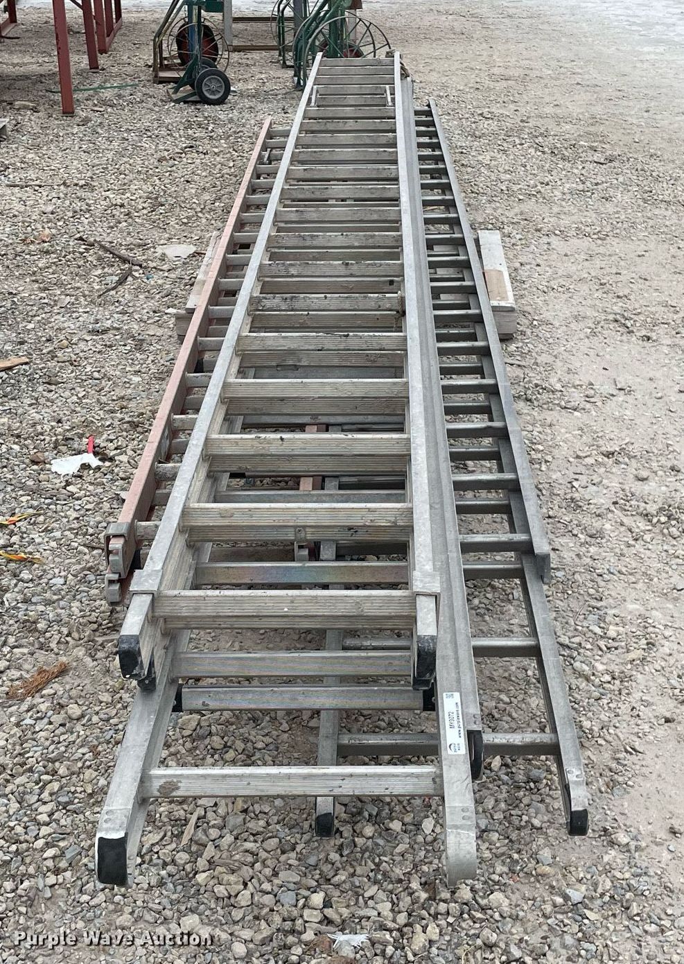 (3) ladders. (2) Werner 40' L, 44' L, Louisville. Coonrod & Associates Construction Co. Retirement. 3550 South Hoover Road. Wichita, KS 67215