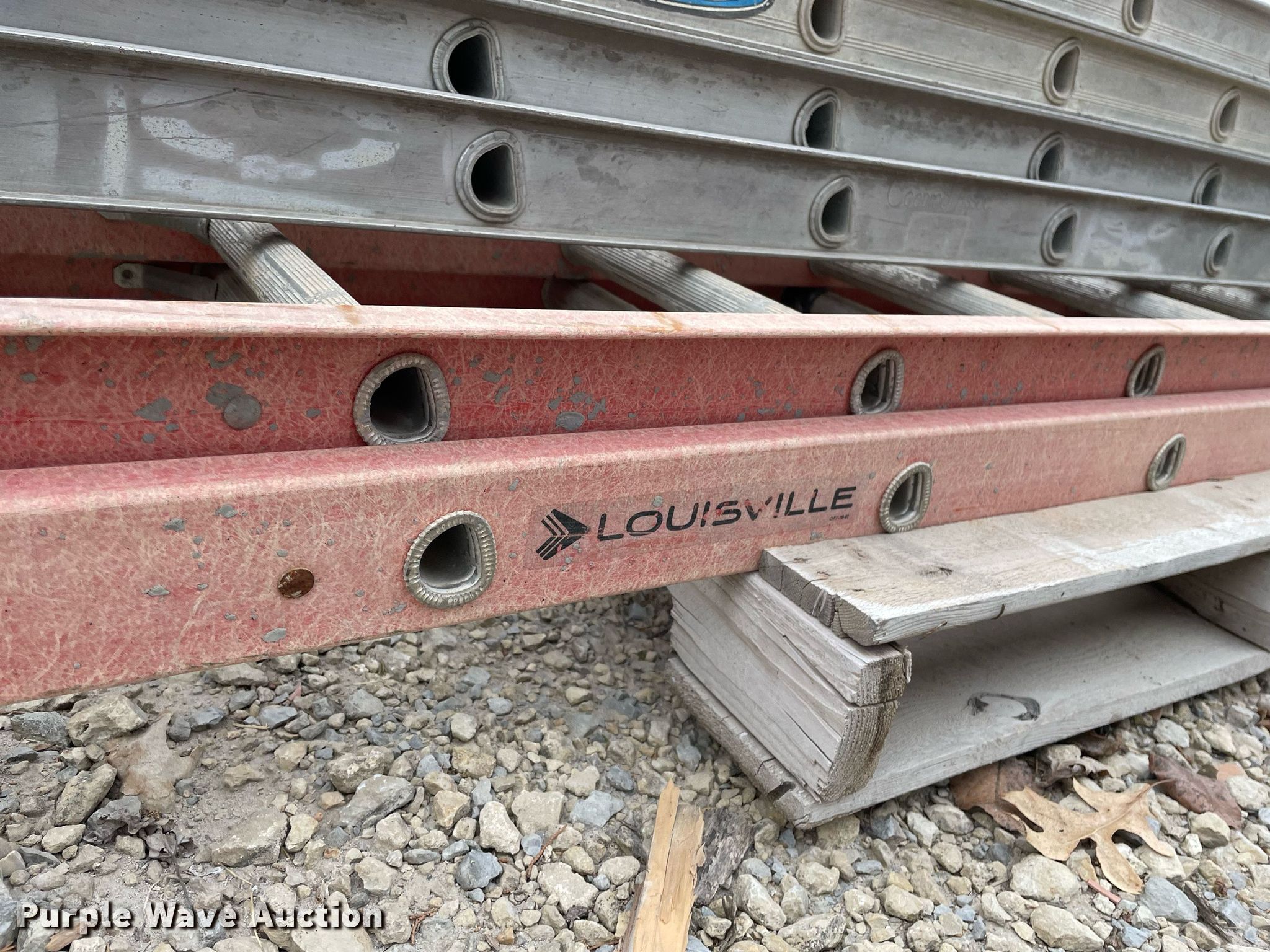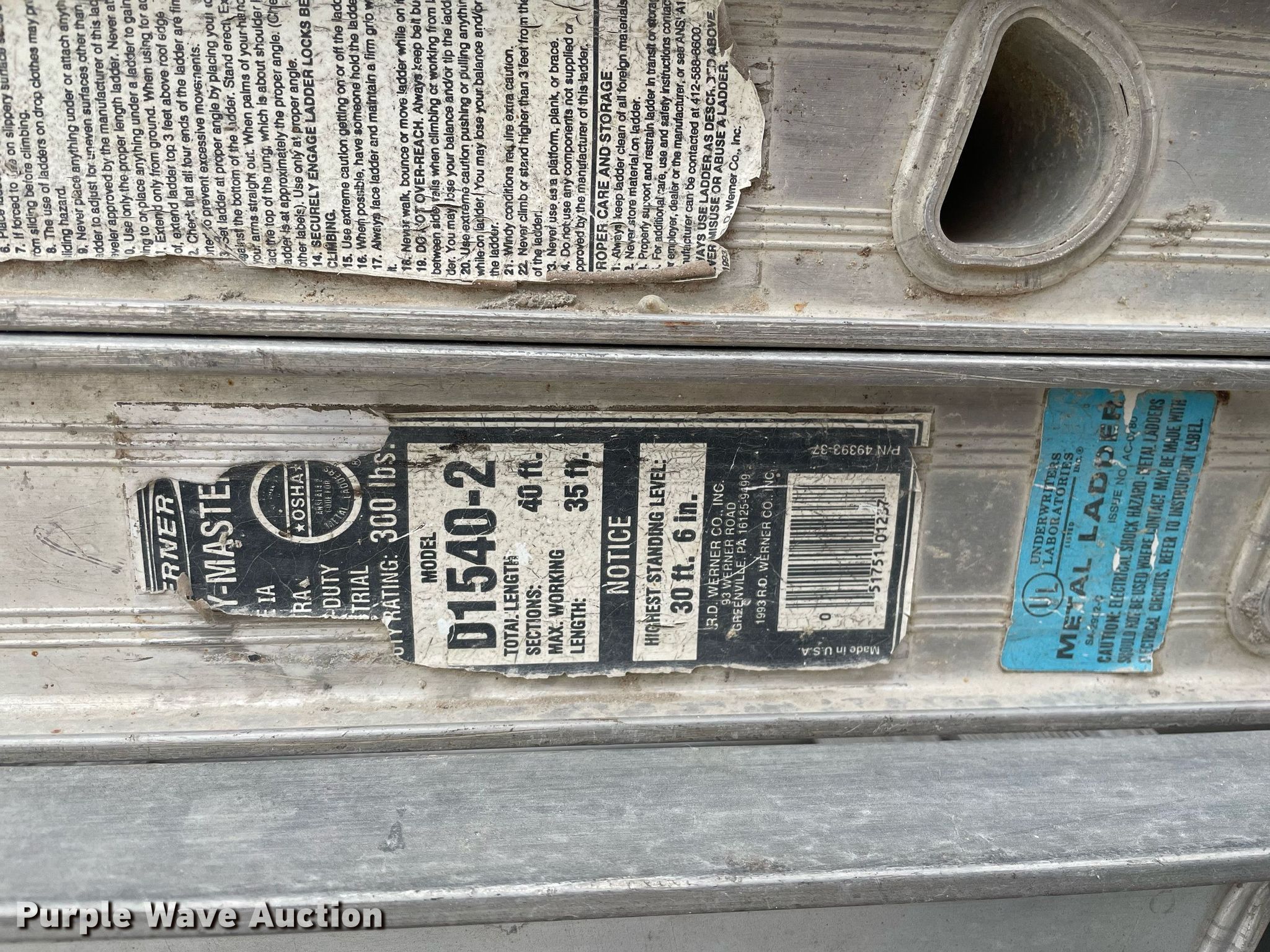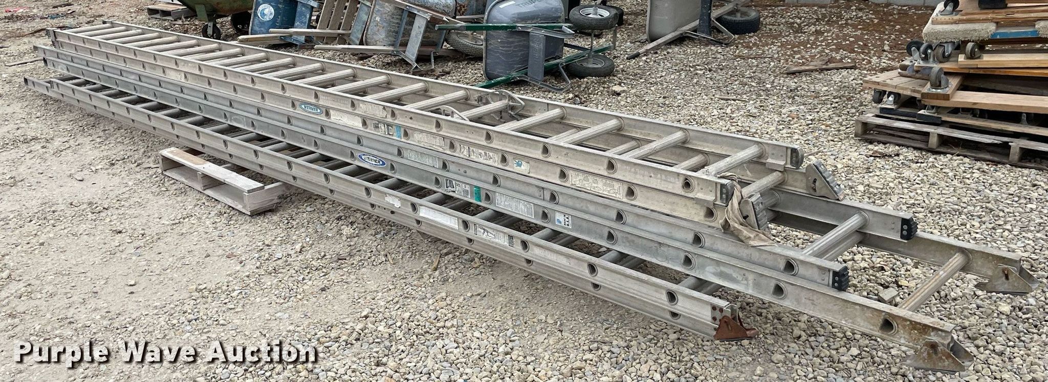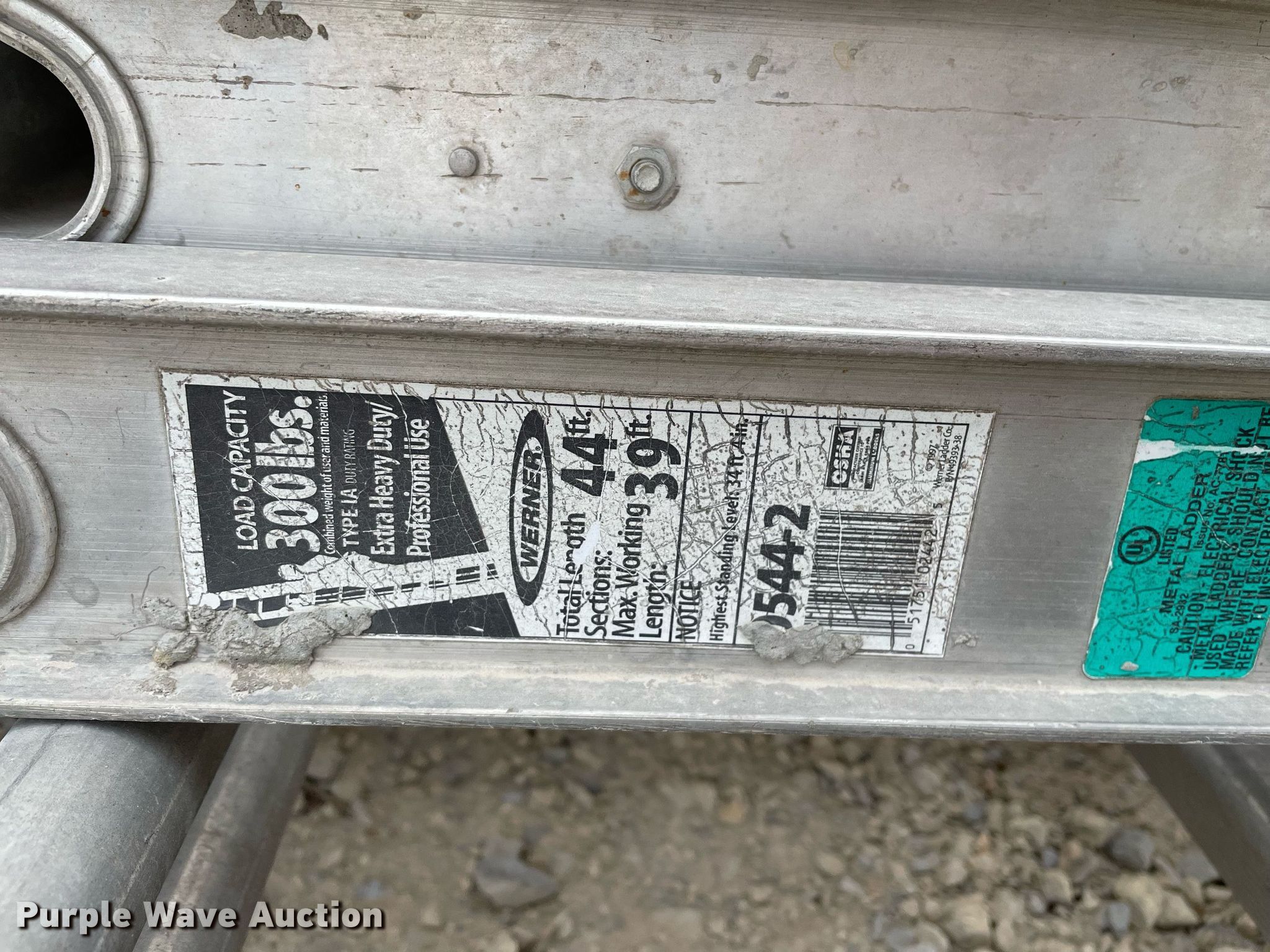 Purple Wave is selling a used Tools in Kansas. This item is a (3) ladders with the following: (2) Werner, 40' L, 44' L, Louisville