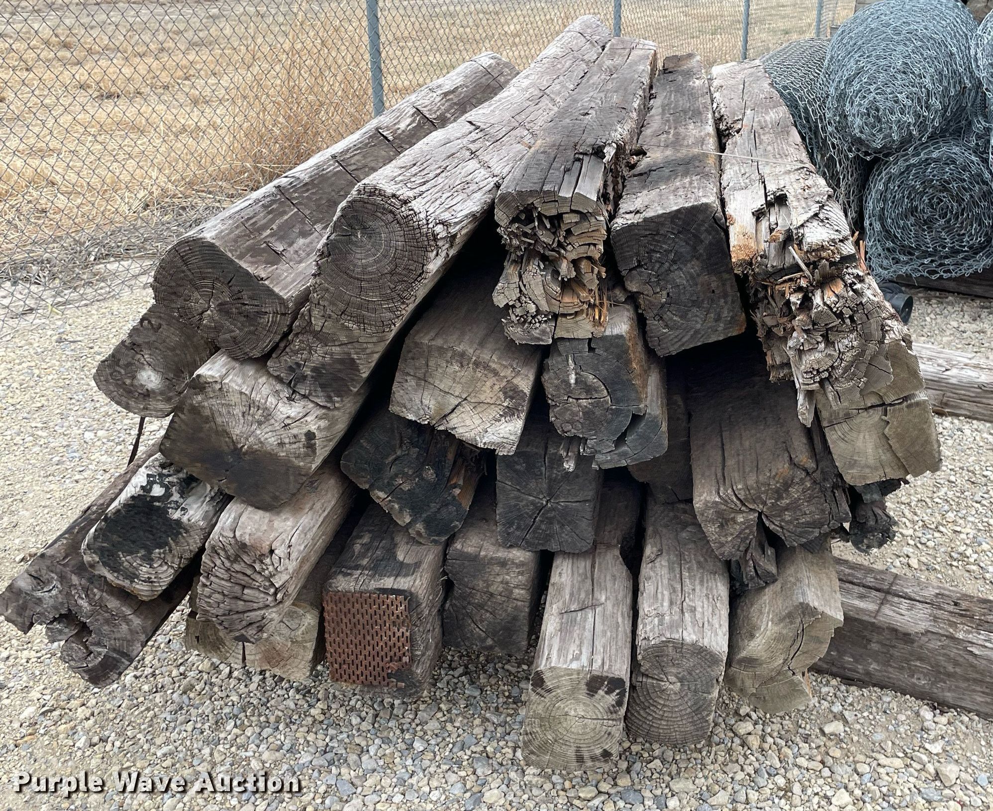 Purple Wave is selling a used Building Materials in Kansas. This item is a Approximately 100 railroad ties with the following: Approximately 100 railroad ties. Coonrod & Associates Construction Co. Retirement. 3550 South Hoover Road. Wichita, KS 67215