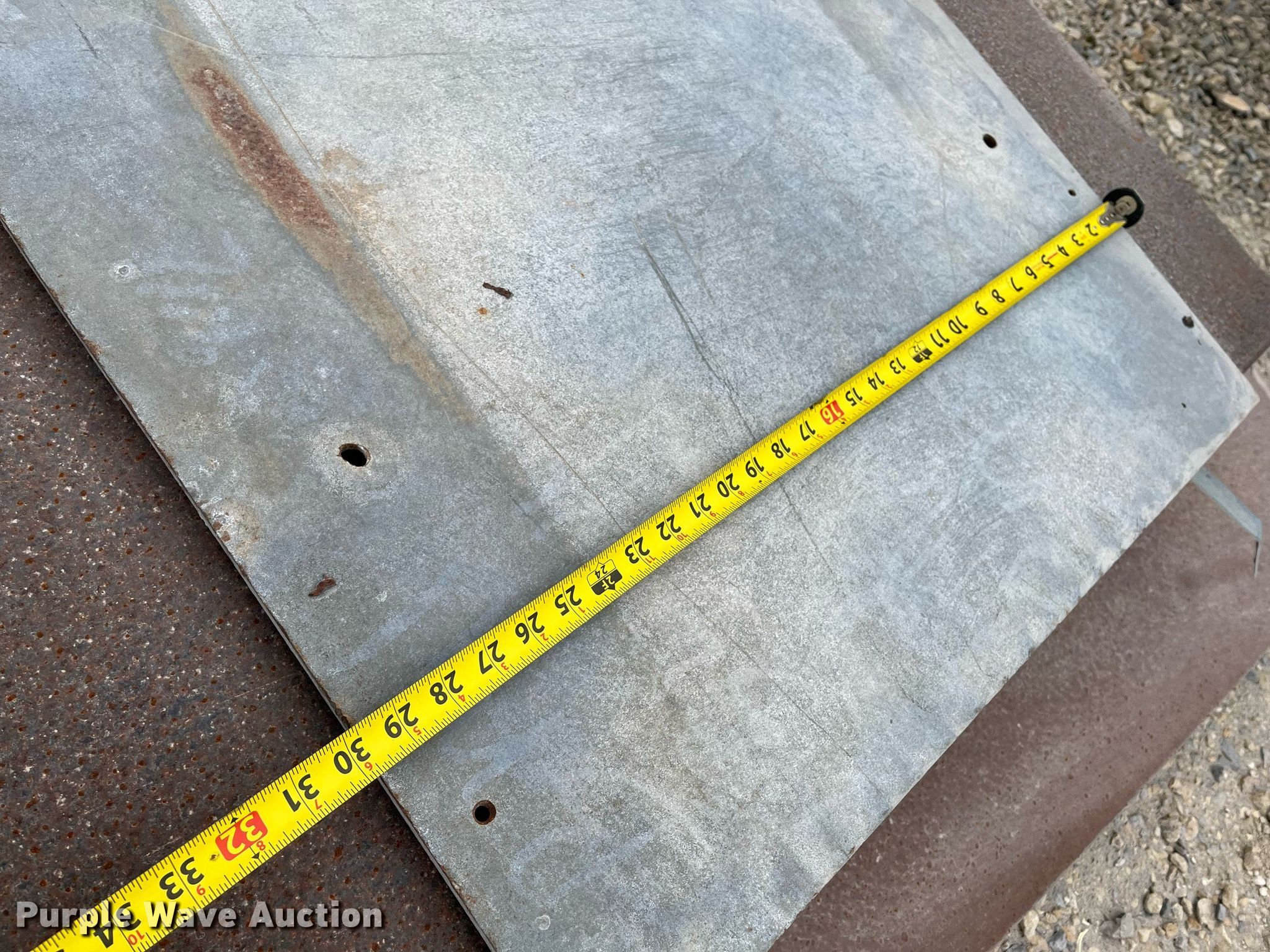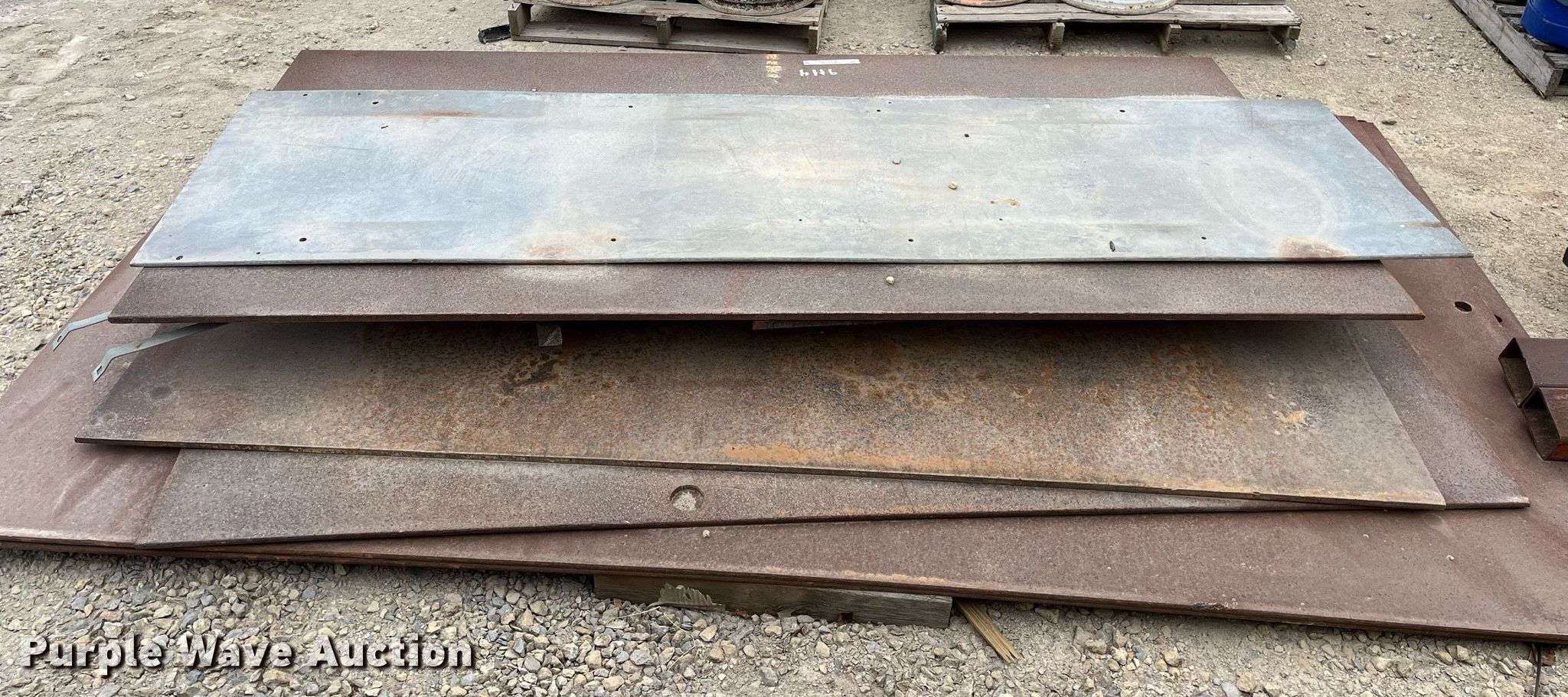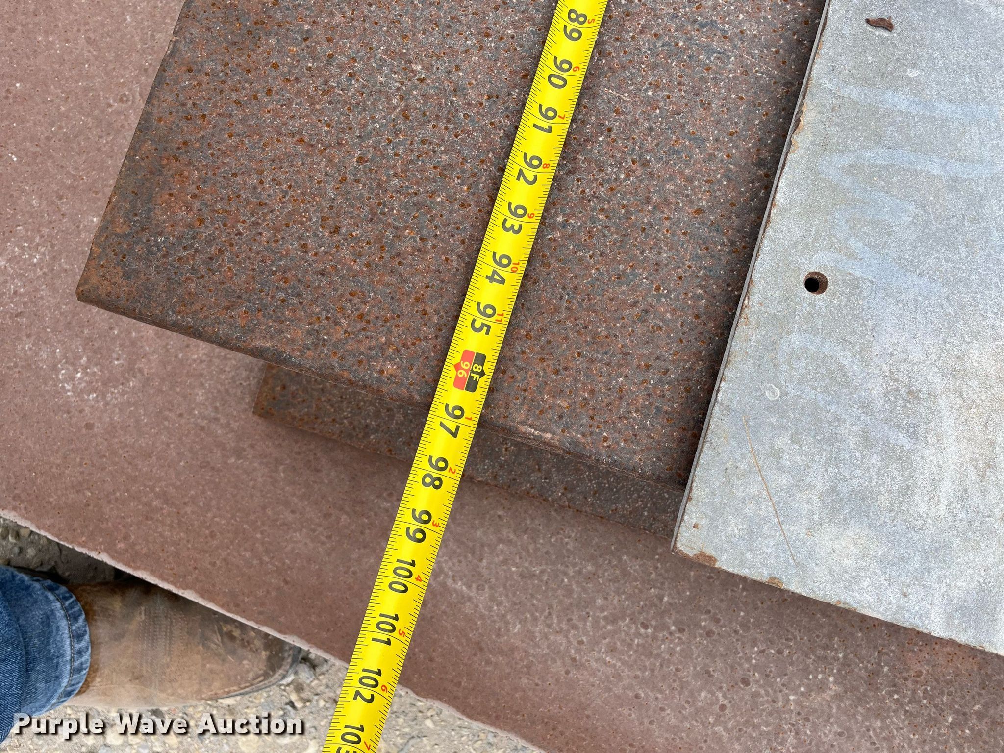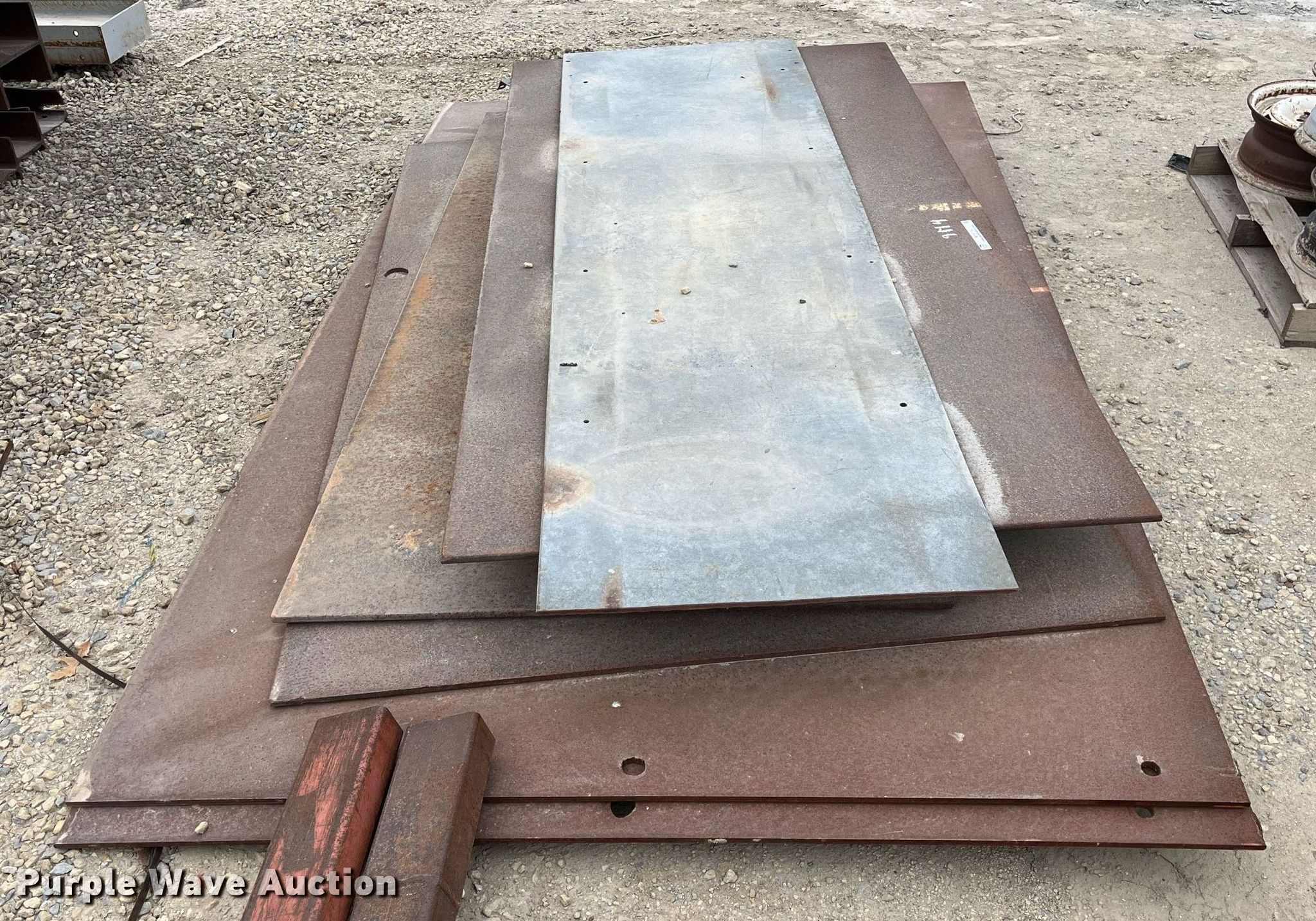 Purple Wave is selling a used Building Materials in Kansas. This item is a Approximately 8 steel plates with the following: Lengths: 8' 1" to 10' 2", Widths: 30" to 72"