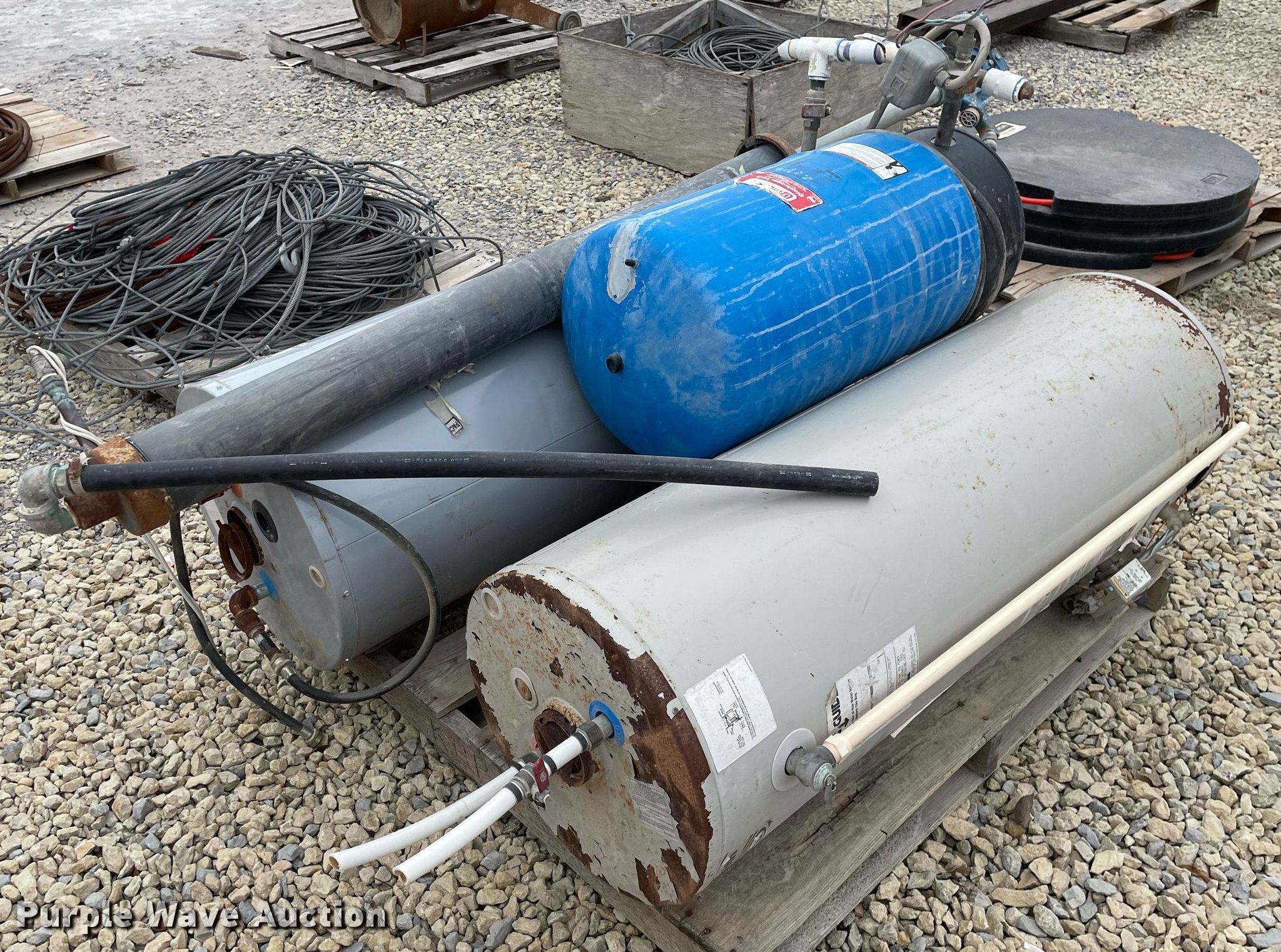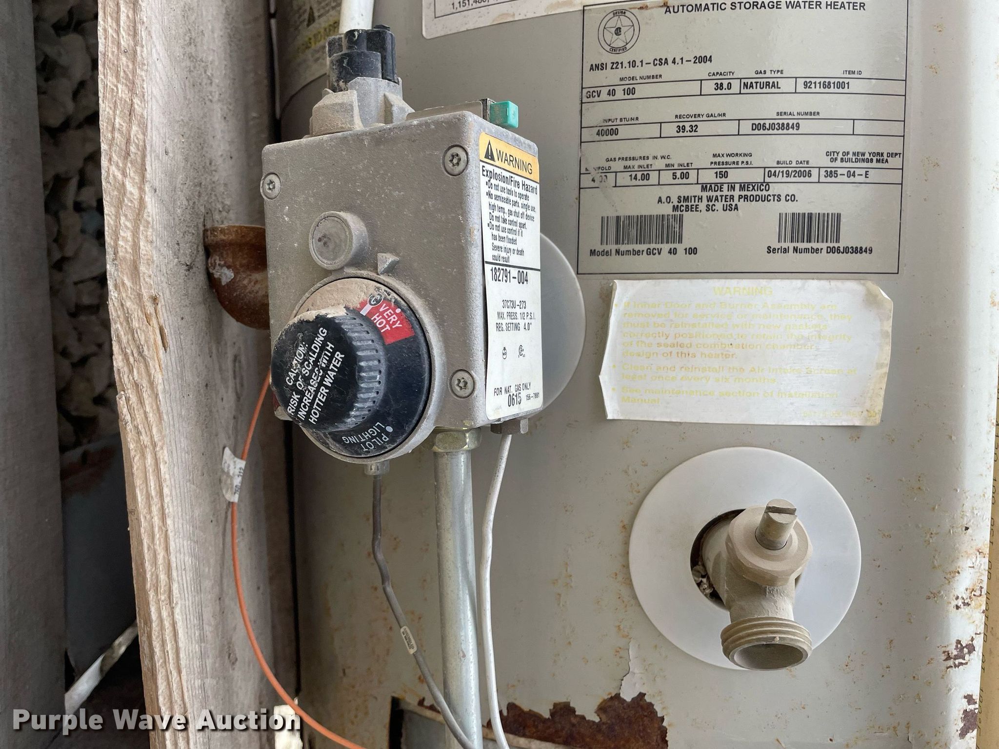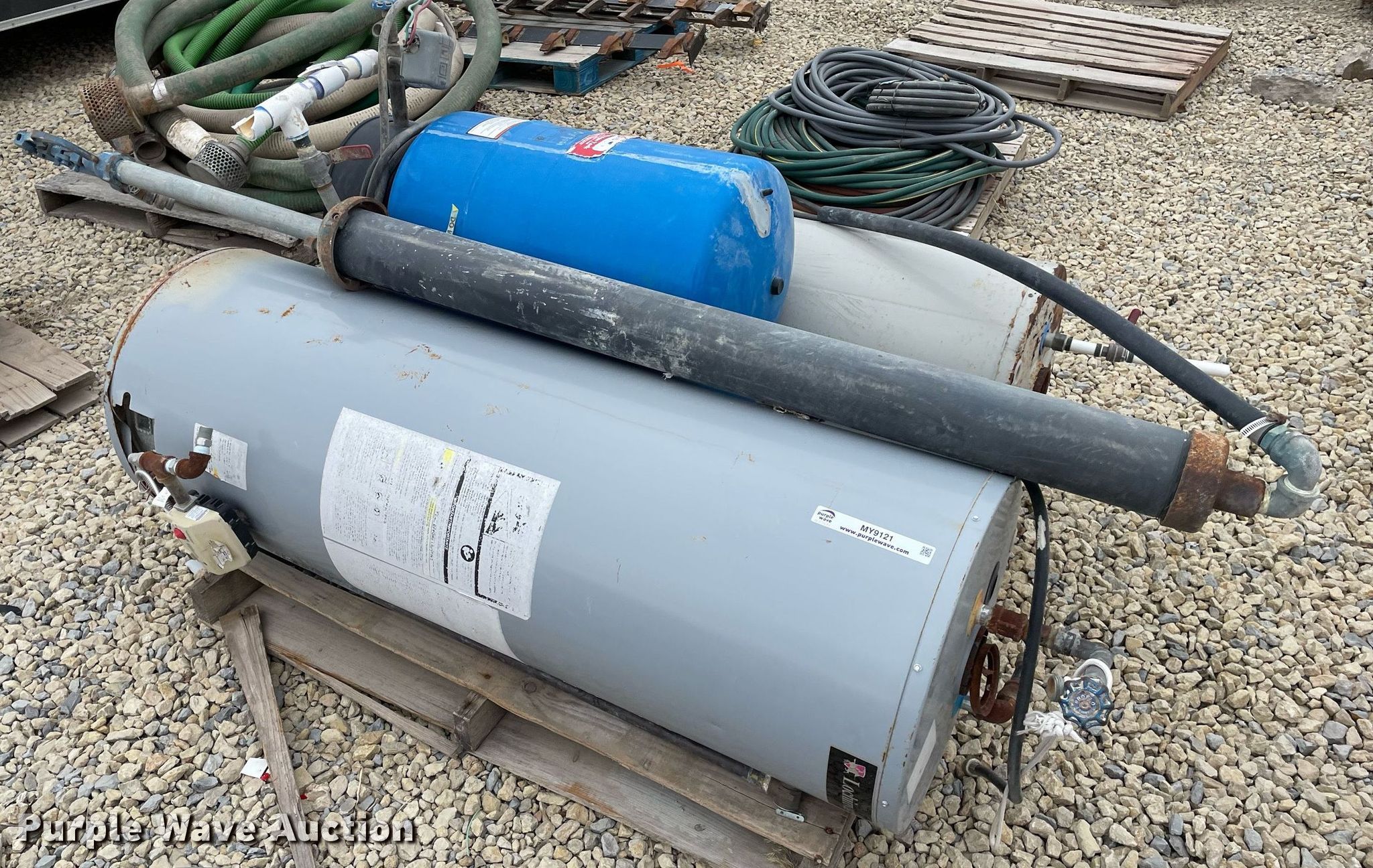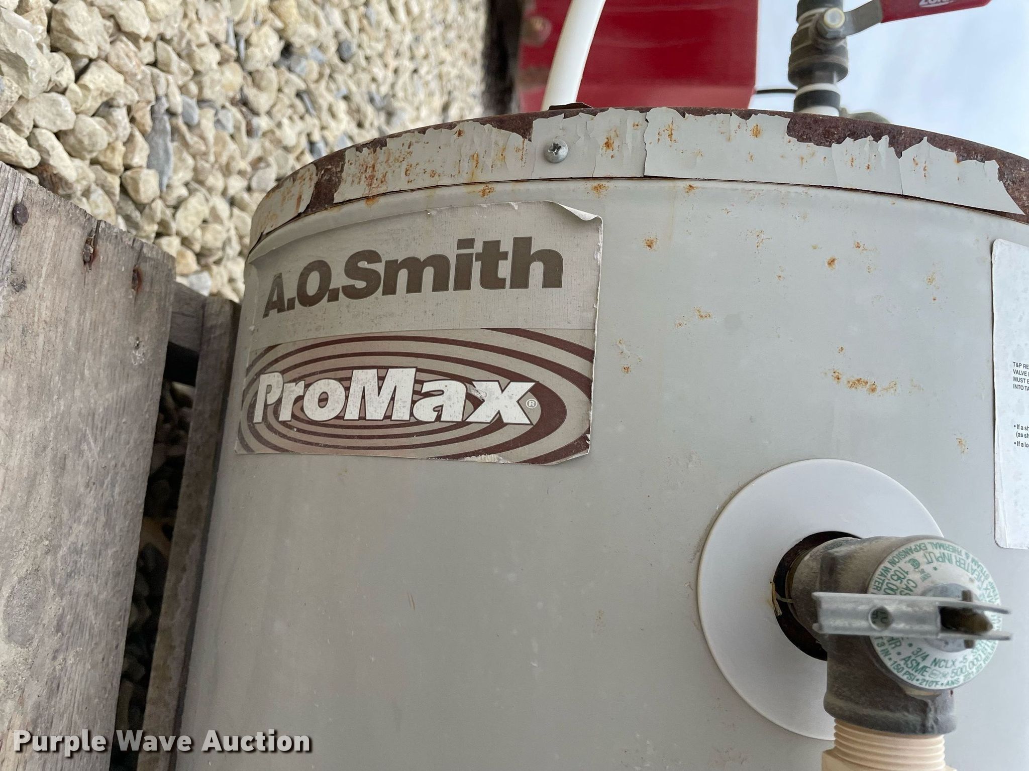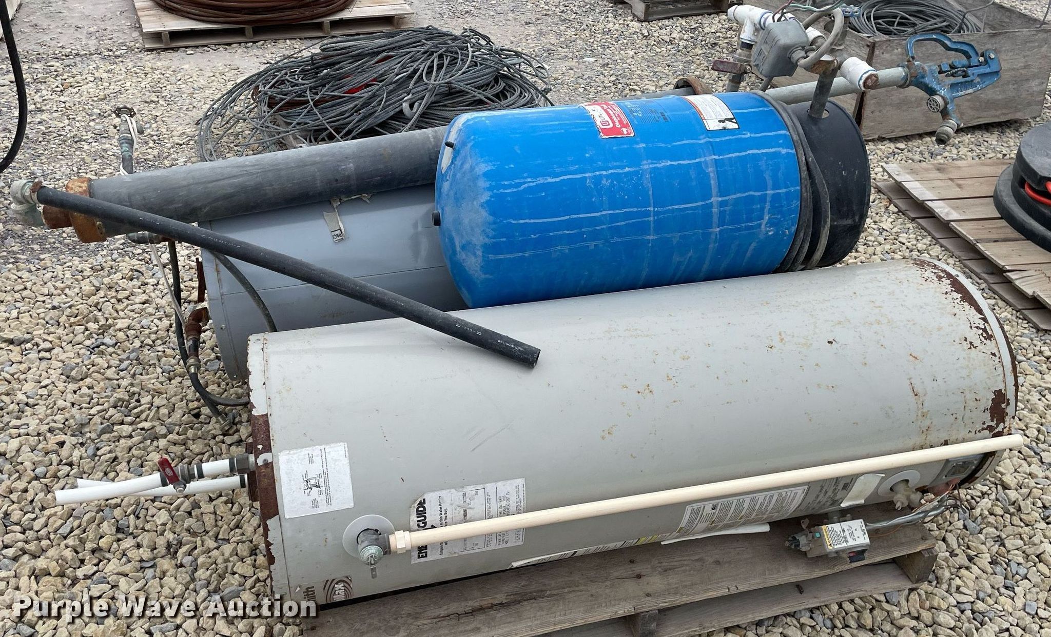 Purple Wave is selling a used Appliances in Kansas. This item is a Appliances with the following: (2) gas water heaters, Lochinvar 40 gallon, A.O. Smith 38 gallon, Woodford spigot, Utilitech diaphragm tank