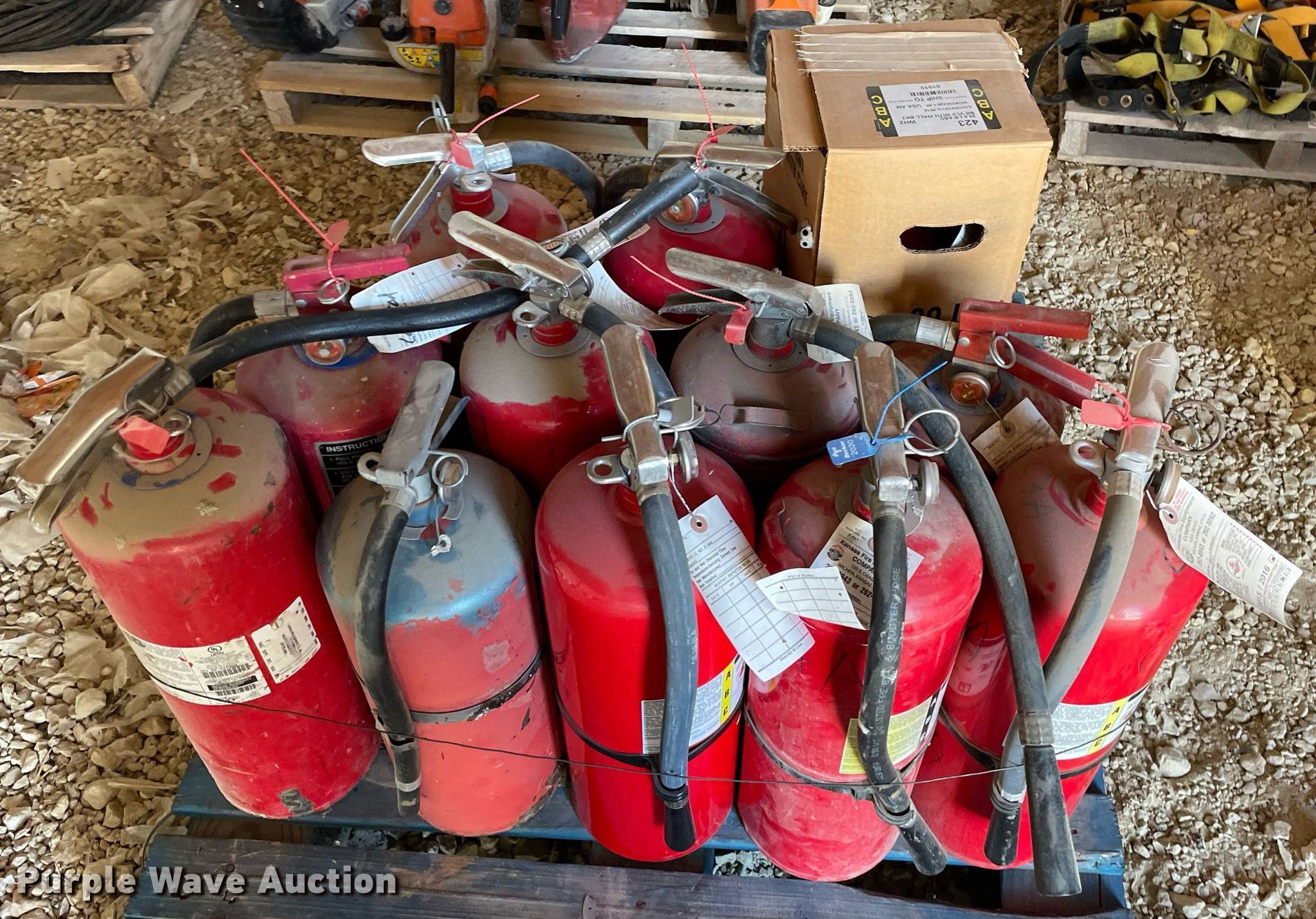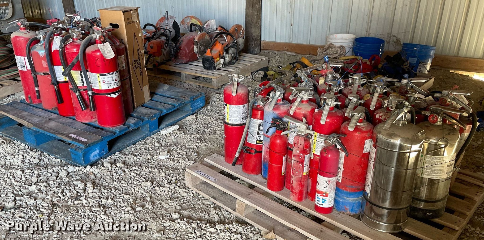 Purple Wave is selling a used Tools in Kansas. This item is a Approximately 50 fire extinguishers with the following: Unknown operating condition