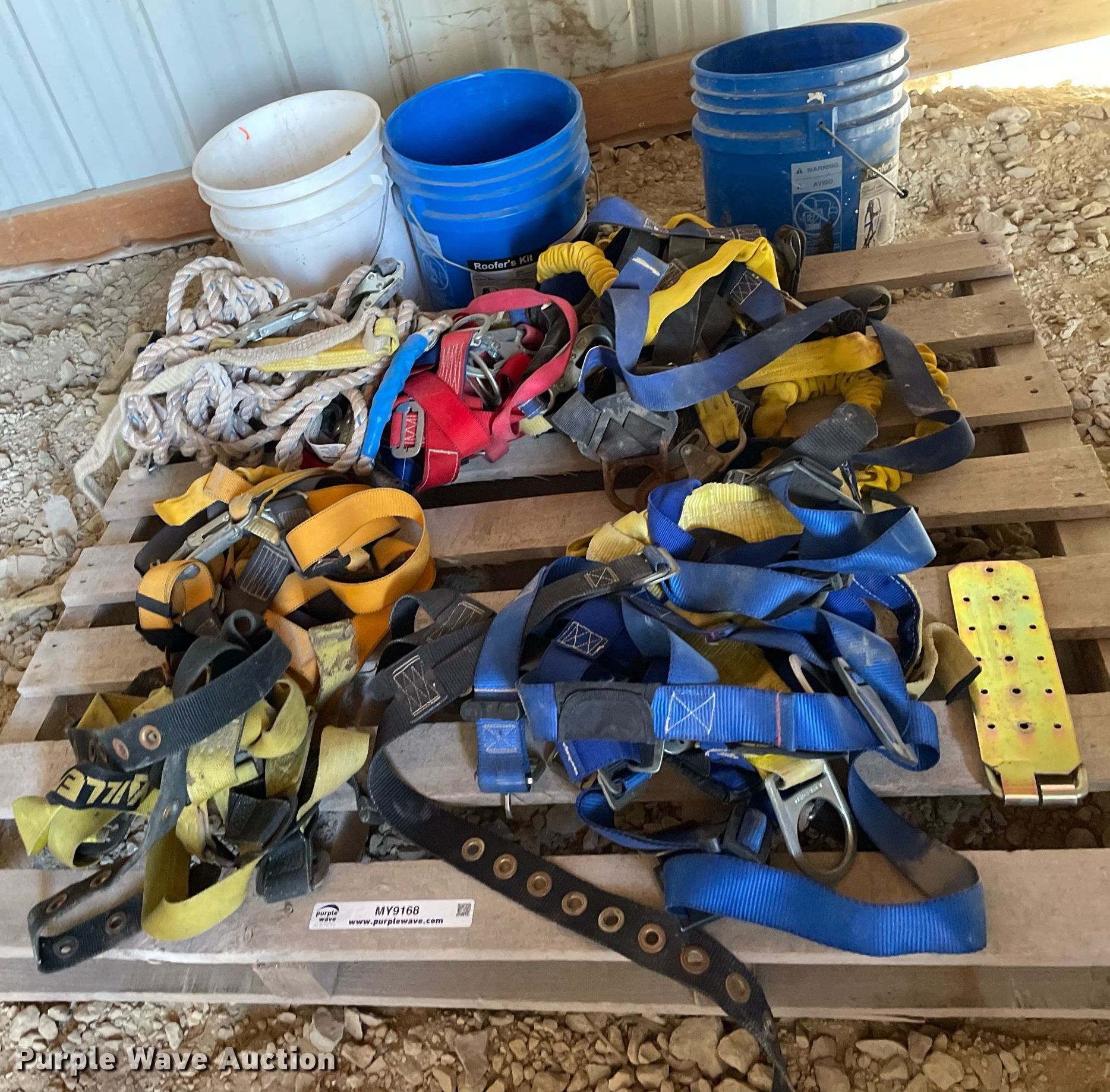 Purple Wave is selling a used Tools in Kansas. This item is a Fall protection equipment with the following: Approx. 5 harnesses, Buckets
