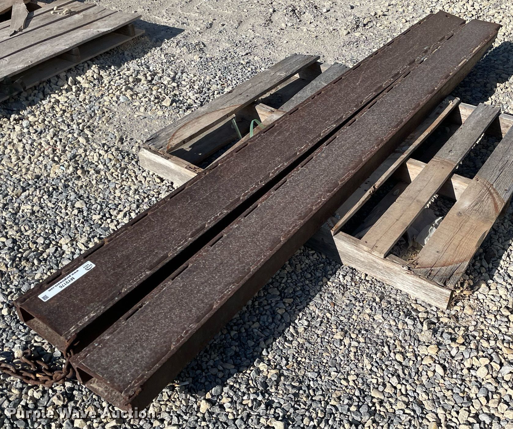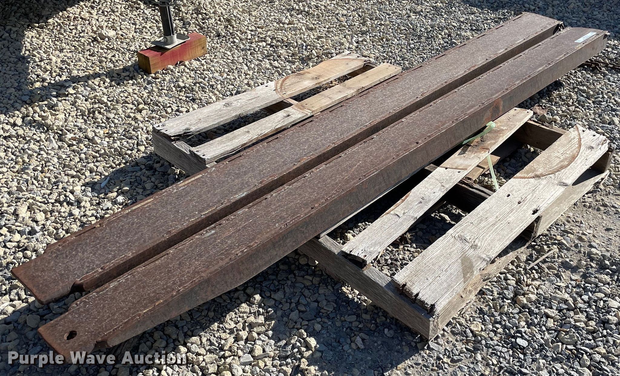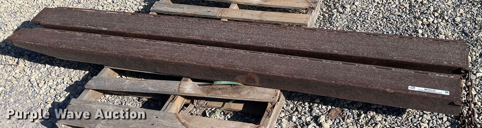 Purple Wave is selling a used Forklift Attach. in Kansas. This item is a 8'L fork extensions with the following: 8'L fork extensions. Coonrod & Associates Construction Co. Retirement. 3550 South Hoover Road. Wichita, KS 67215
