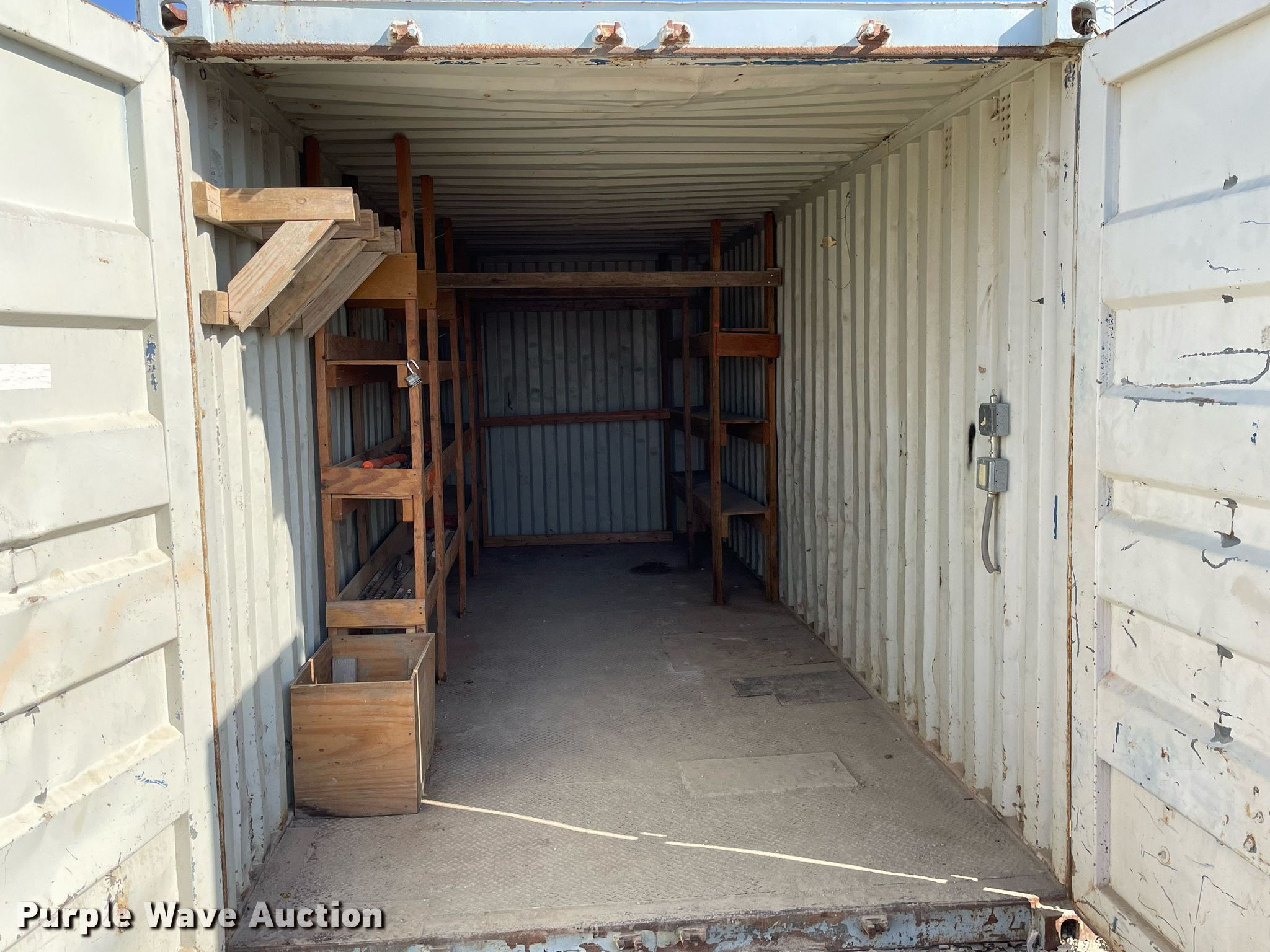 Purple Wave is selling a used Storage or Shipping Container in Kansas. This item is a Shipping container with the following: 19' 10" x 96" x 8' 5", Shelves included, Other contents not included