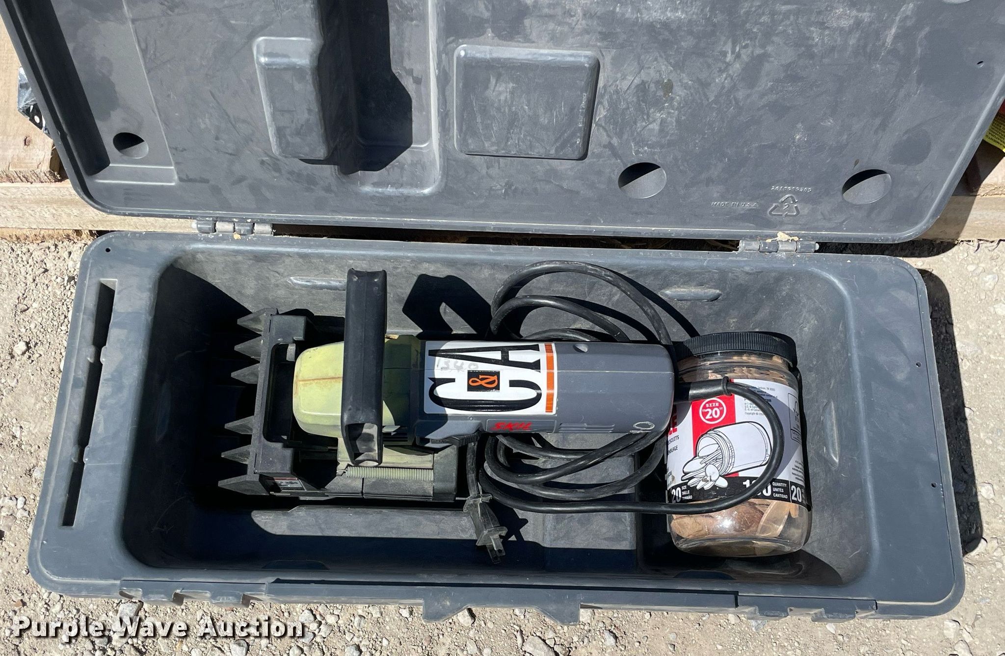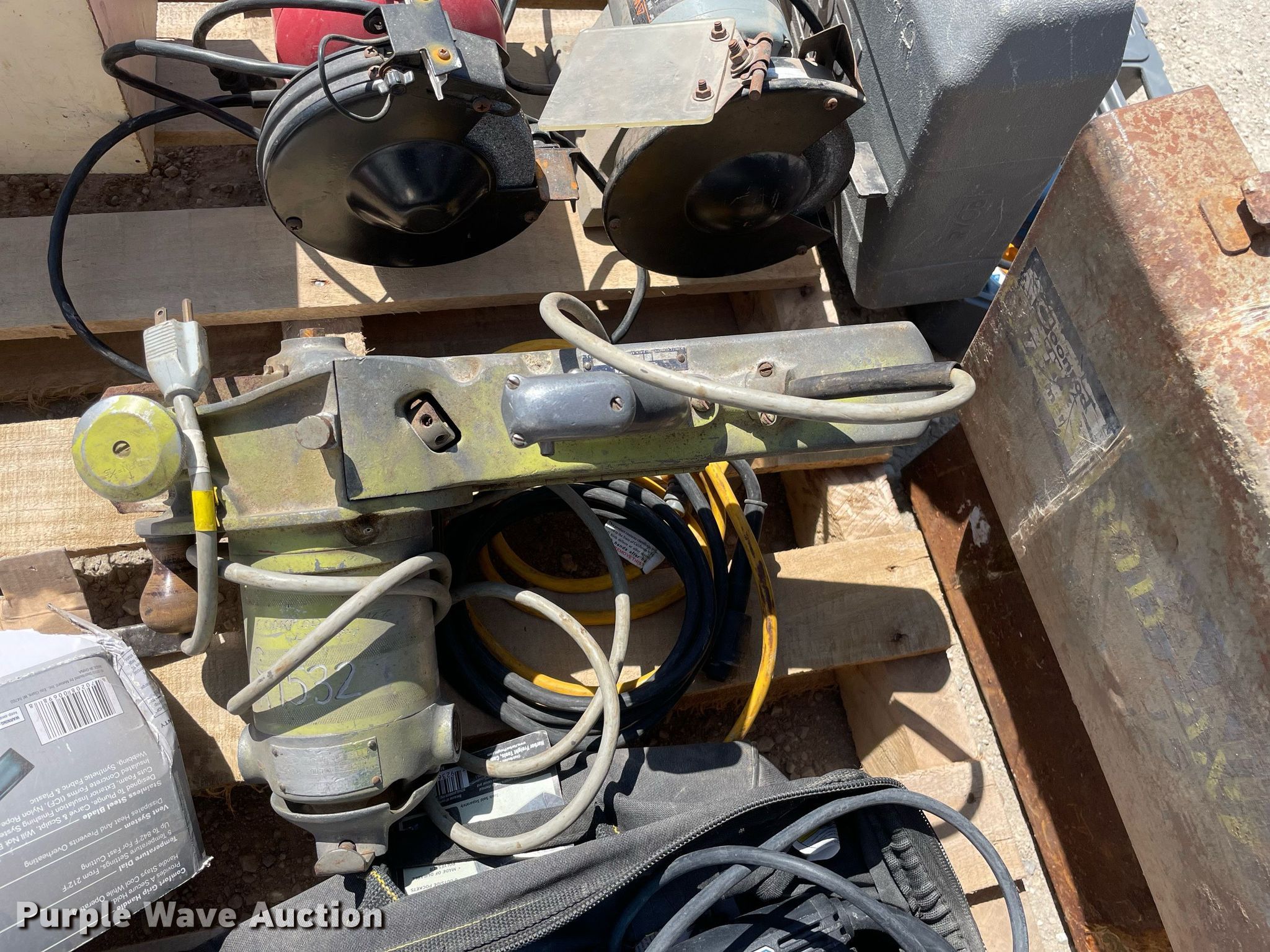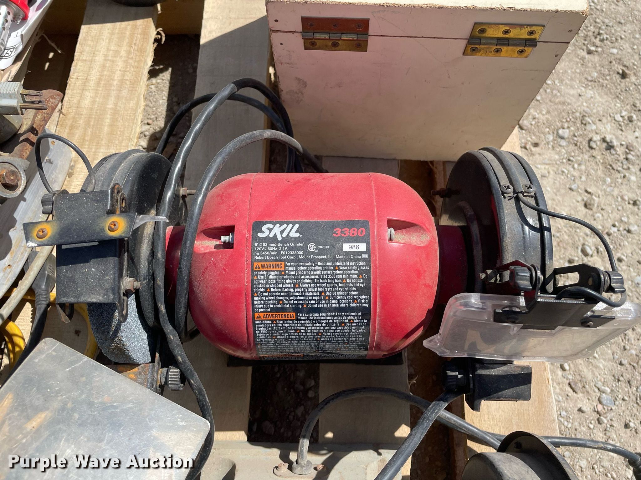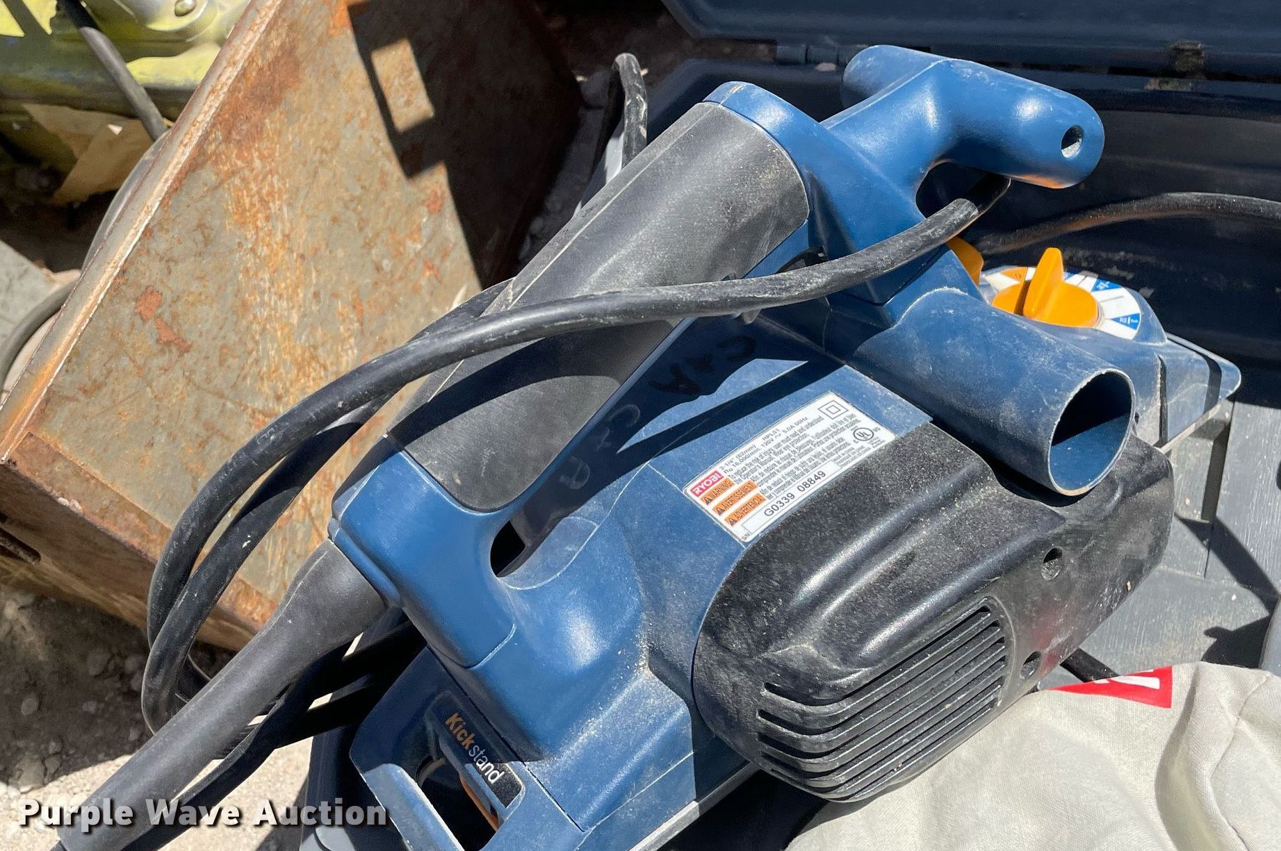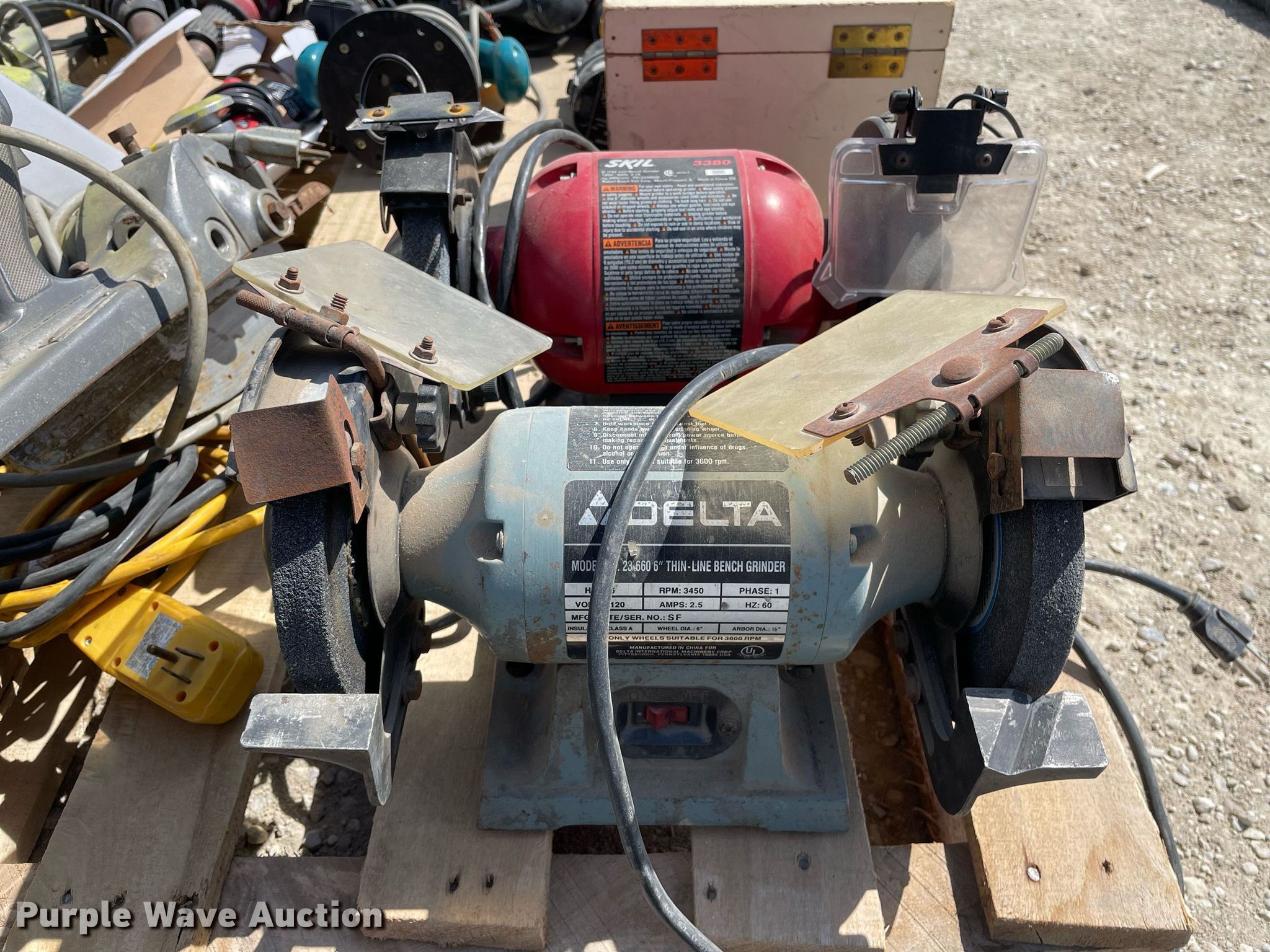 Purple Wave is selling a used Tools in Kansas. This item is a Tools with the following: Plate joiner, (3) heat guns, Hot knife, Hercules 1/4" die grinder, (4) planers, (2) bench grinders, (7) routers