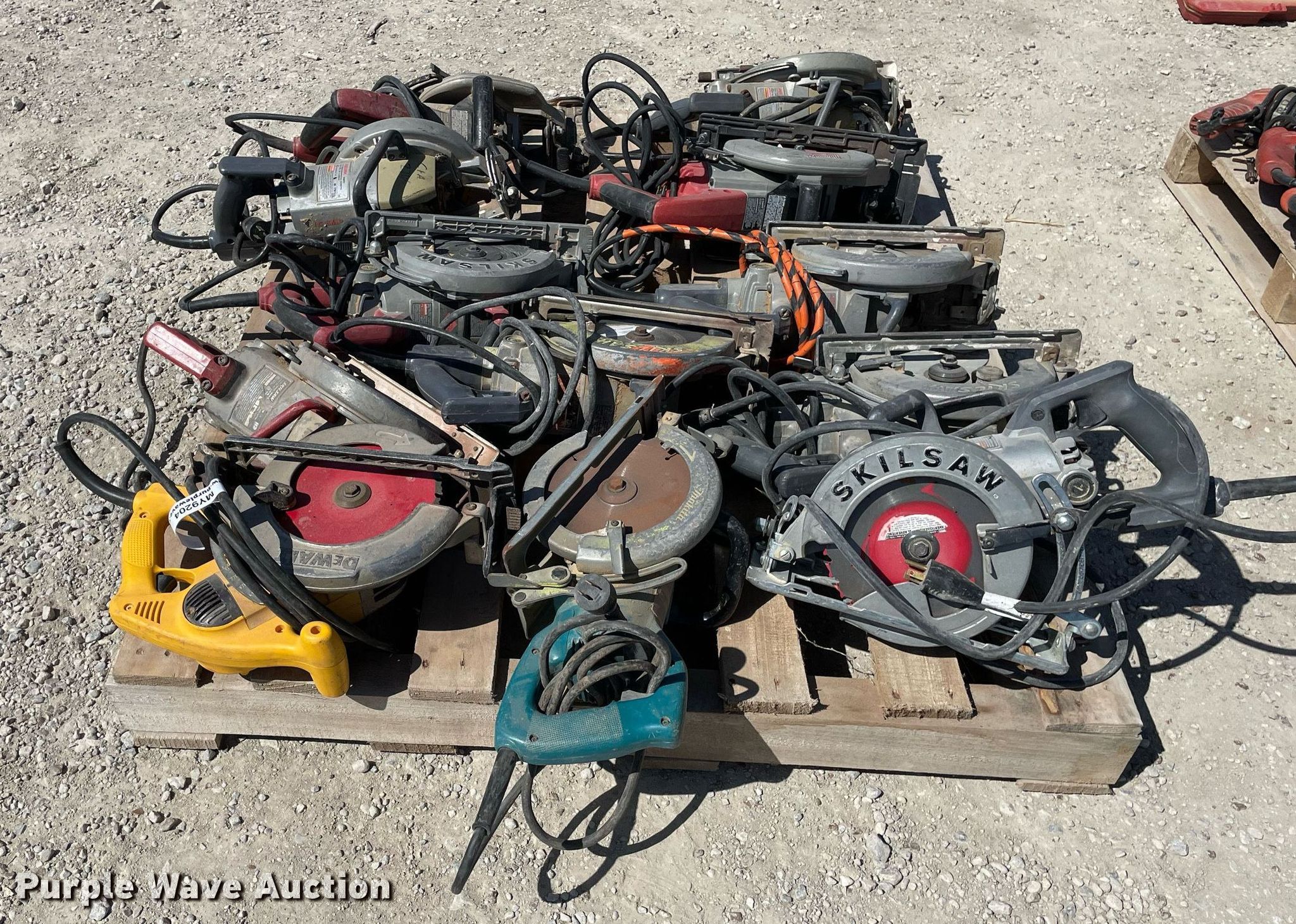 Purple Wave is selling a used Tools in Kansas. This item is a (12) circular saws with the following: (12) circular saws. Coonrod & Associates Construction Co. Retirement. 3550 South Hoover Road. Wichita, KS 67215