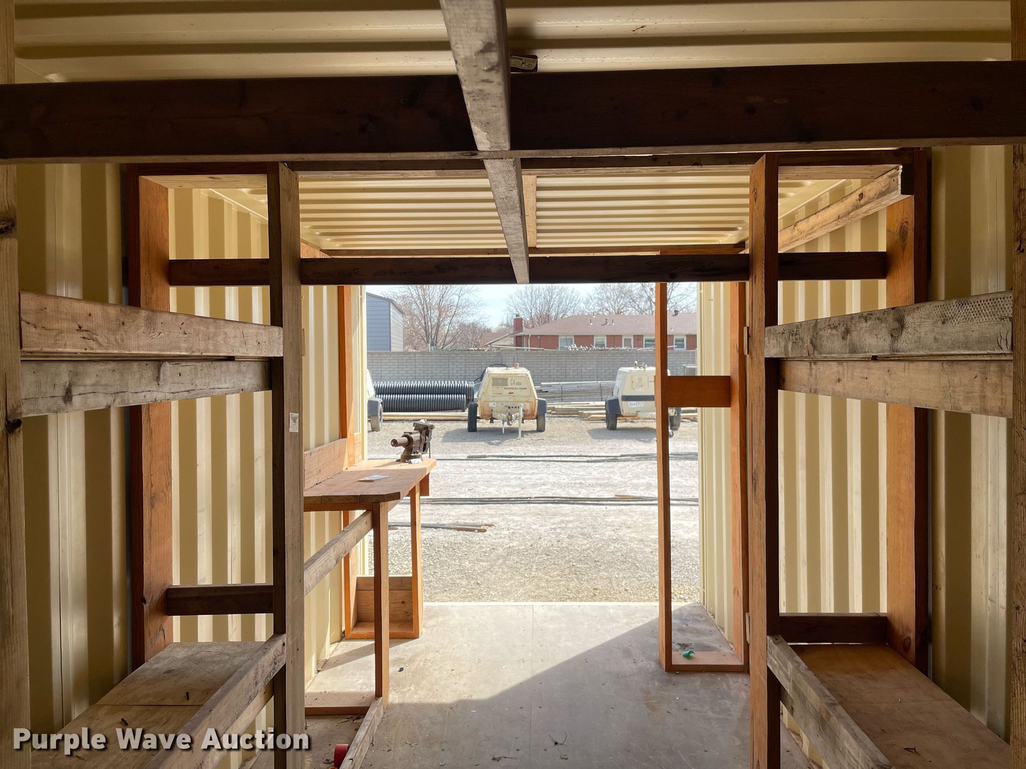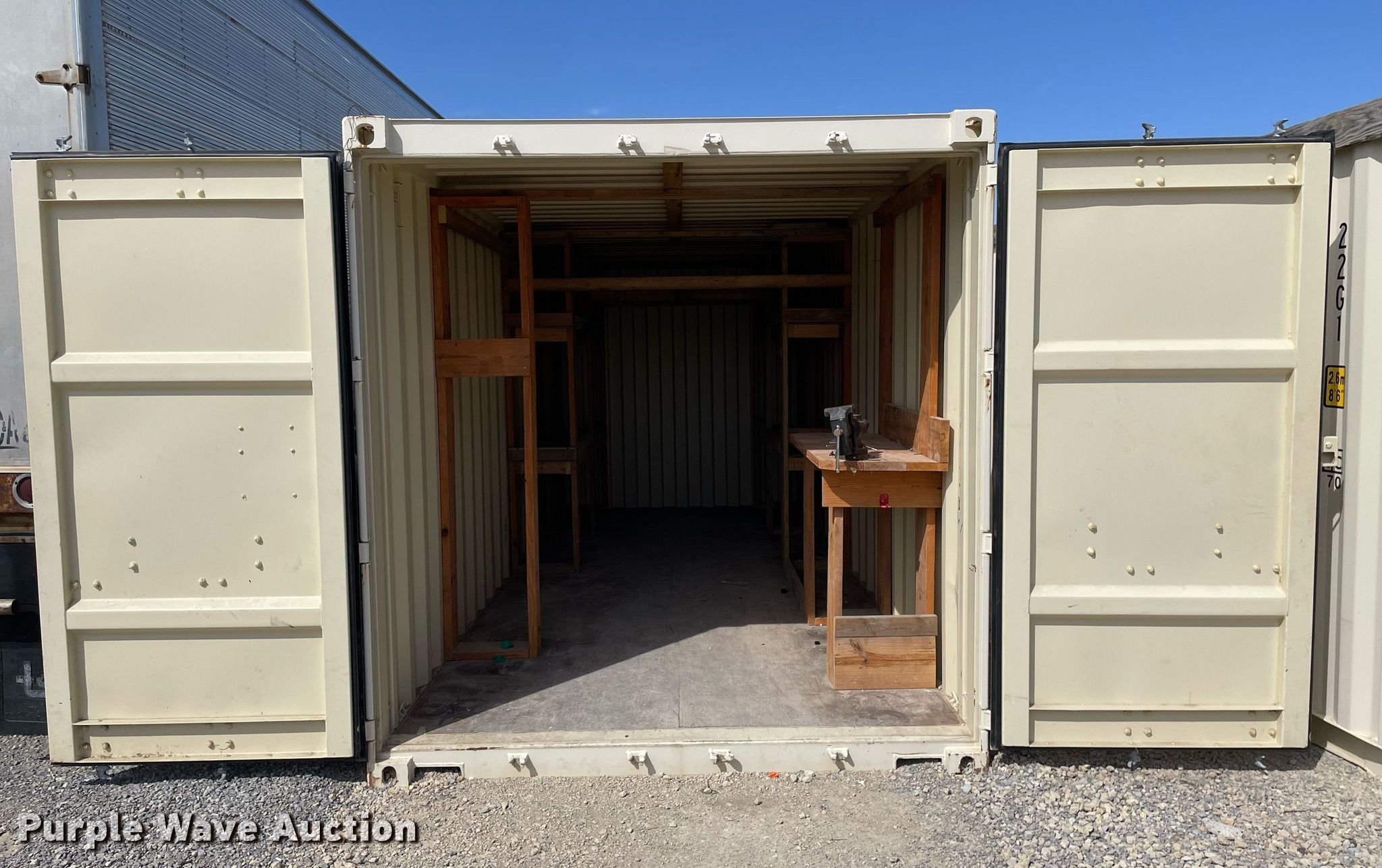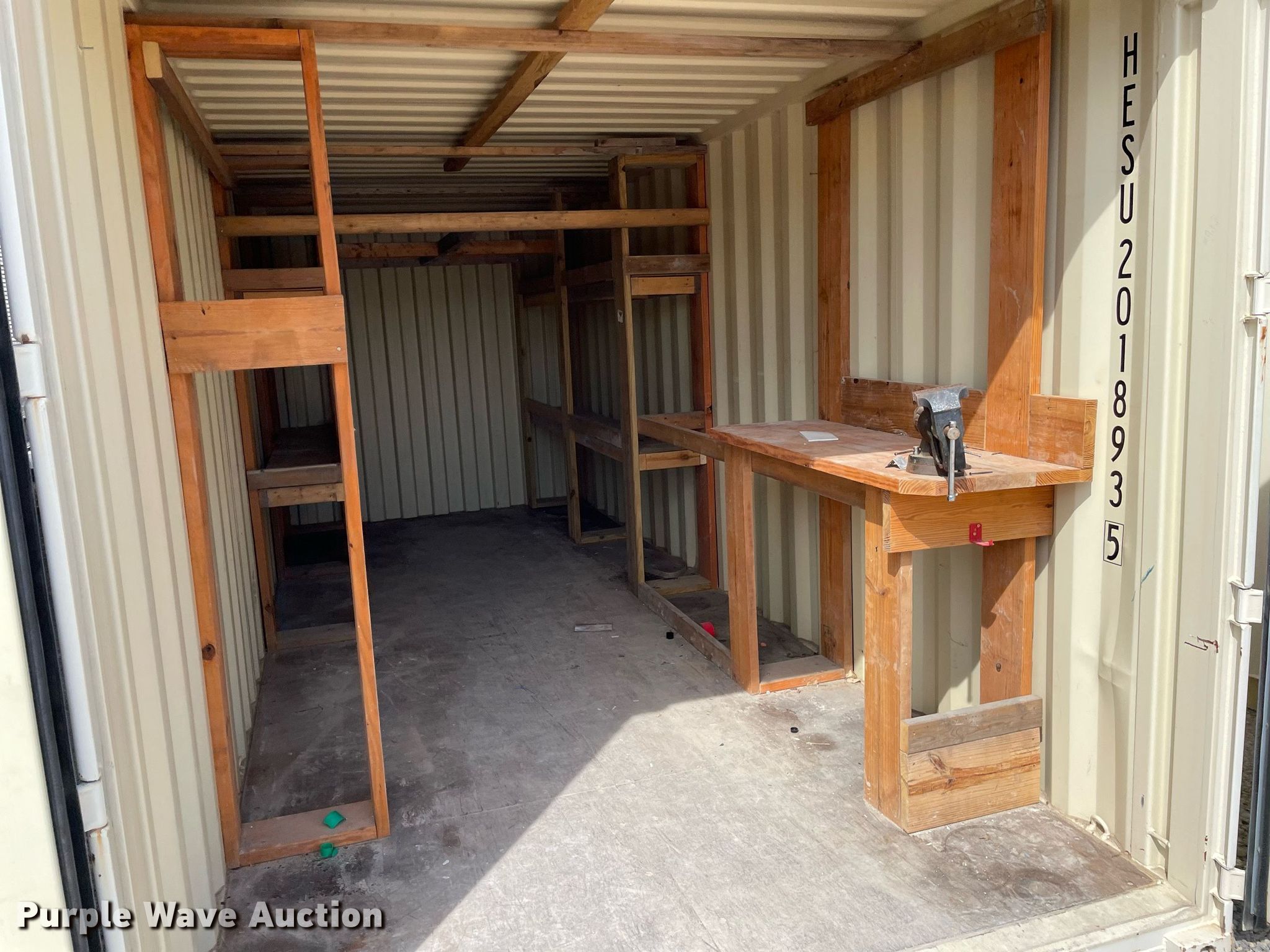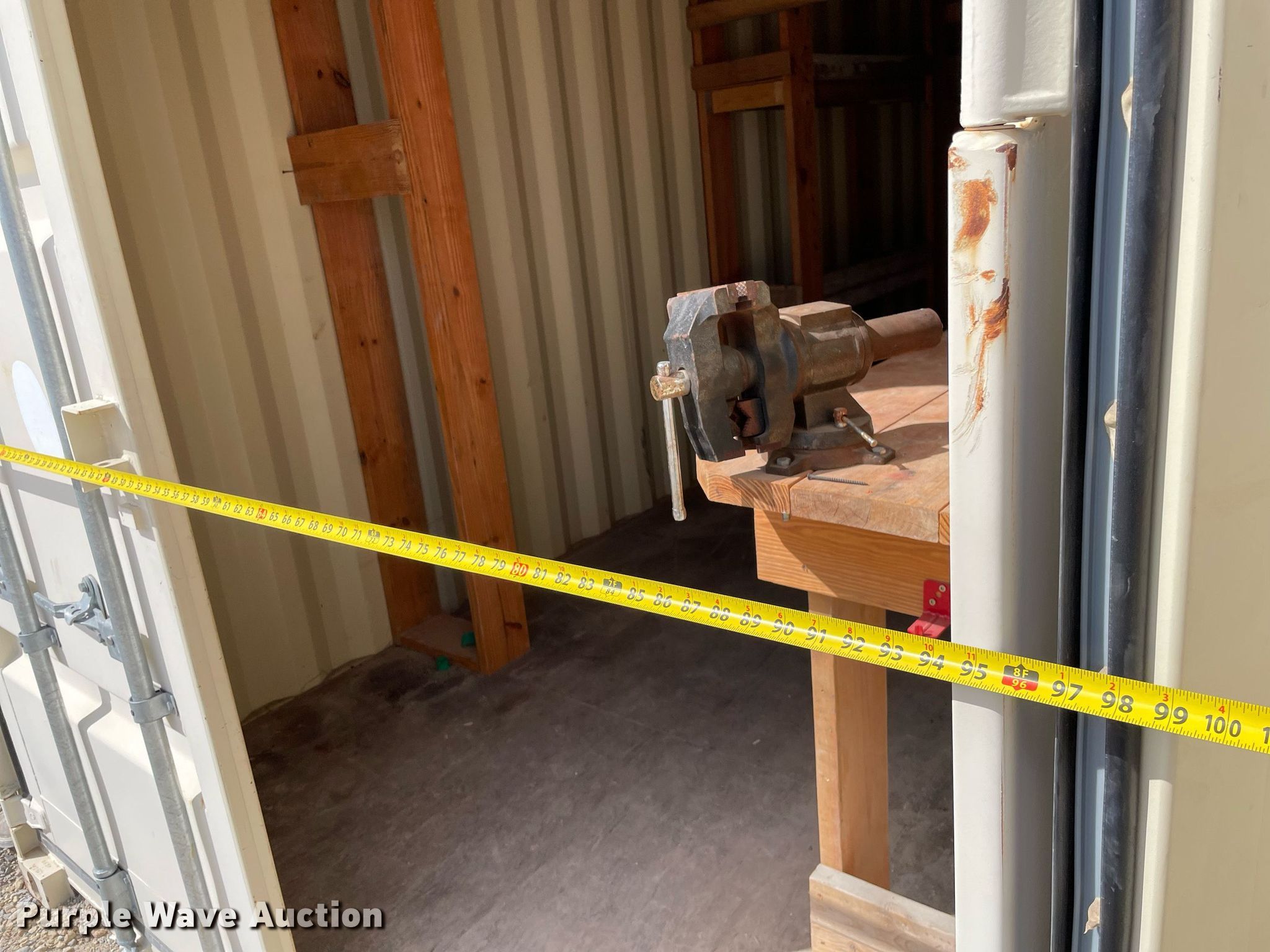 2015 Fohsin Container F-40-001 shipping container. 19'10" x 96" x 101", Shelves , Bench vise. Coonrod & Associates Construction Co. Retirement. 3550 South Hoover Road. Wichita, KS 67215