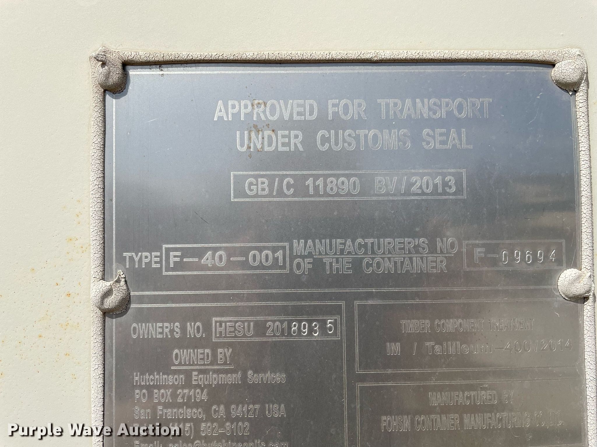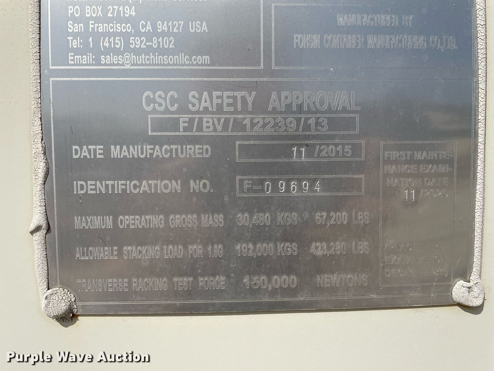 2015 Fohsin Container F-40-001 shipping container has sold in Wichita, Kansas for $6270. Item MY9212 sold on May 4th, 2023.