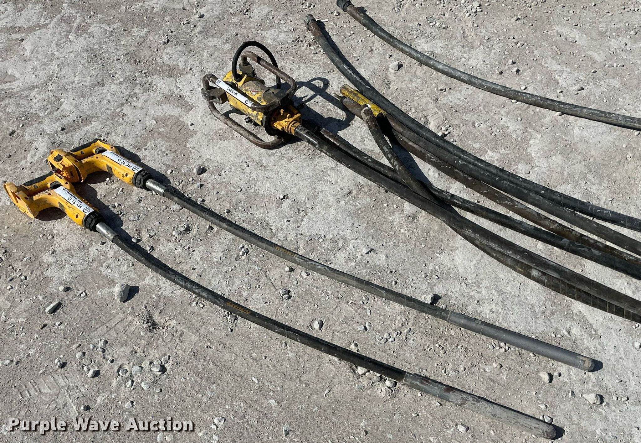Purple Wave is selling a used Concrete Equip. or Acces. in Kansas. This item is a (3) concrete vibrators with the following: (2) DeWalt, Stinger length: 4', Oztec, Stinger length: 15', (6) stingers, Lengths: 6' to 21'