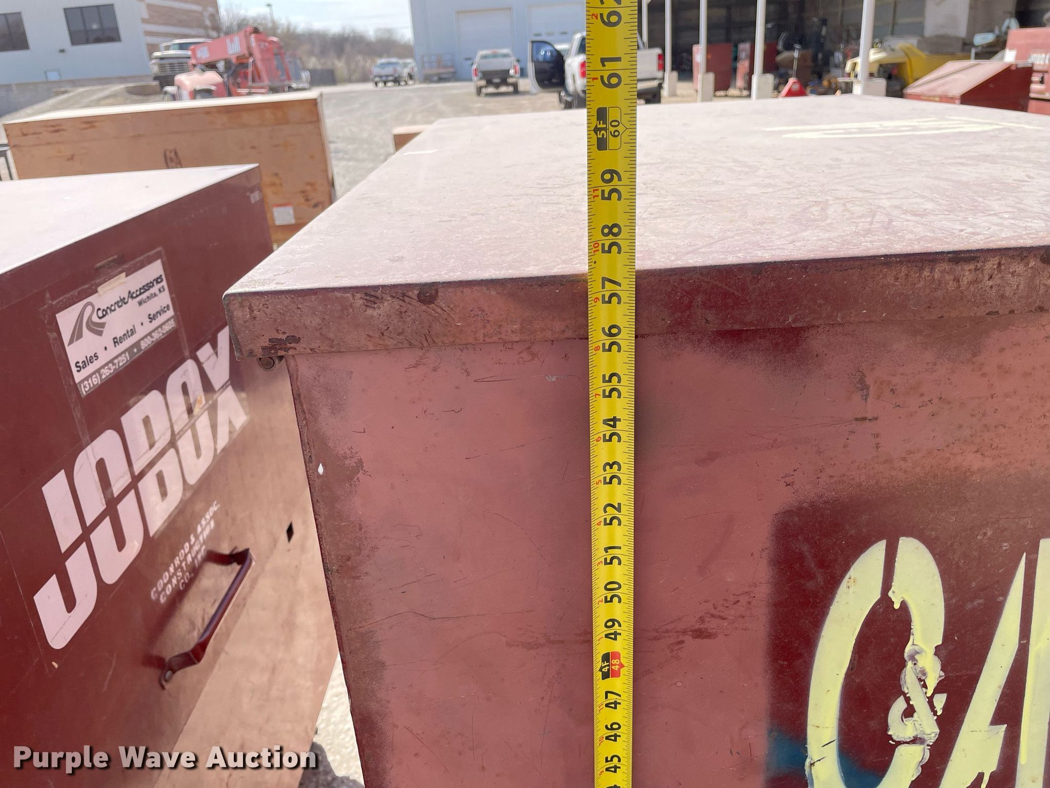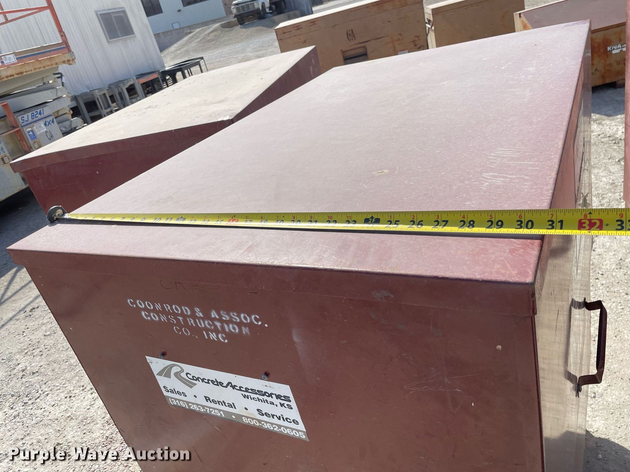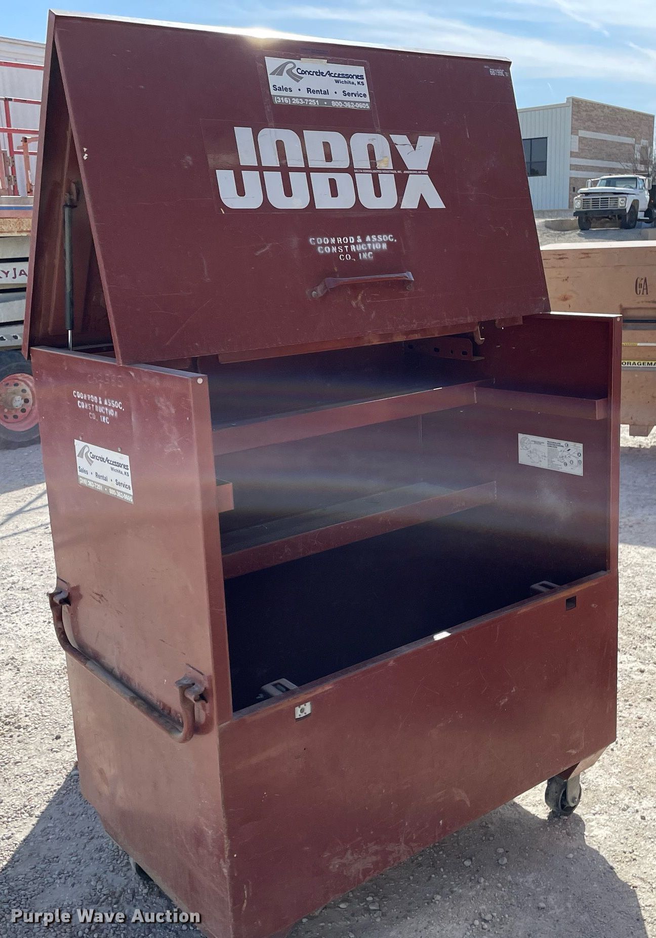 Purple Wave is selling a used Tools in Kansas. This item is a (3) job boxes with the following: (3) job boxes. Coonrod & Associates Construction Co. Retirement. 3550 South Hoover Road. Wichita, KS 67215