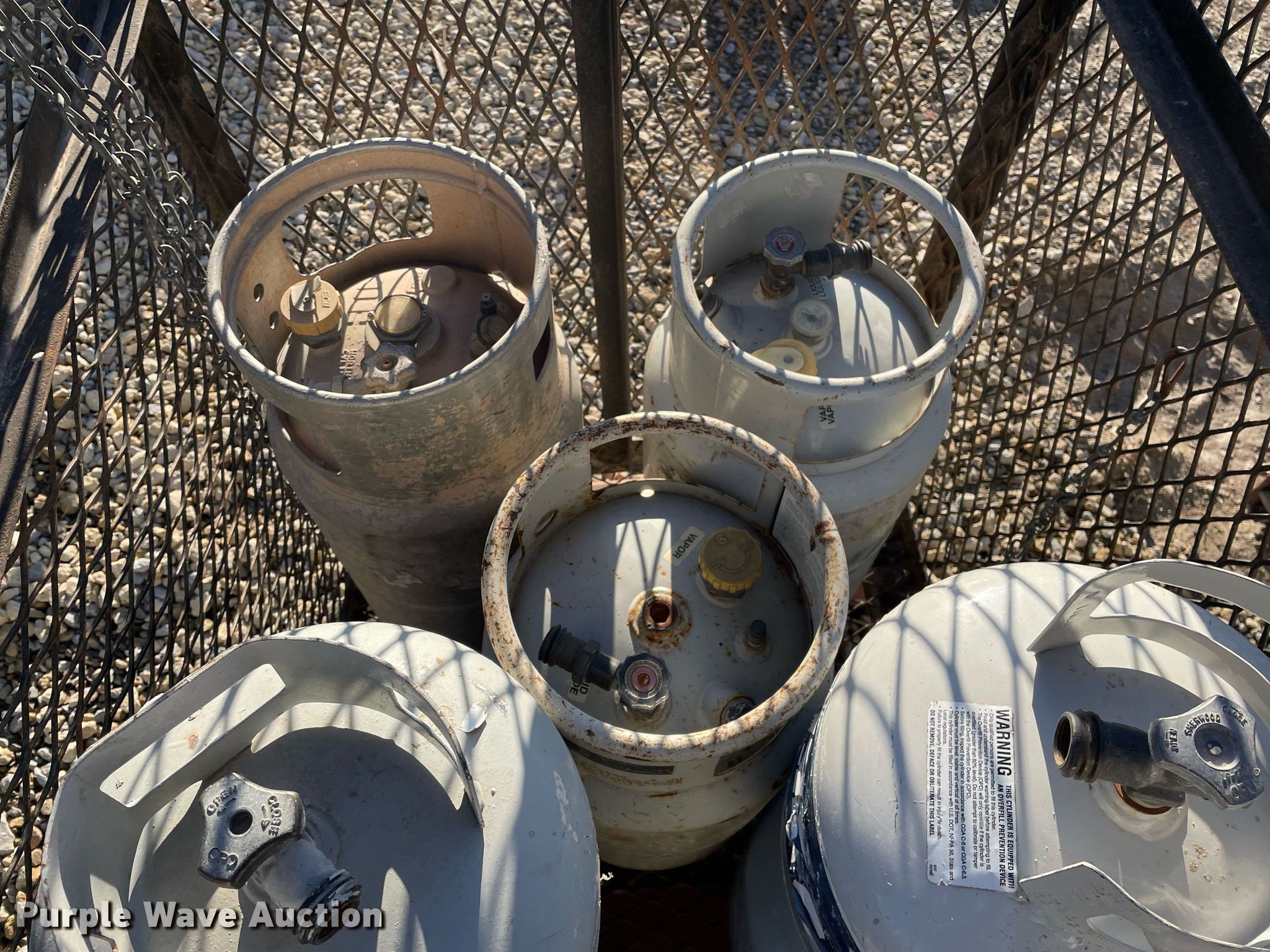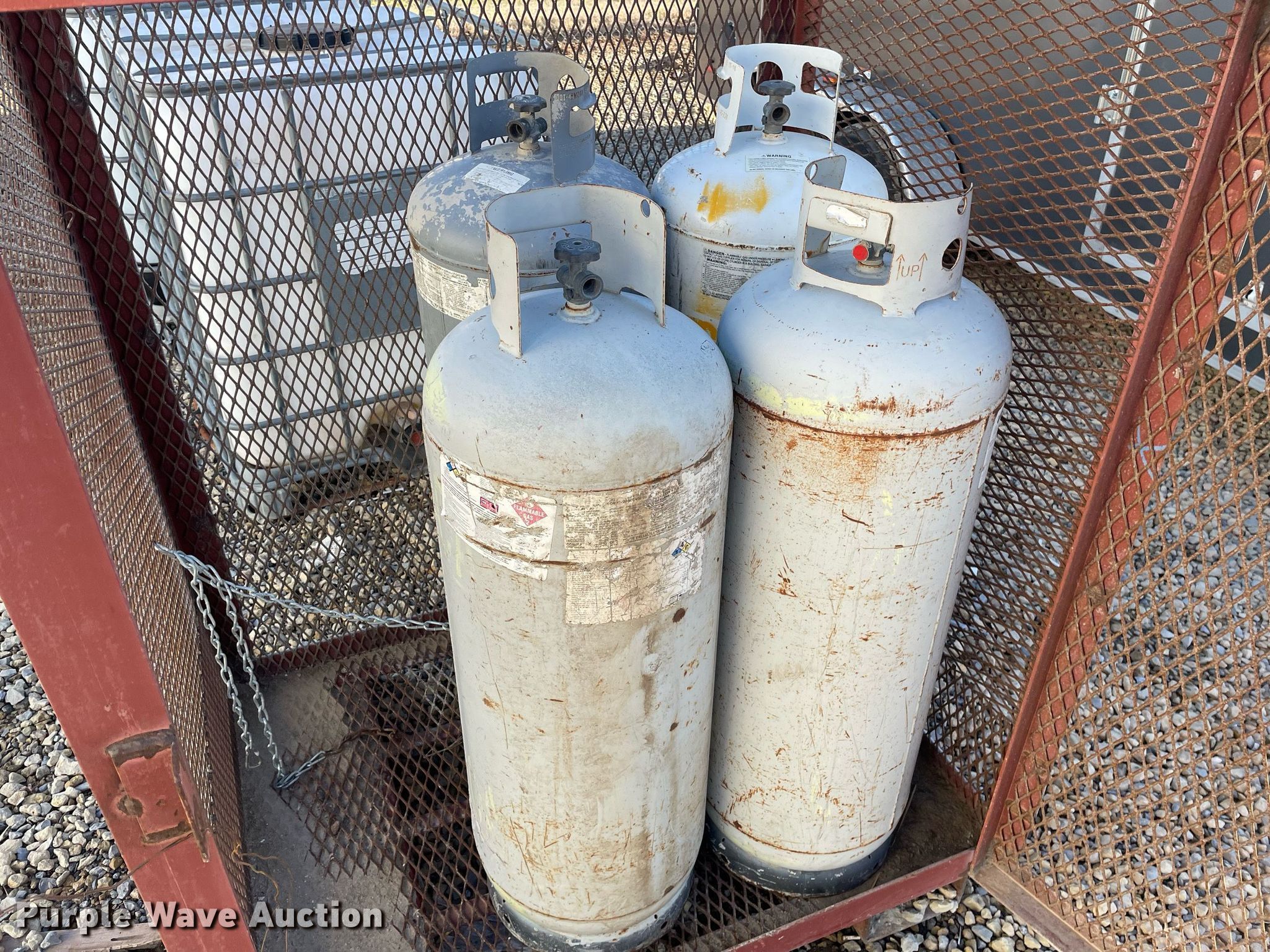 Purple Wave is selling a used Tanks in Kansas. This item is a (11) propane tanks with the following: (4) cages