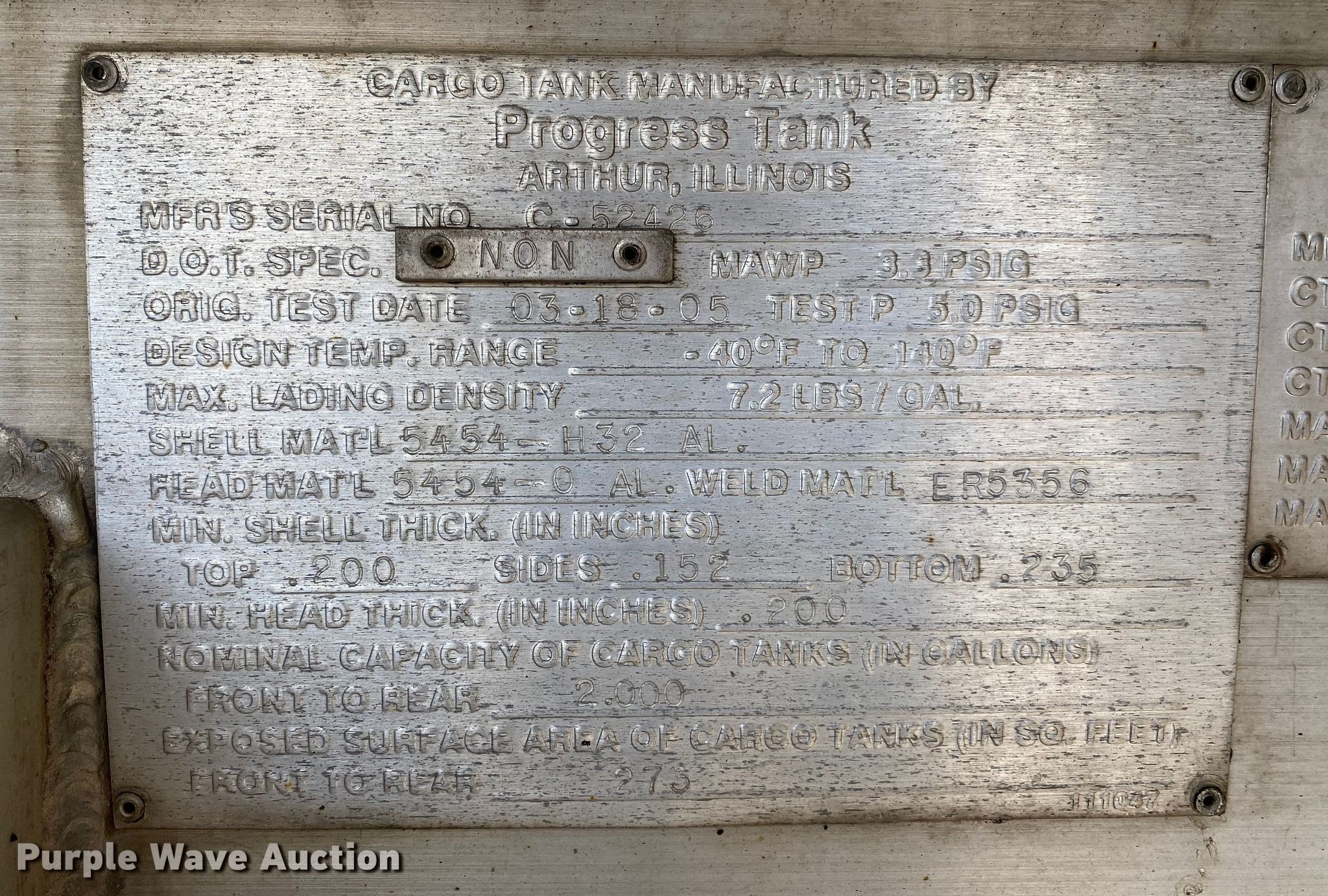 2005 Ford F750 Super Duty fuel truck. Miles: 109,956 on odometer, VIN: 3FRXF75F65V163563. Engine Displacement: 5.9L, Cylinders: 6, Fuel type: Diesel. Transmission Automatic. Chassis Axles: Single, Suspension: Spring, Brakes: Air, PTO, GVWR: 31,000 lbs, Wheelbase: 447". Interior AC, Heat, Cruise control. Features Bed / tank Progress Tank AA90LS, Serial: C-52426, Capacity: 2,000 gallons, 11' 5" L x 94" W, Compartments: 1, Hose reels: 2, Nozzles, Metered pumps: 1. Tires Size: 11R22.5. Oklahoma title. Title distribution may be delayed up to 14 days from verification of funds. 15107 North 137th East Avenue. Collinsville, OK 74021