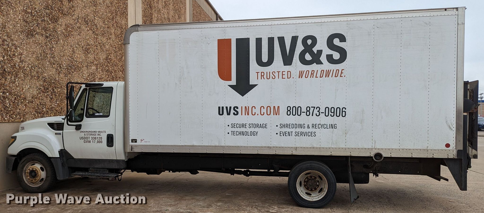 2015 International TerraStar box truck. Miles: 183,698 on odometer, VIN: 1HTJSSKK6FH662428. Engine International MaxxForce 7, Displacement: 6.4L, Cylinders: 8, Fuel type: Diesel. Transmission Automatic. Chassis Axles: Single, Suspension: Spring, Brakes: Hydraulic, GVWR: 17,000 lbs. Interior AC, Heat, Cruise control. Features Box bed Brown Industries 491712181, Serial: 26173, 18.5' L x 90" W x 90" H, Floor: Wood, End gate lift Tommy Gate.. Tires Size: 225/70R19.5. Notes Non-operational engine, Non-operational unit. Oklahoma title. Title distribution may be delayed up to 14 days from verification of funds. UV&S Inc.. 5621 West Reno Avenue. Oklahoma City, OK 73127