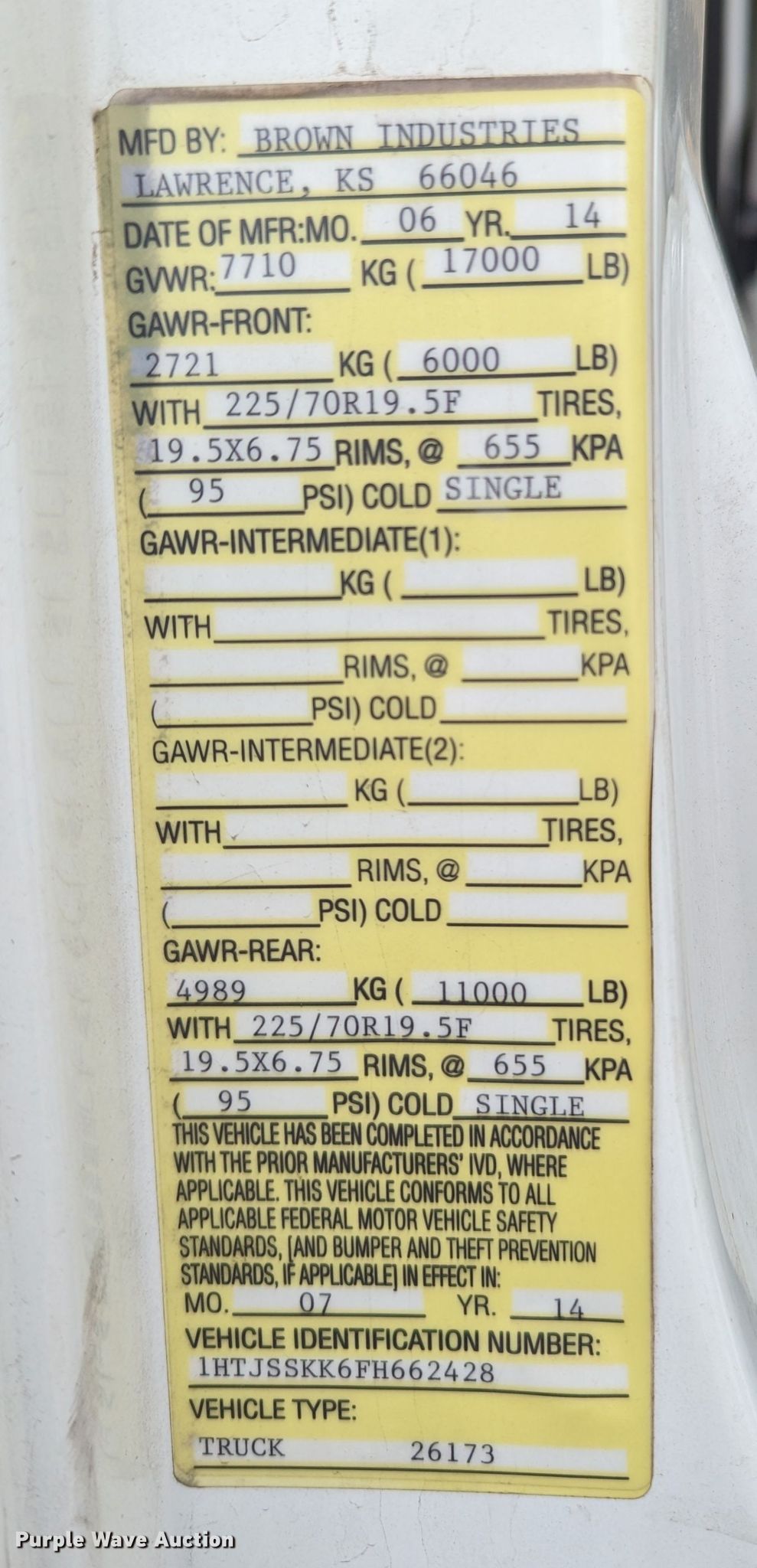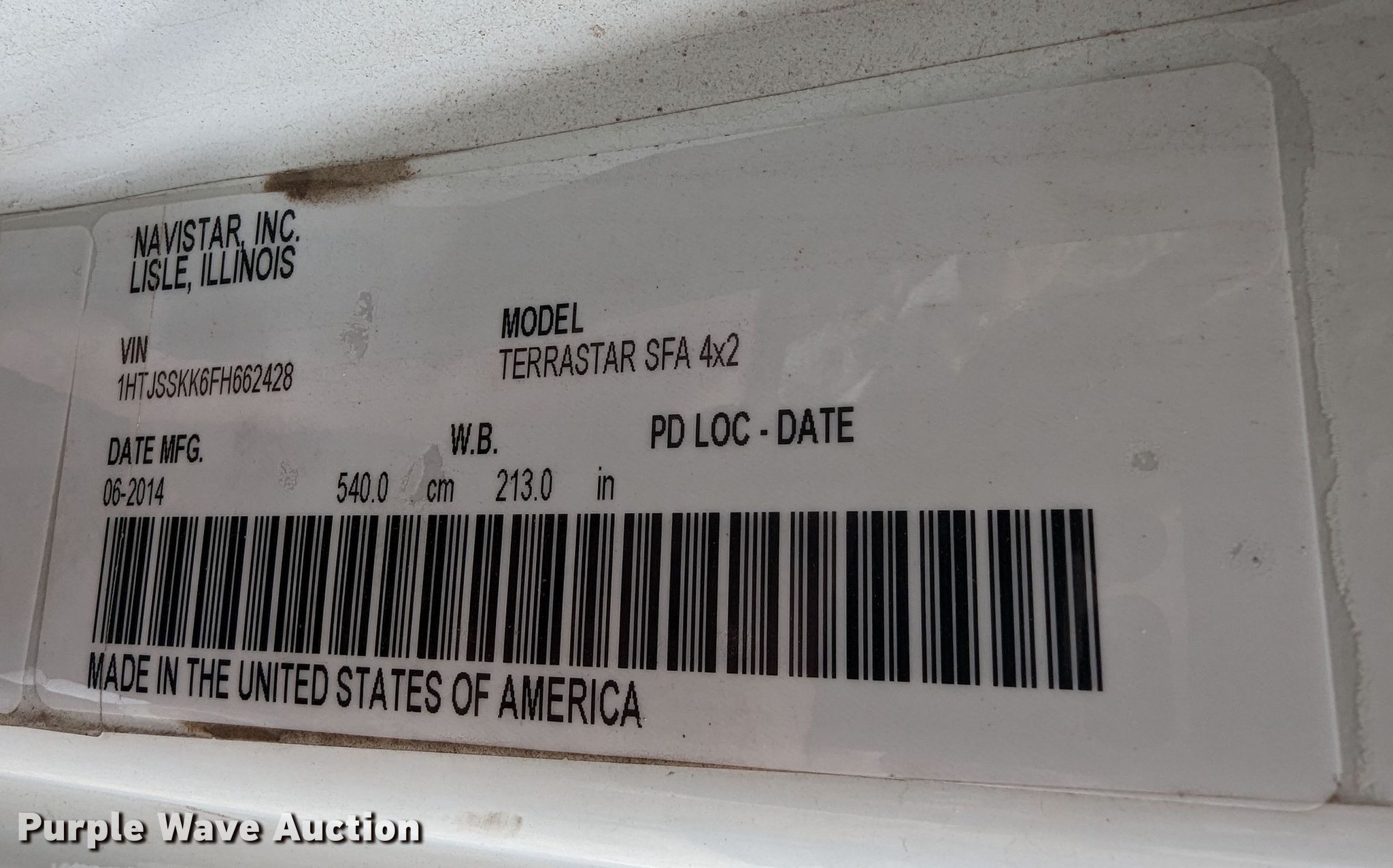- VIN: 1HTJSSKK6FH662428
