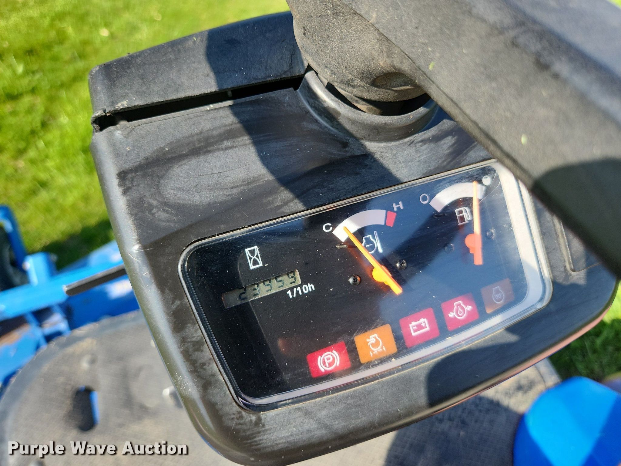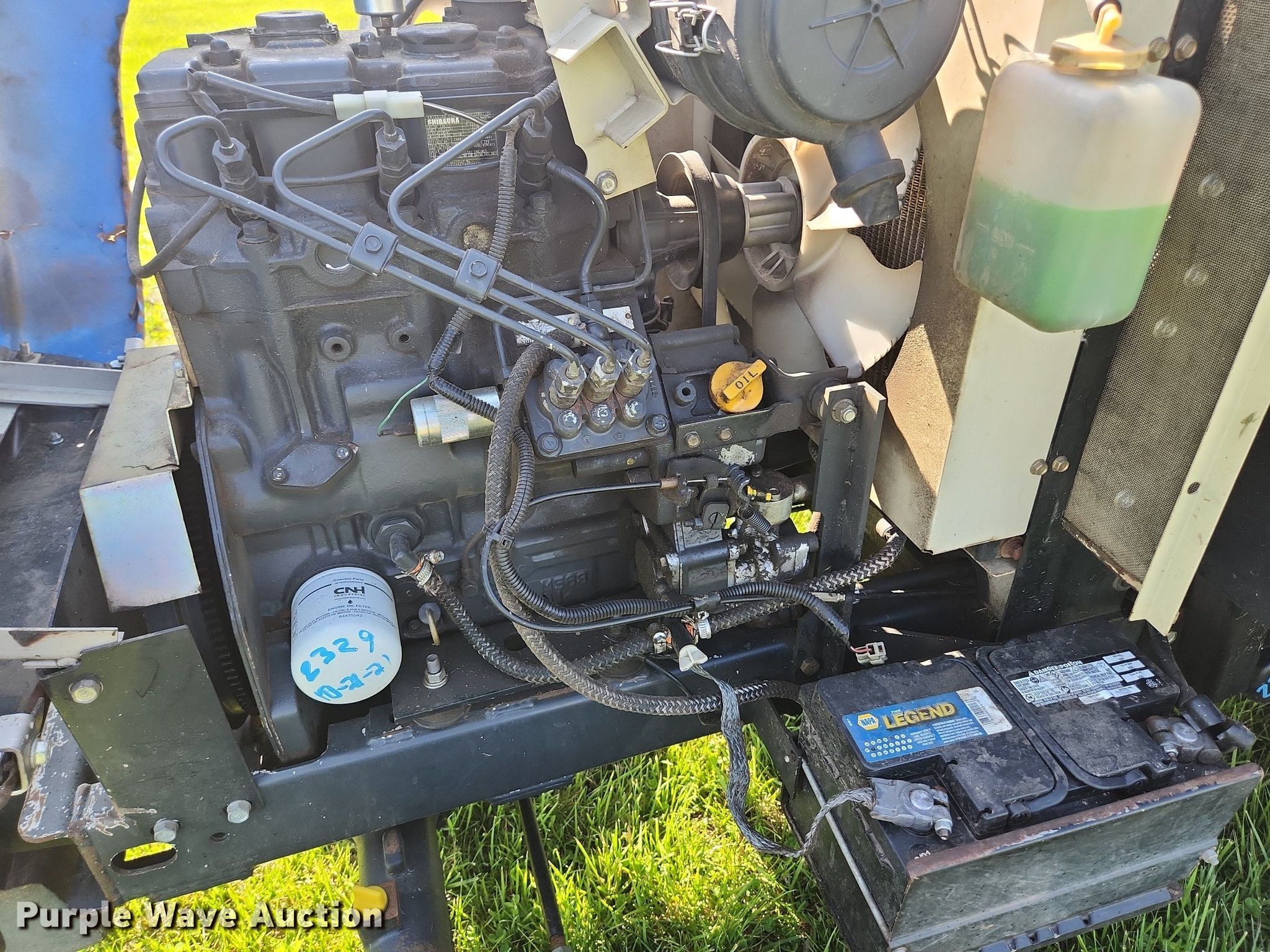 New Holland G6035 lawn mower. Hours: 2,396 on meter, Cutting width: 72", Serial: Y9WJF0081. Engine Shibaura , Cylinders: 3, Fuel type: Diesel, HP: 36. Transmission Hydrostatic, Speed: 2. Chassis Four wheel drive, PTO. Operators station OROPS. Features Counter weights, Mower deck Width: 72", Hydraulic front deck lift, Differential lock. Tires Front: 14x13.00-12, Rear: 20x8.00-10. 120 Main Street. Pocahontas, IL 62275