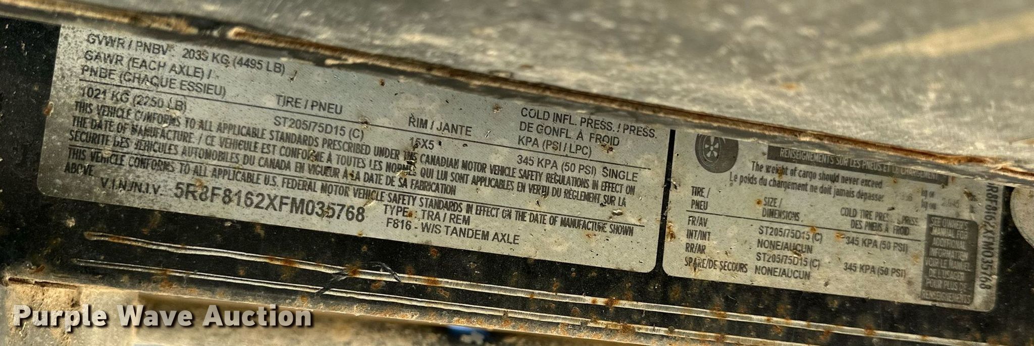 Purple Wave is selling a used Car or Utility Trailer in Kansas. This item is a 2015 Maxey Trailers utility trailer with the following: VIN: 5R8F8162XFM035768