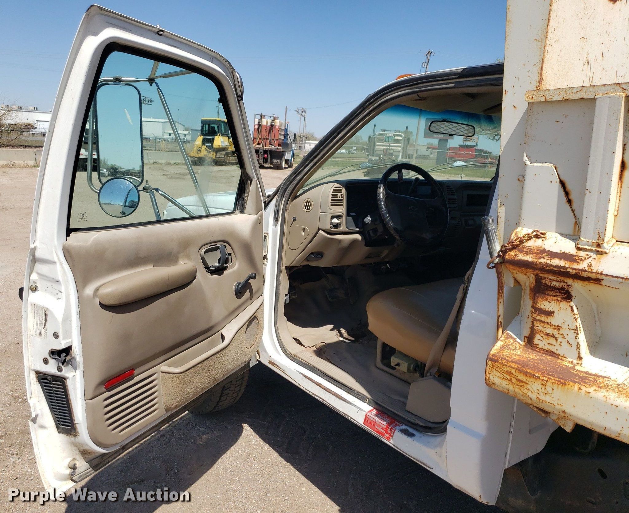 2000 Chevrolet C3500 dump bed pickup truck. VIN: 1GBKC34J2YF444272, Unit #: 04.095. Engine Displacement: 7.4L V8 OHV, Cylinders: 8, Fuel type: Gas. Transmission Automatic. Interior AC, Heat. Tires Size: 225/70R19.5. Notes Non-operational engine , Non-operational unit. Kansas title. Title distribution may be delayed up to 14 days from verification of funds. Sherwood Construction Company. 3219 W May St. Wichita, KS 67213