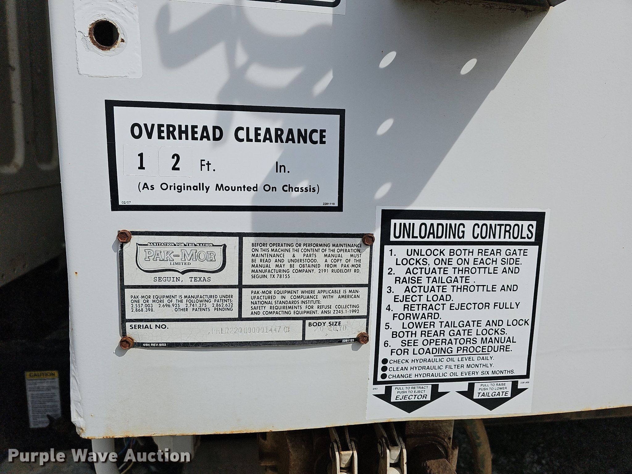 2015 Freightliner Business Class M2 refuse truck. Miles: Unknown, VIN: 1FVACXCY3FHGP7342. Engine Cummins ISL9, Displacement: 8.9L, Cylinders: 6, Fuel type: Diesel. Transmission Automatic. Chassis Axles: Single, Suspension: Spring, Brakes: Air, PTO. Interior AC, Heat, Heated mirrors, Cruise control, Backup camera. Features Refuse bed Pak-Mor, Serial: PMLR220B0000144703, Capacity: 20 cu.yd., Load: Rear. Tires Size: 315/80R22.5. Notes Possible electrical issues, Non-operational unit. Arkansas title. Seller is a Missouri licensed motor vehicle dealer. Title will be assigned and distributed by the dealer. Please contact the seller for distribution questions. M & M Wrecker Service of SWMO, LLC. 4951 S Garrison Ave. Carthage, MO 64836