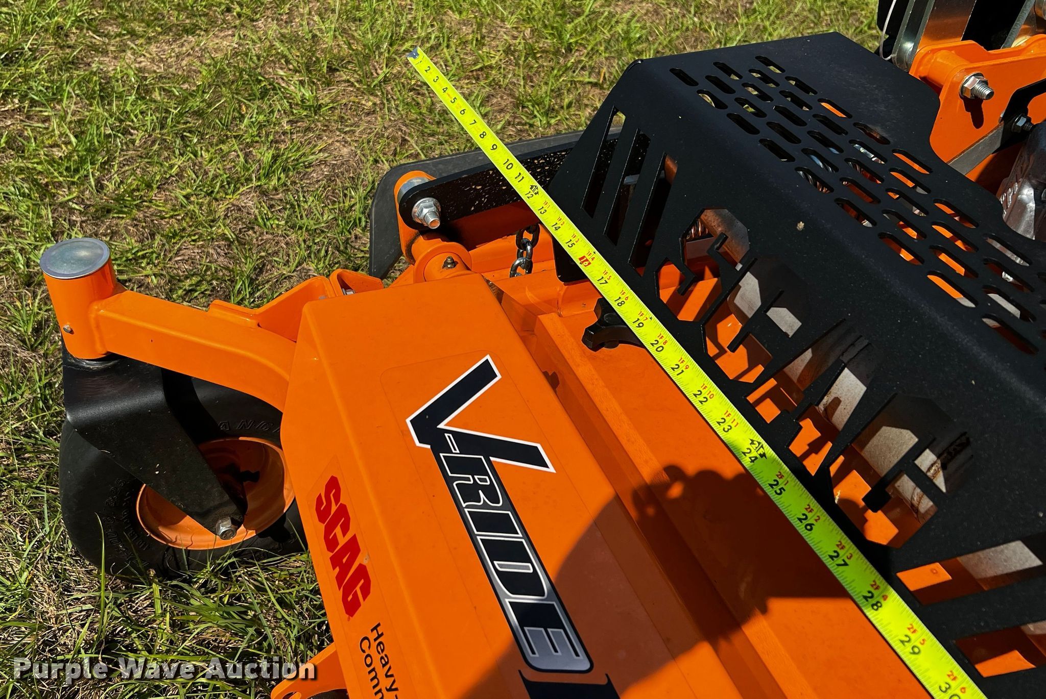 2022 Scag SVRII-48V-22FX ZTR lawn mower. Hours: 6 on meter, Cutting width: 48", Serial: S4101726. Engine Kawasaki FX691V, Serial: FX691VC12947, Displacement: 726 cc, Cylinders: 2, Fuel type: Gas, HP: 22. Transmission Hydrostatic. Features Stand on. Tires Front: 13x5.00-6/3.25, Rear: 24x9.50-12. Kubota Tractor Corp. 25974 Okeechobee Road. Fort Pierce, FL 34945