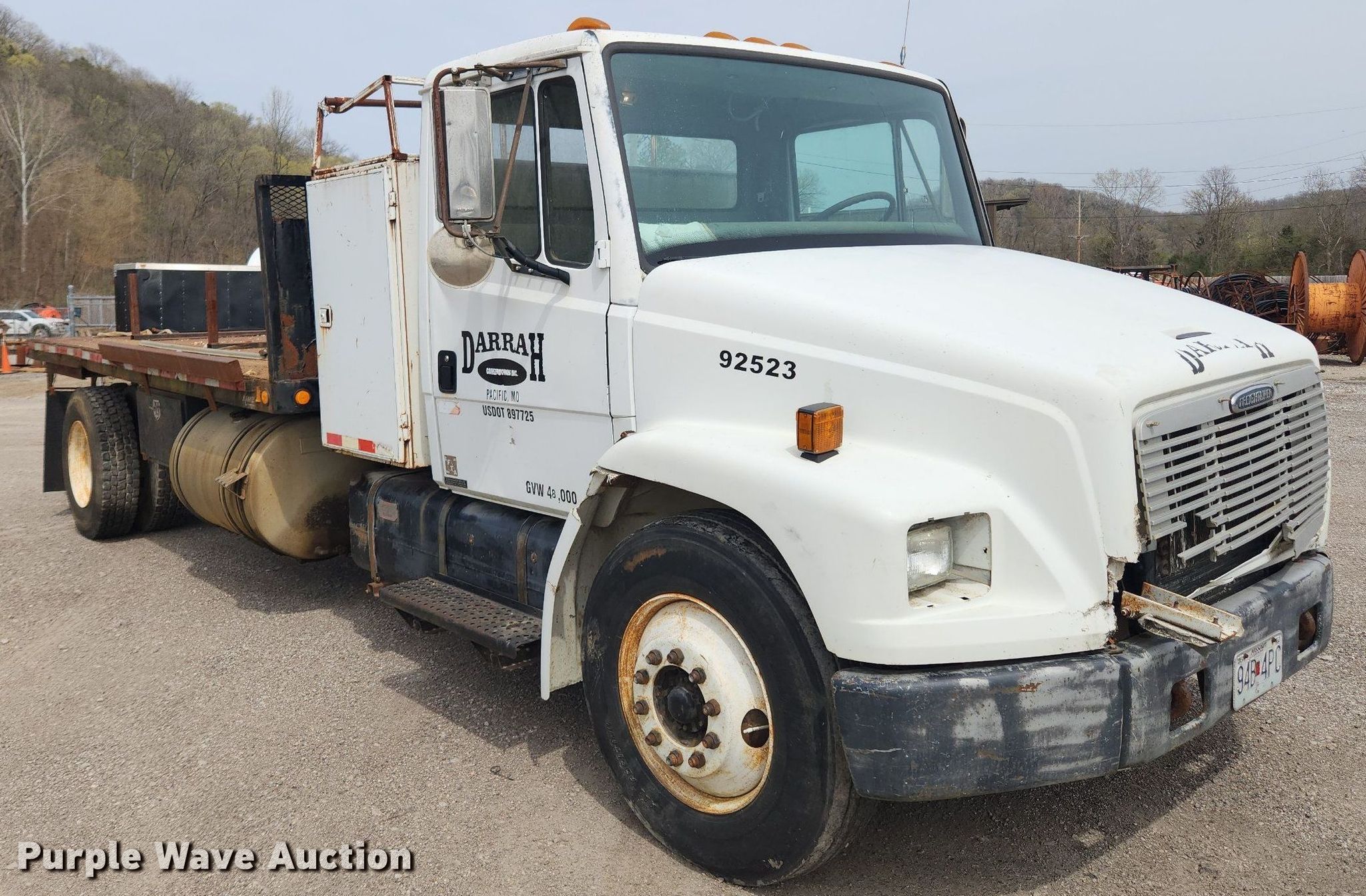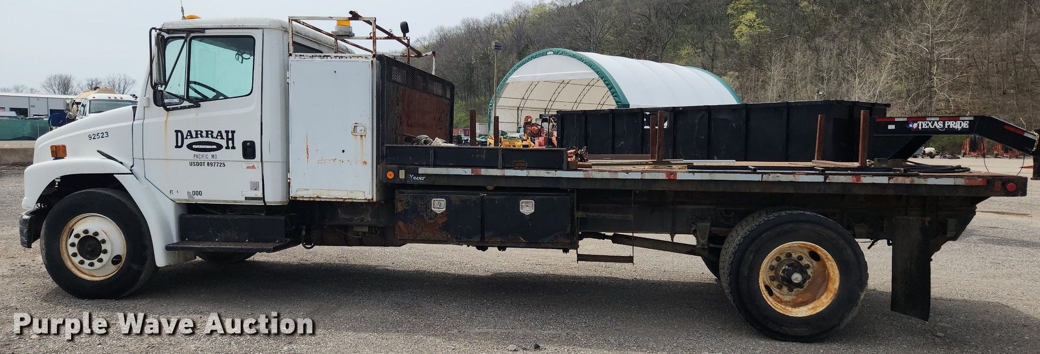 Purple Wave is selling a used Flat Bed Truck in Missouri. This item is a 1992 Freightliner FL70 flatbed truck with the following: Miles: 156,889 on odometer, VIN: 1FV6HFAA8NL483597