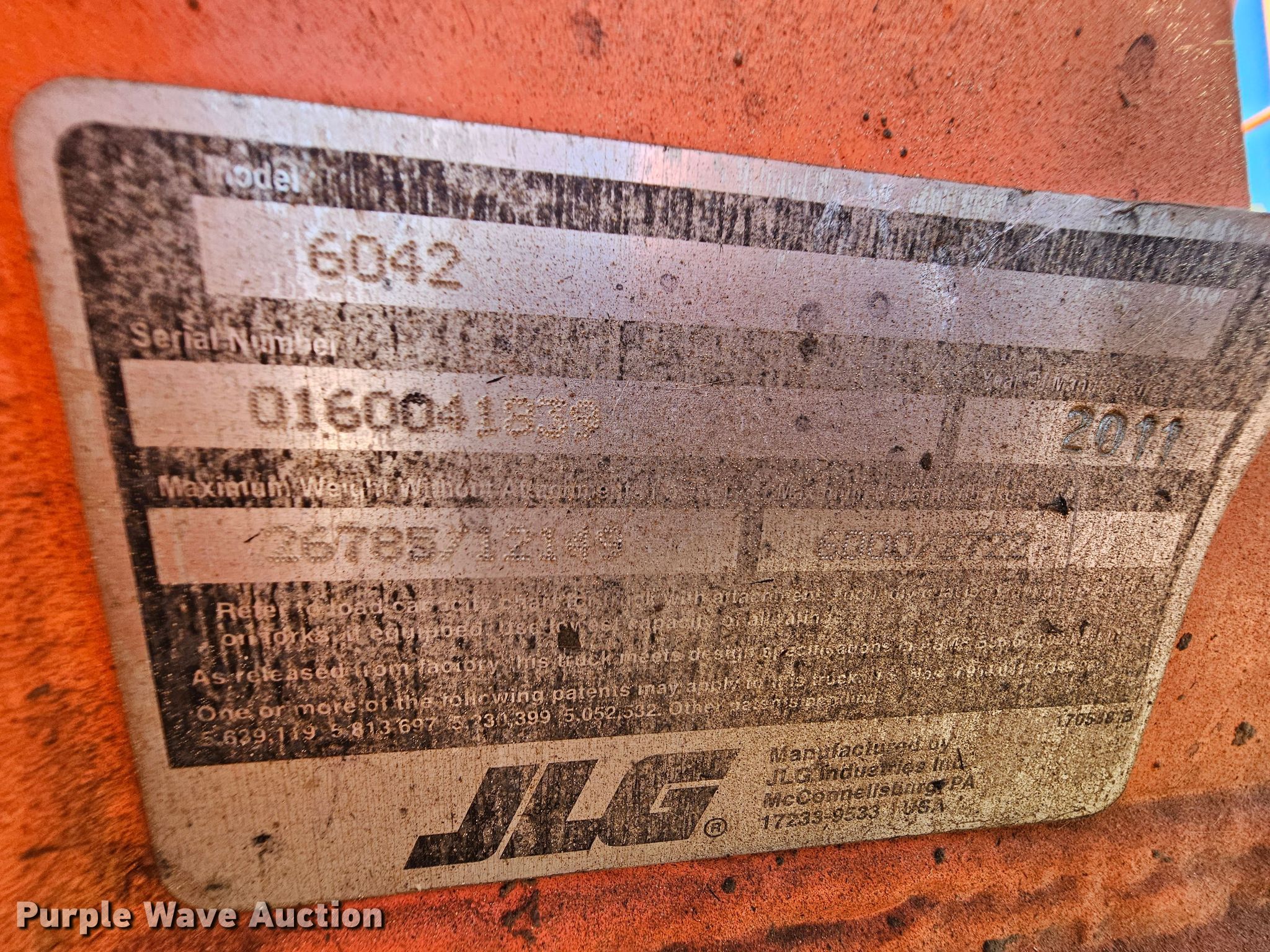 Purple Wave is selling a used Telehandler in Kansas. This item is a 2011 JLG 6042 telehandler with the following: Hours: 668 on meter, Serial: 0160041839, Unit #: 22122