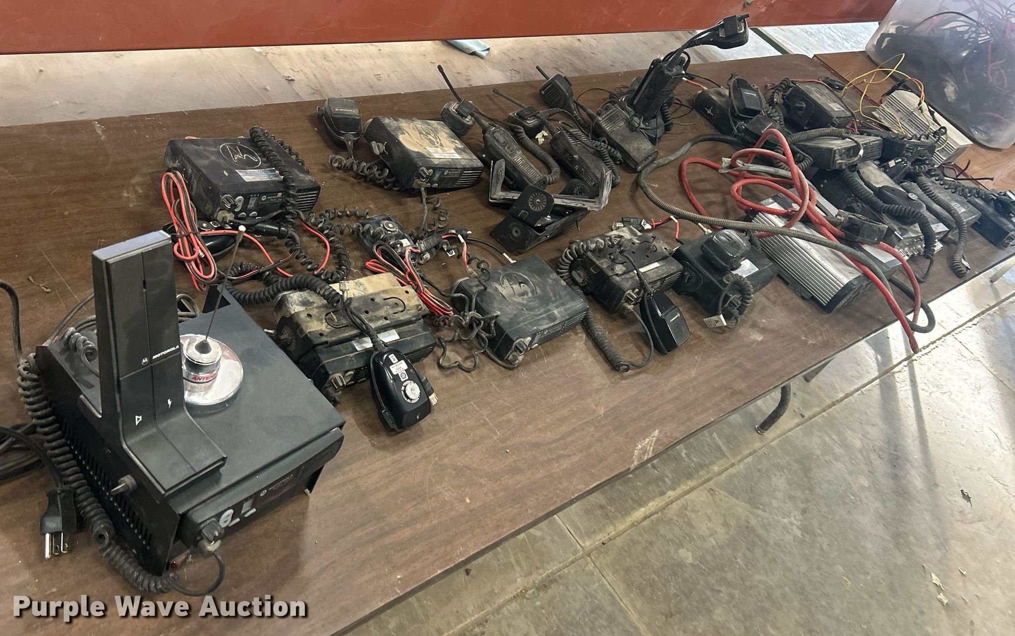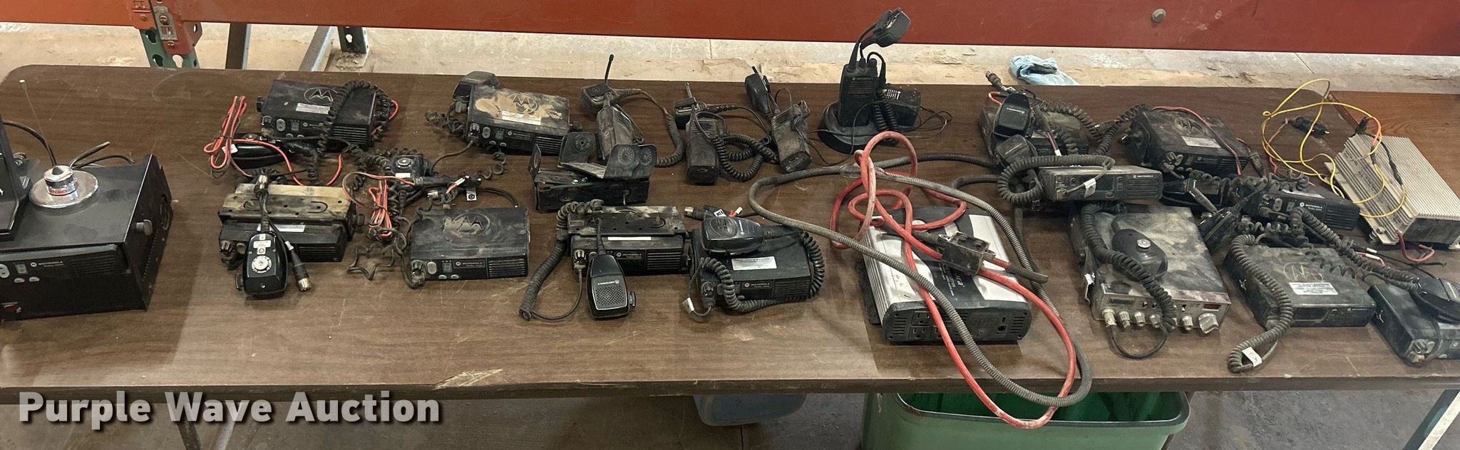 Purple Wave is selling a used Electronics in Iowa. This item is a Electronics with the following: (11) Motorola Radius CM200 two-way radios, (2) Motorola Radius CM200D two-way radios, (4) Motorola Radius CP200 two-way radios, Cobra 29 NW LTD Classic two-way radio, Cobra inverter, 3,000 W peak, Wires, Microphones, Cables