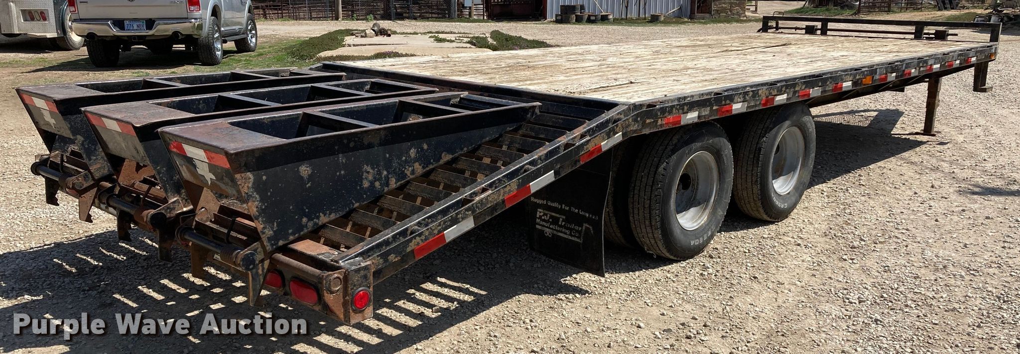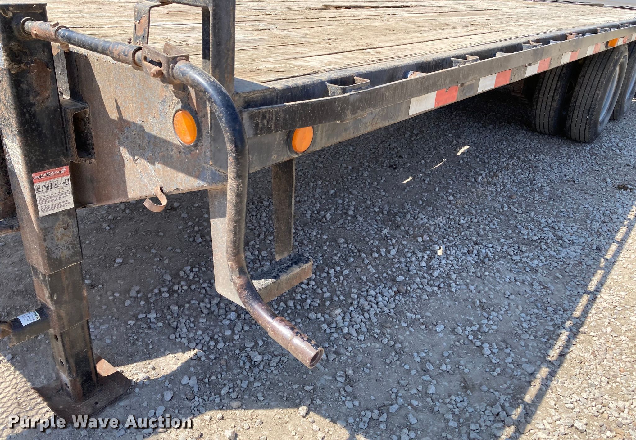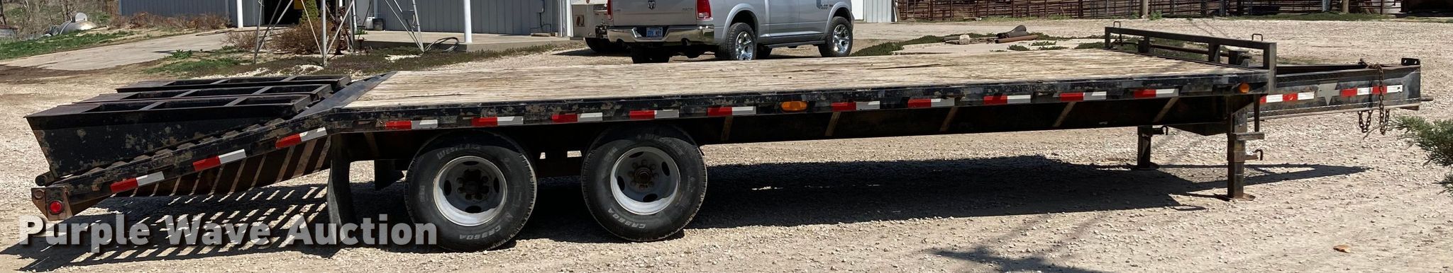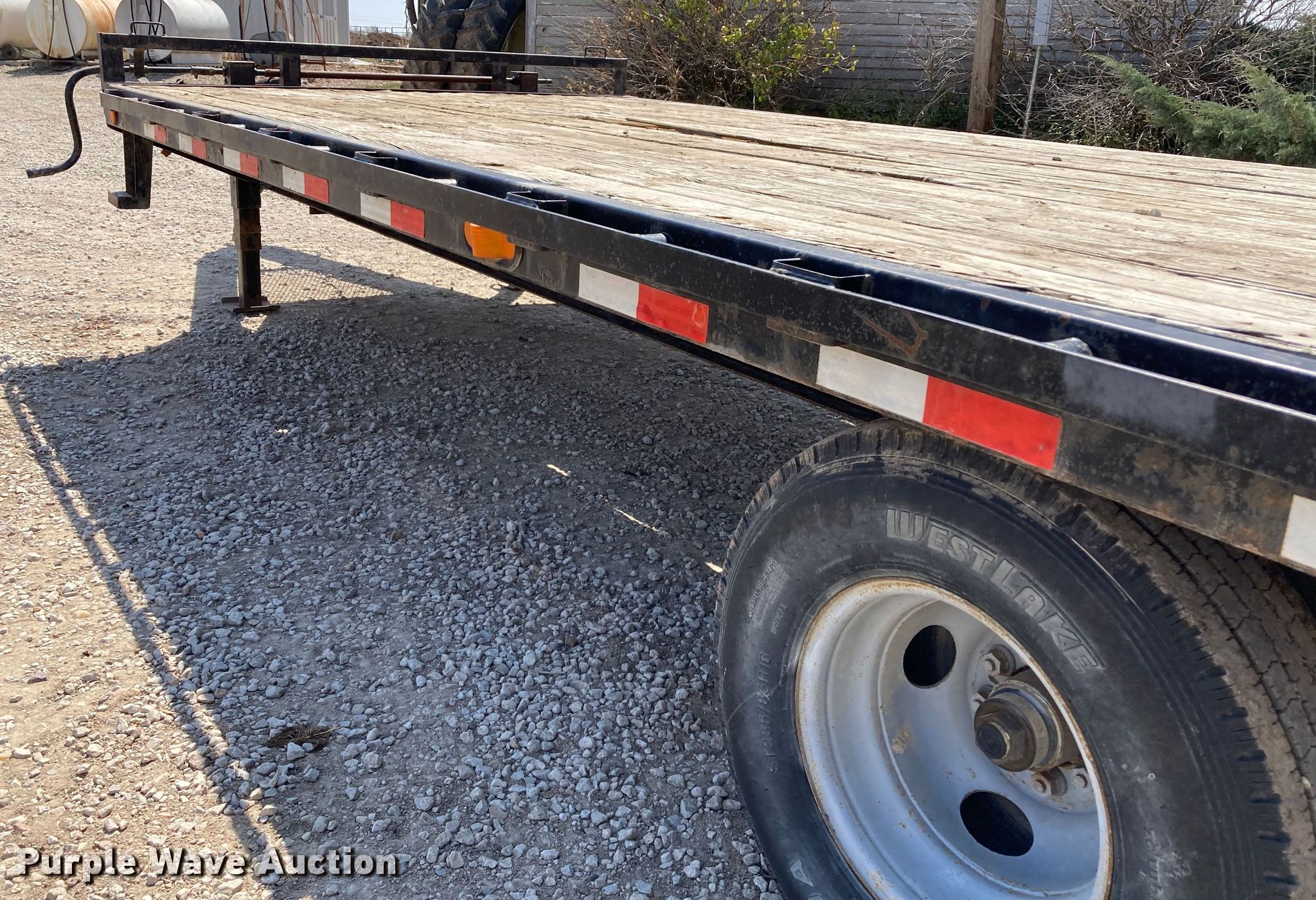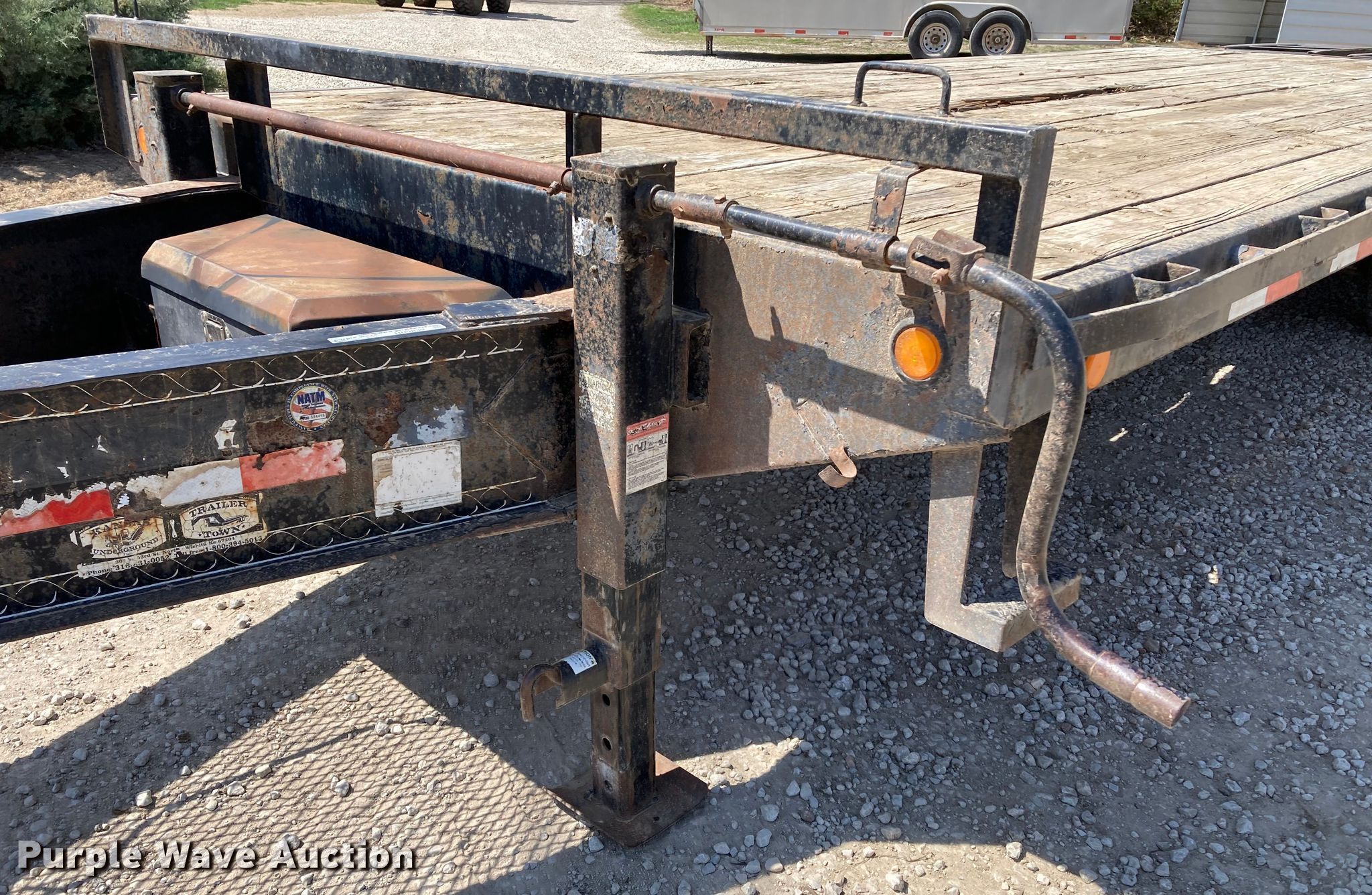 2007 PJ equipment trailer. VIN: 4P5FD252271094915. Dimensions Overall: 32' L x 102" W, Deck: 19' 8" L x 97" W, Tail length: 5' 6", Ramps: Manual. Features Deck type: Wood. Chassis Hitch: Pintle, Landing gear: Dual, Suspension: Spring, Brakes: Electric, Axles: Tandem. Tires Steel wheels, Size: 235/85R16. Kansas title. Title distribution may be delayed up to 14 days from verification of funds. Hope, KS 67451
