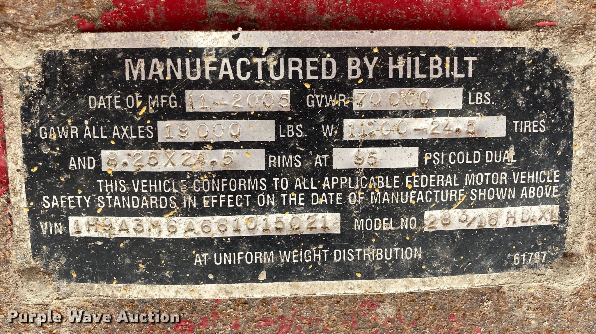 Purple Wave is selling a used End Dump Rock Trailer in Kansas. This item is a 2006 Hilbilt 283/16 HD XL end dump trailer with the following: VIN: 1H9A3M6A661015021