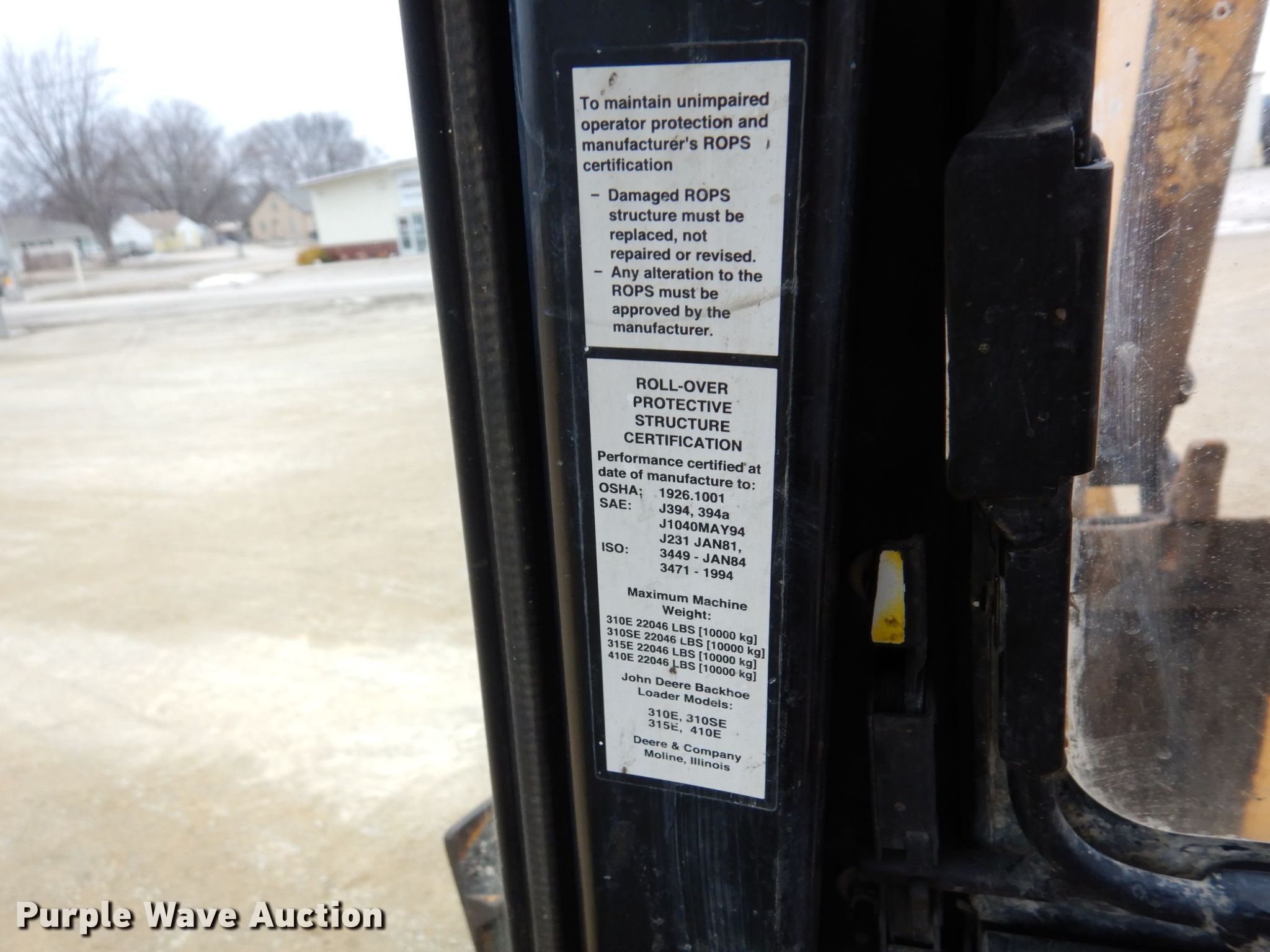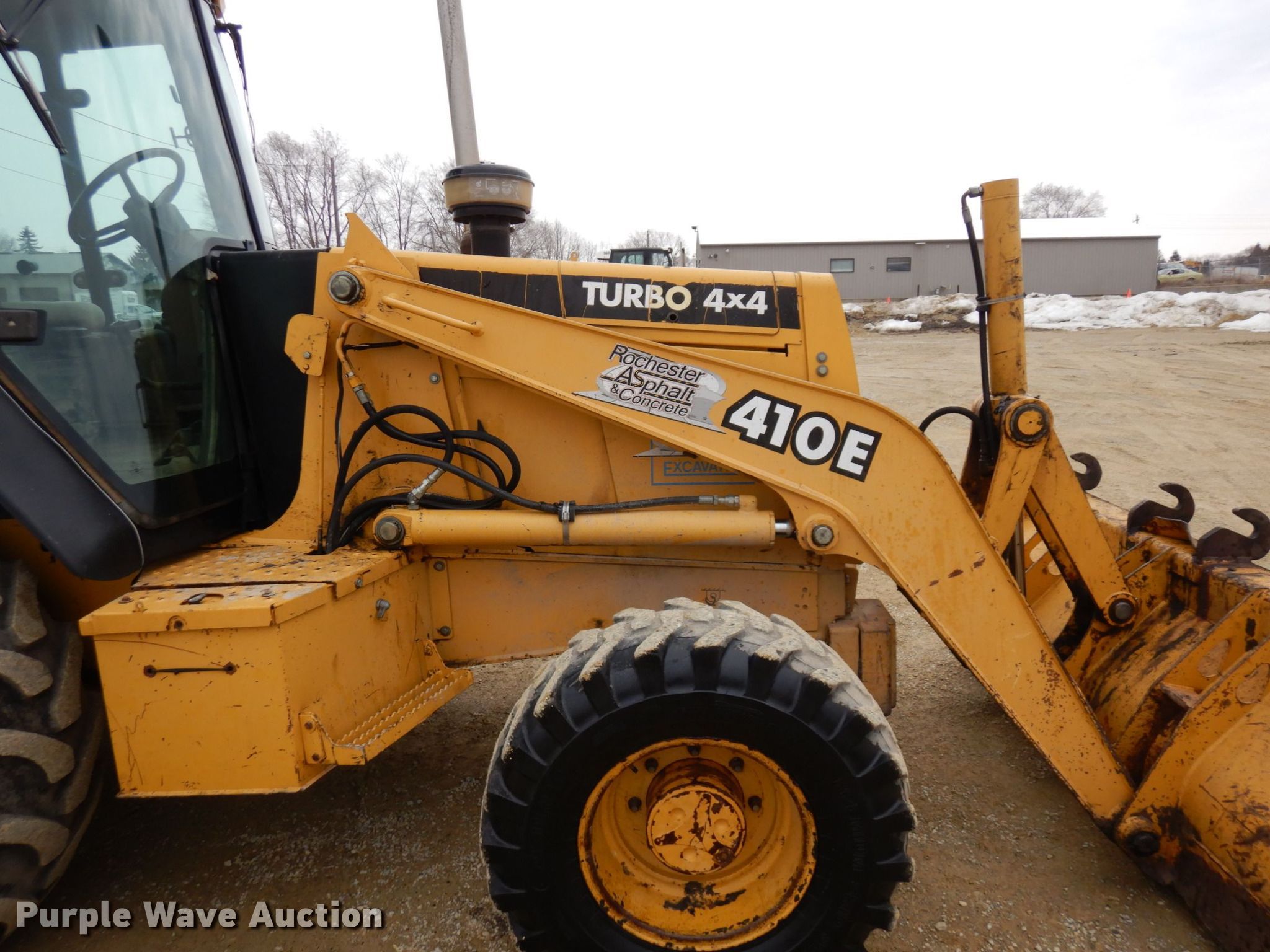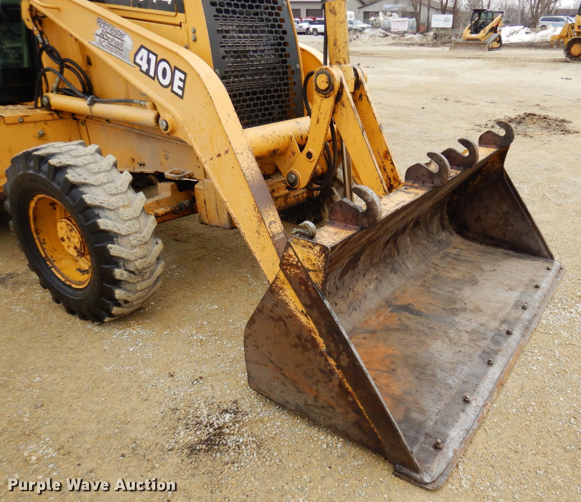 2000 John Deere 410E backhoe. Hours: 2,683 on meter, Serial: TC410EX889186. Engine John Deere 4045TT053, Displacement: 4.5L, Cylinders: 4, Fuel type: Diesel, HP: 98. Transmission Shuttle shift, 4F - 4R. Chassis Four wheel drive. Operators station EROPS, Heat, Backhoe controls: Wobble stick / two stick. Features Loader Bucket Width: 85", Cutting edge: Bolt-on, Backhoe Quick coupler: Manual, Thumb: Manual, Bucket Width: 28.5", Teeth: 5.. Tires Front: 12.5-80R18NHS, Rear: 19.5L-24. Notes Glass cracked, Glass broken. Rochester Asphalt Partial Retirement Sale. 1832 3rd Avenue Southeast. Rochester, MN 55904