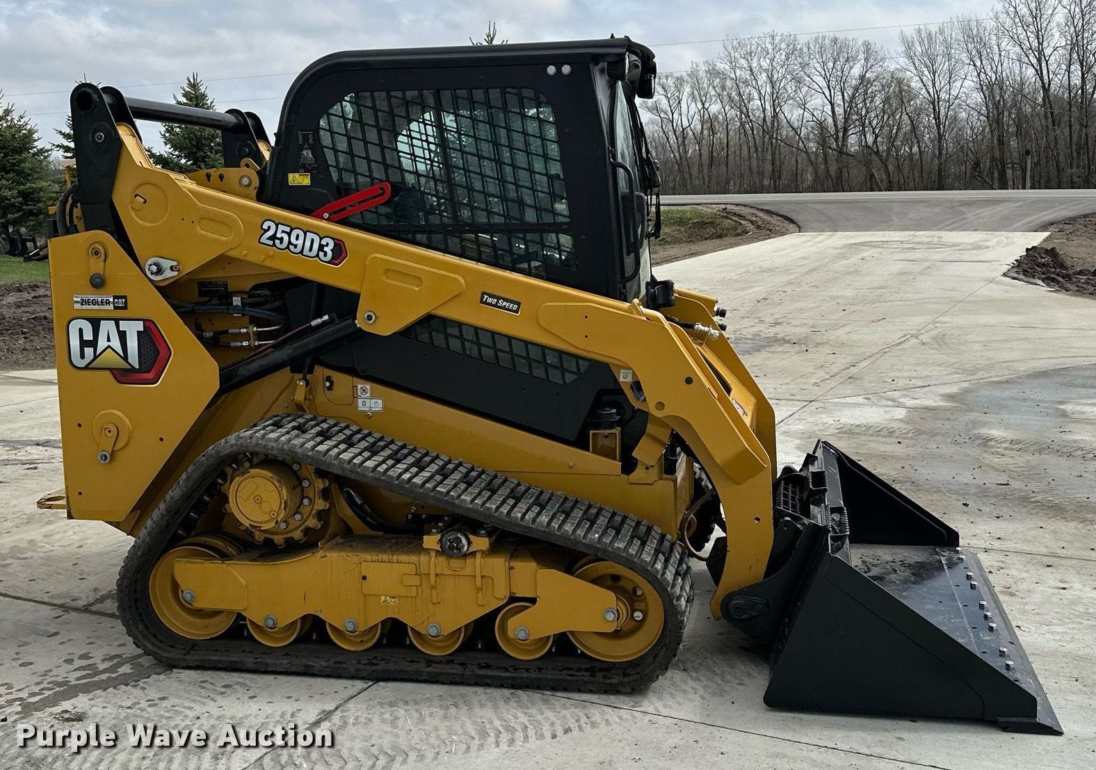 This 2022 Caterpillar 259D3 tracked skid steer loader will sell to the highest bidder regardless of price.