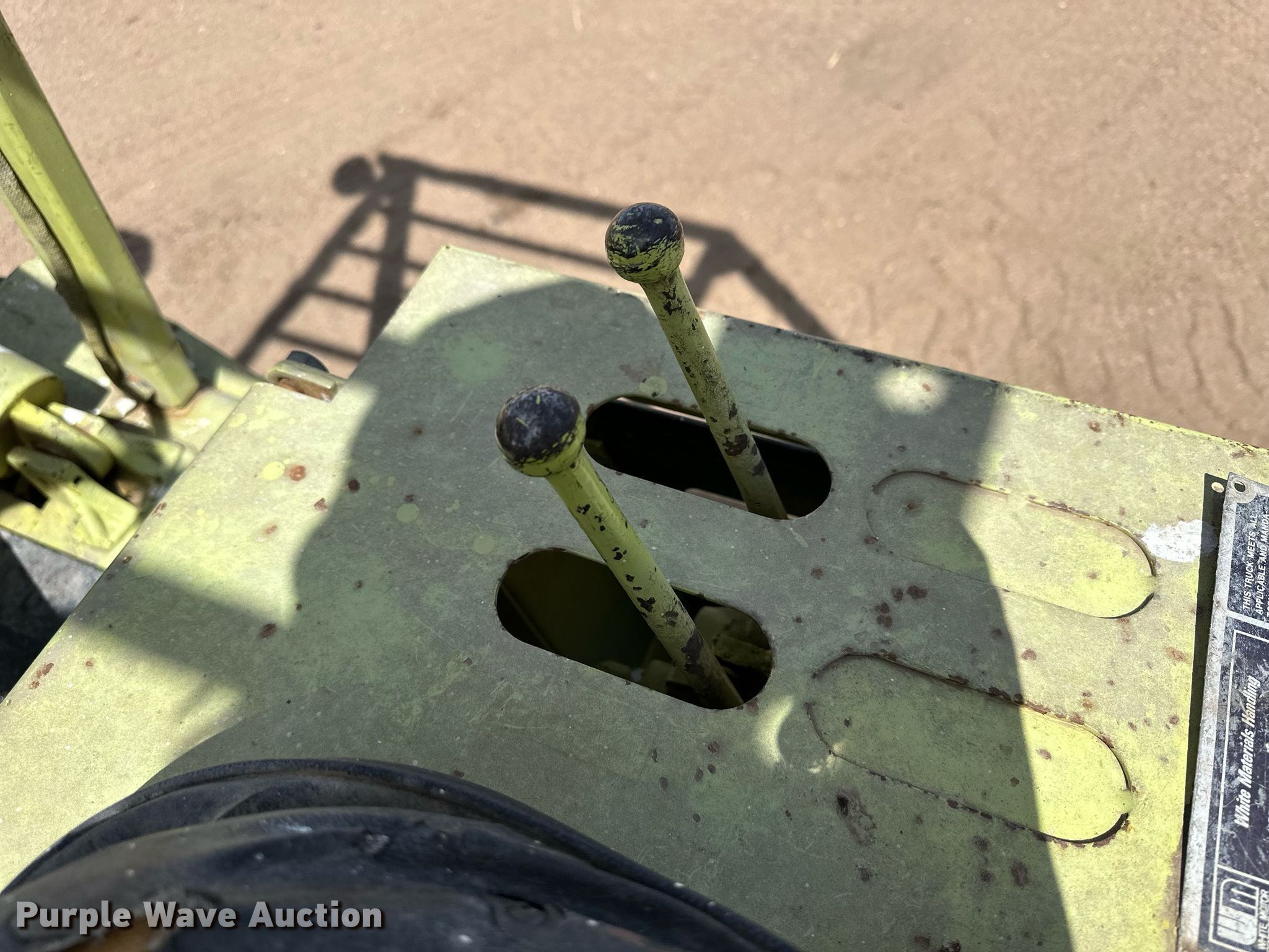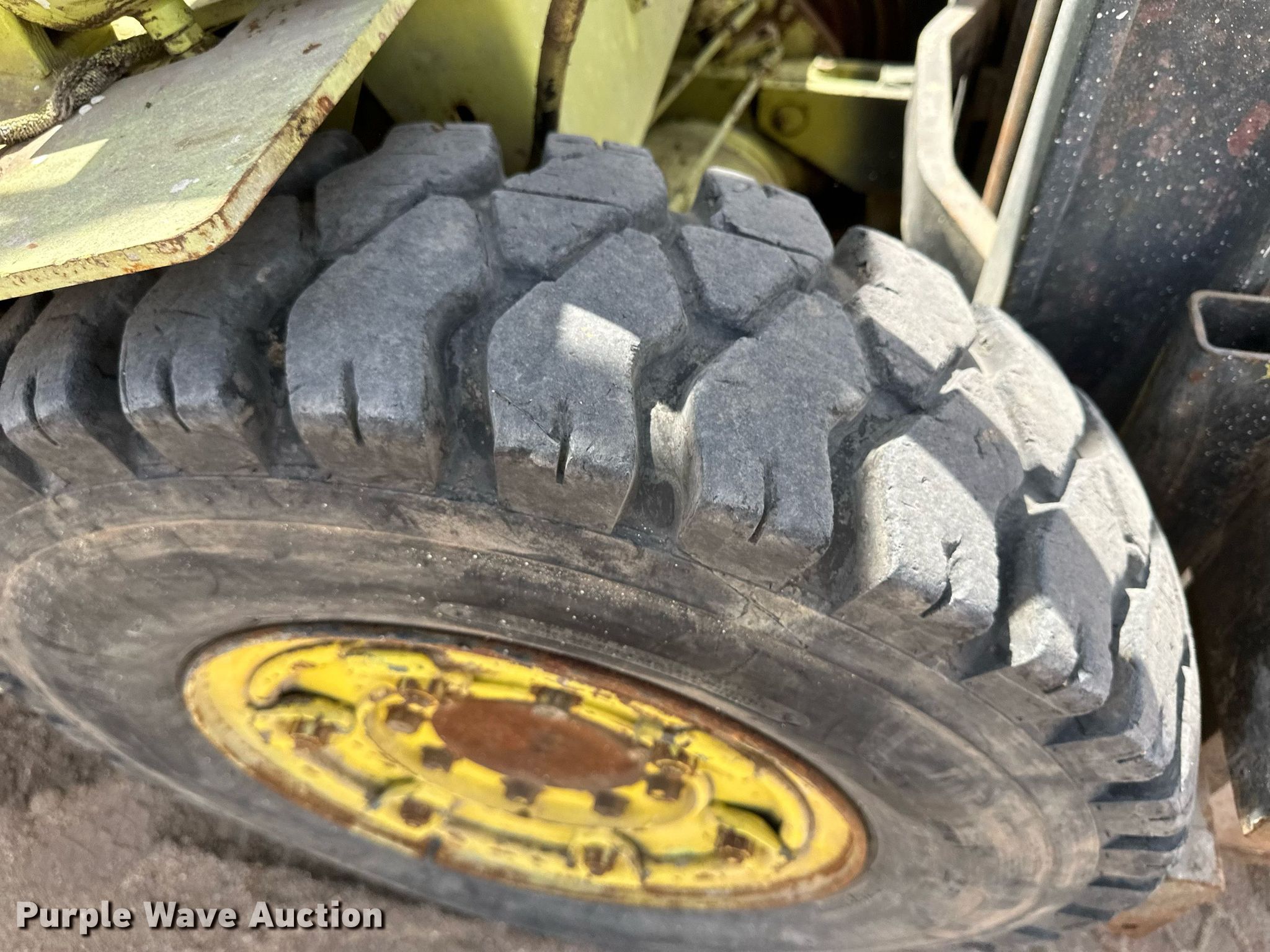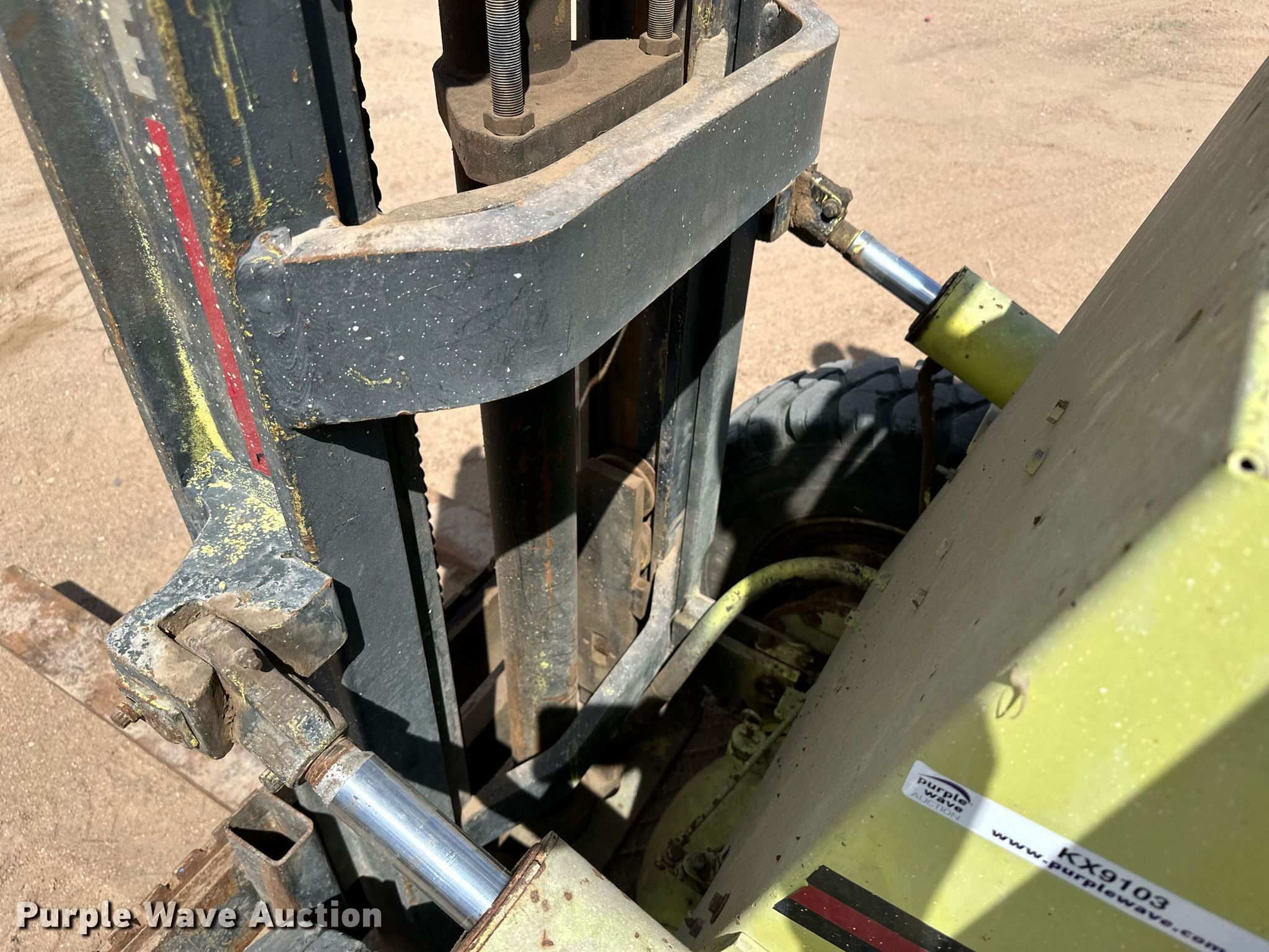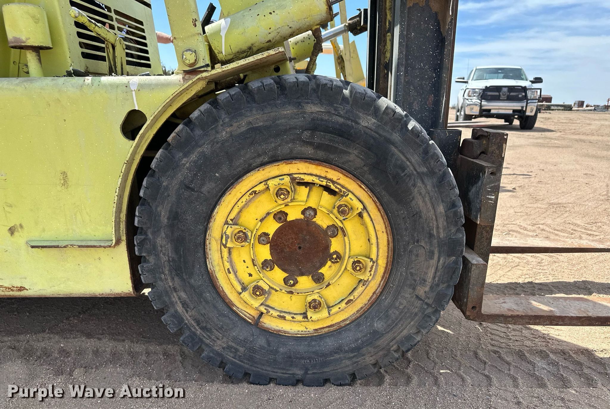 White MY9408 forklift. Hours: 3,167 on meter, Serial: 6400287. Engine Chrysler, Cylinders: 6, Fuel type: Gas. Transmission Powershift. Operators station Canopy. Features Mast stages: 2, Mast tilt, Fork length: 40". Tires Front: 7.50-15, Rear: 6.90/6.00-6. 1587 Cottonwood. Sublette, KS 67877