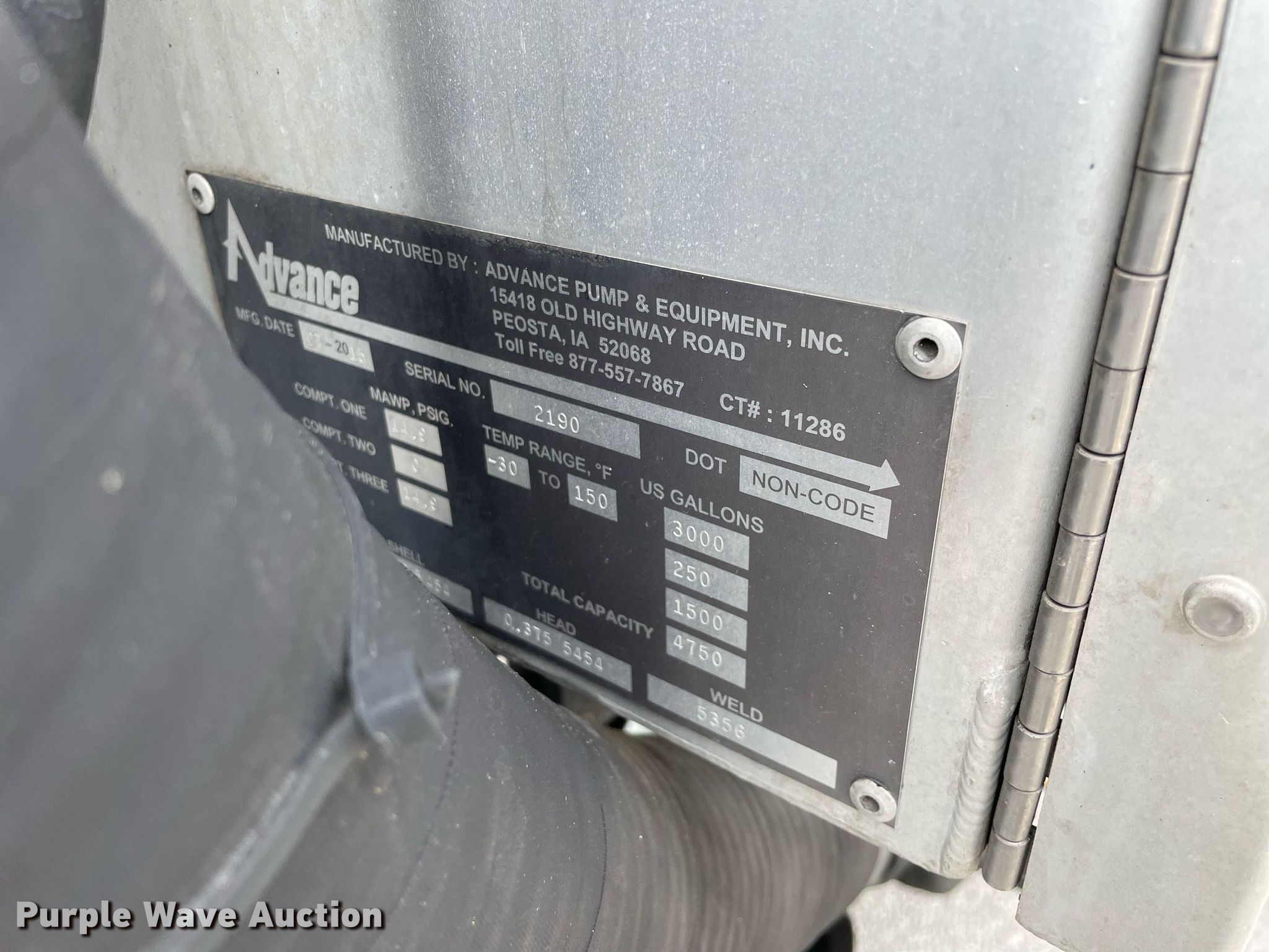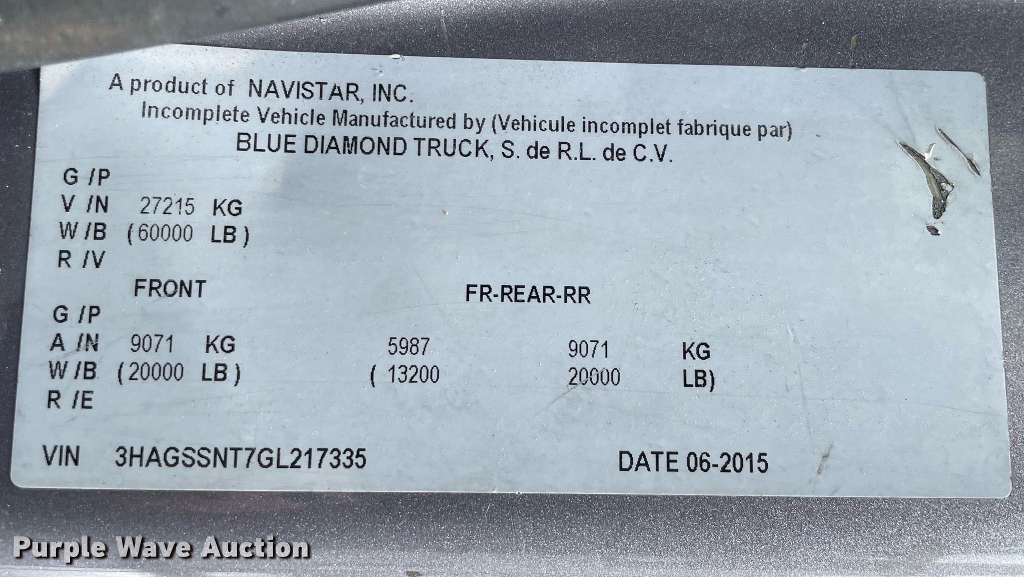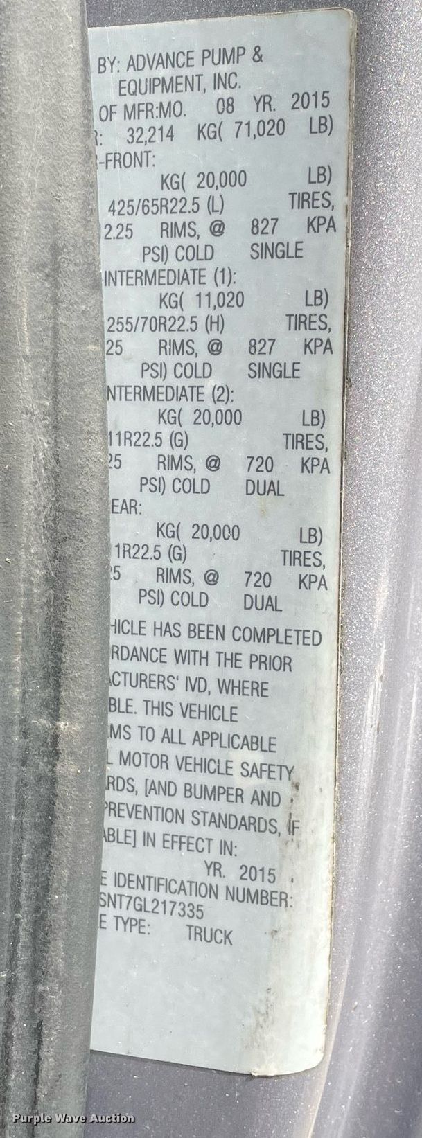 2016 International 7600 vacuum truck. Miles: 327,099 on odometer, Hours: 18,739 on meter, VIN: 3HAGSSNT7GL217335, Unit #: 610016. Engine International A410, Displacement: 12.4L, Cylinders: 6, Fuel type: Diesel. Transmission Eaton Fuller Ultrashift , Automatic. Chassis Axles: Triple, Pusher axle, Suspension: Air, Brakes: Air, PTO, GVWR: 71,020 lbs. Interior AC, Heat, Heated mirrors, Power windows, Cruise control. Features Tank bed 2015 Advance Pump and Equipment, Serial: 2190, Capacity: 4,750 gallons, Top hatches: 3, Rear outlet: 3", Water pump General Pump TS2021, PSI: 3500, GPM: 5, Vacuum pump Challenger 607P-FD, Serial: 51788, Three compartment tank. Tires Front: 425/65R22.5, Rear: 11R22.5, Lift axle: 255/70R22.5. Ohio title. Title distribution may be delayed up to 14 days from verification of funds. Aim NationaLease. 16055 Van Drunen Road. South Holland, IL 60473