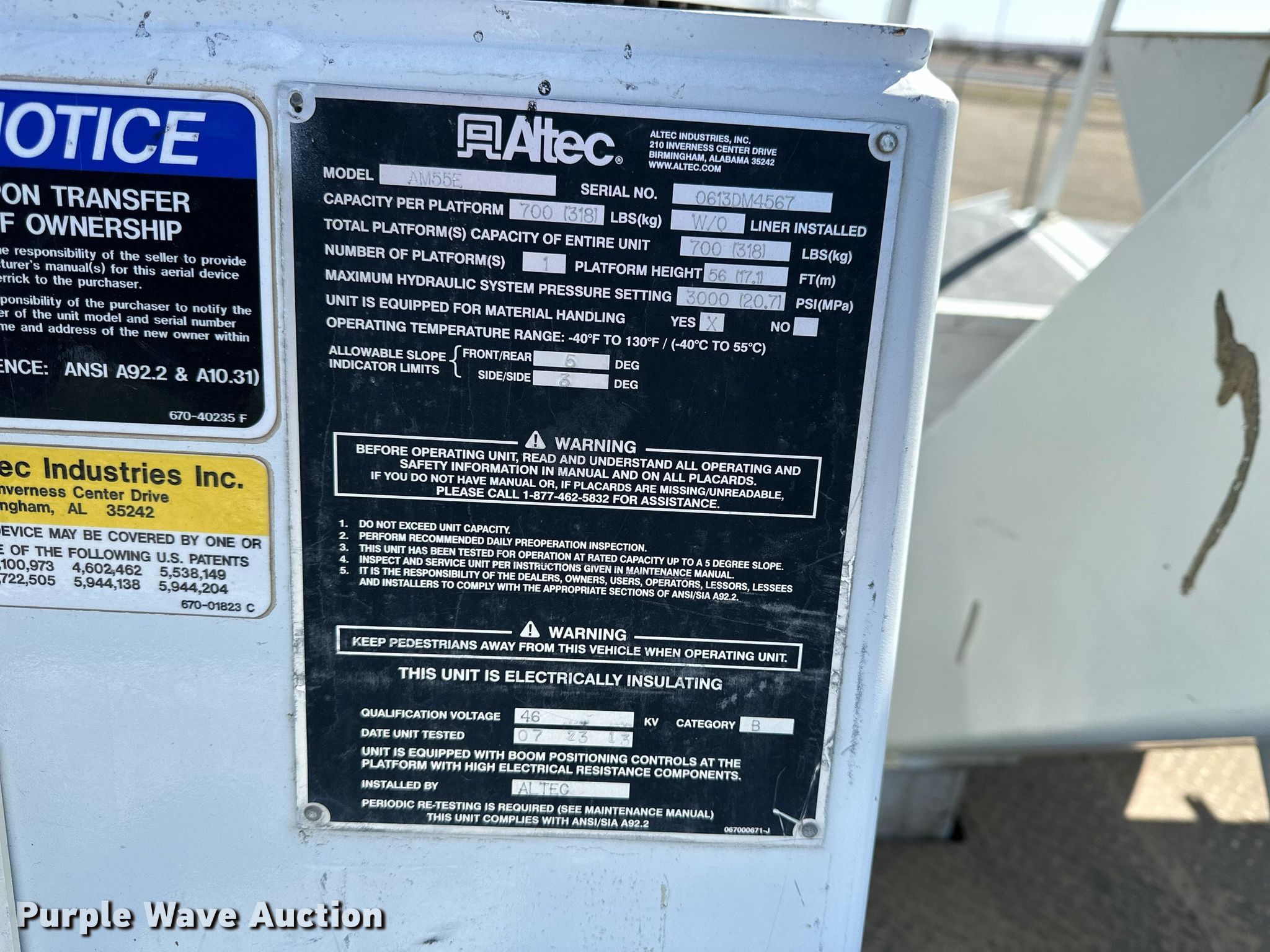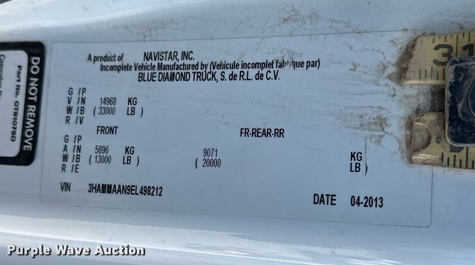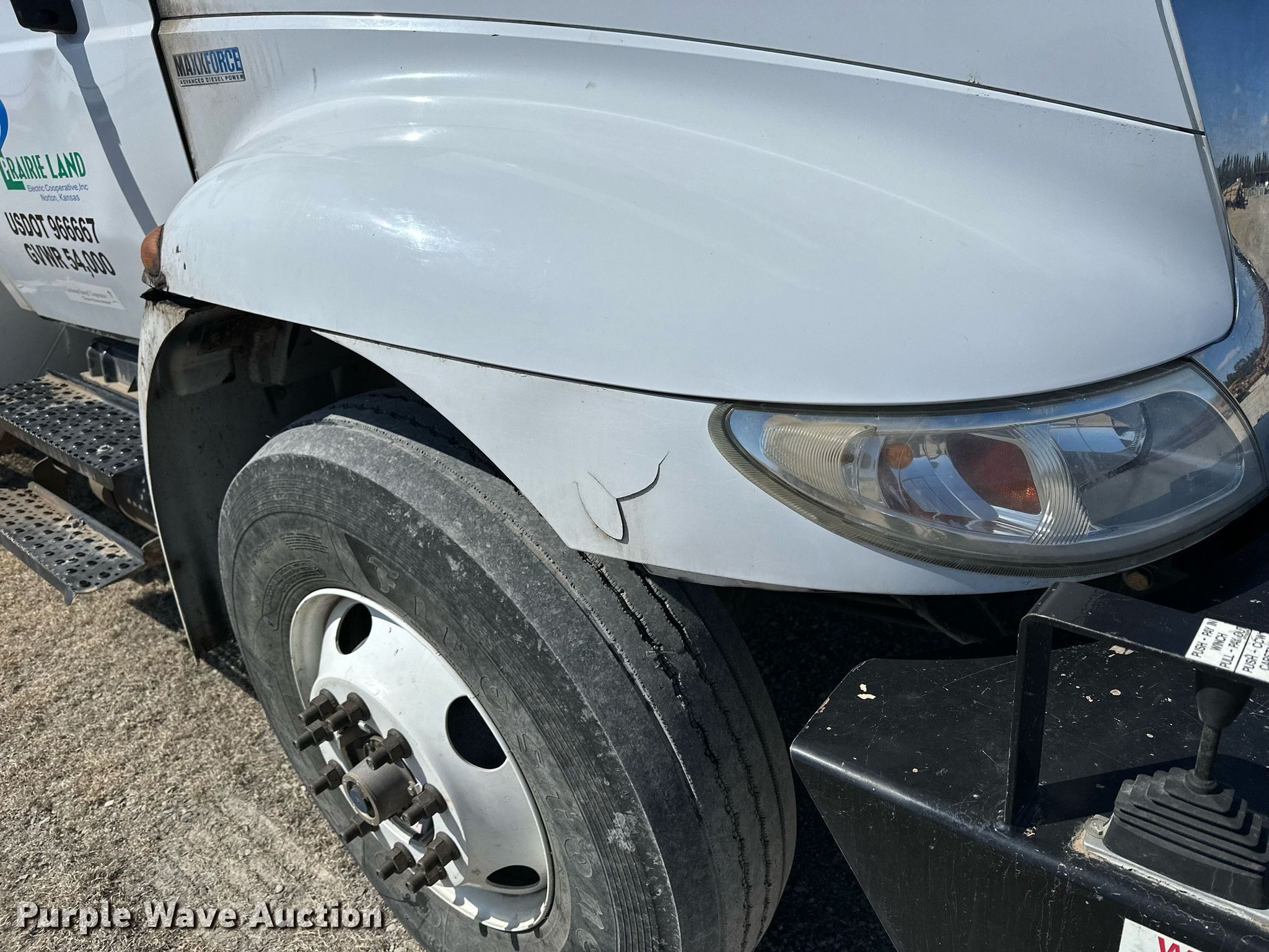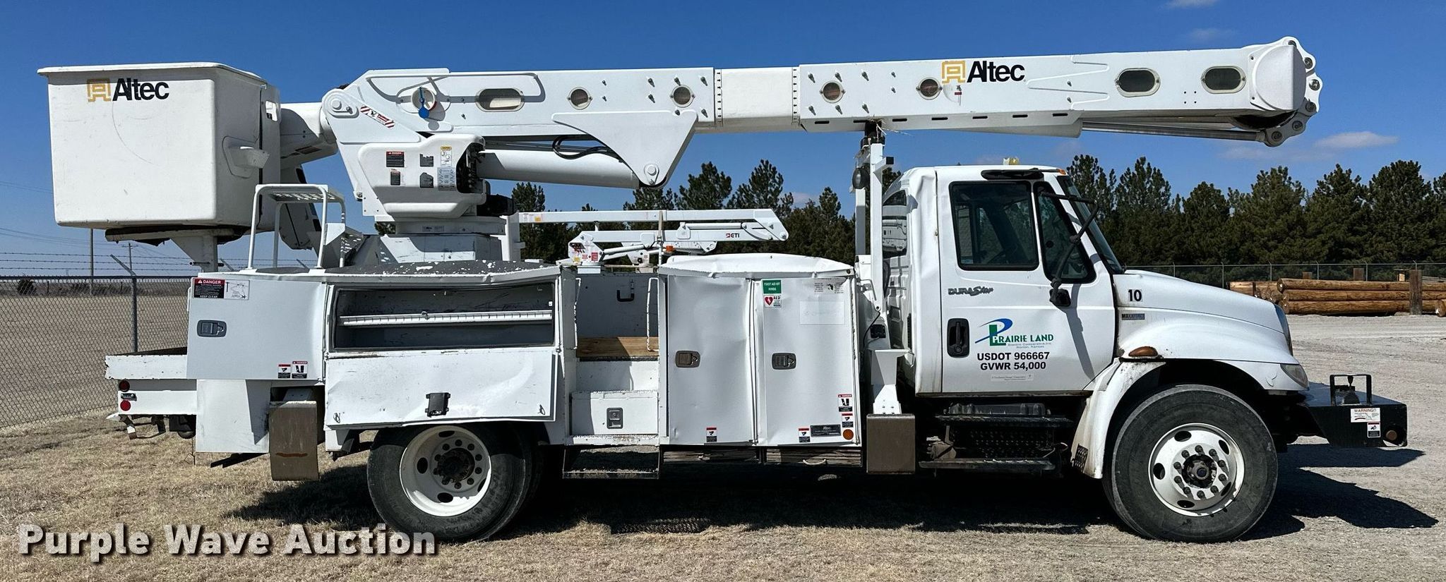 2014 International DuraStar 4300 bucket truck. Miles: 139,086 on odometer, VIN: 3HAMMAAN9EL498212. Engine International MaxxForce, Displacement: 7.6L, Cylinders: 6, Fuel type: Diesel. Transmission Allison, Automatic. Chassis Axles: Single, Suspension: Spring, Brakes: Air, PTO, GVWR: 33,000 lbs. Interior AC, Heat, Cruise control. Features Bed Altec, 16' L x 94" W, Boom Altec AM55E, Serial: 0613DM4567, Maximum lift capacity: 700 lbs, Maximum lift height: 56', Boom type: Articulating, Man basket, Boom controls Ground, Platform/ basket.. Tires Front: 12R22.5, Rear: 11R22.5. Notes Dash warning indicator: Check engine, Water in fuel, Collision damage. Kansas title. Title distribution may be delayed up to 14 days from verification of funds. Prairie Land Electric Coop Inc.. 14935 US-36. Norton, KS 67654