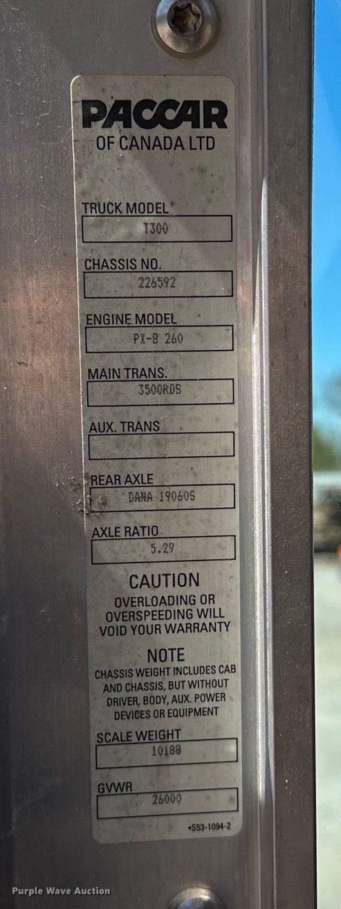 2008 Kenworth T300 dump truck. Miles: 88,032 on odometer, Hours: 7,029 on meter, VIN: 2NKMHN6X58M226592. Engine Paccar PX-8, Cylinders: 6, Fuel type: Diesel, Engine brake. Transmission Automatic. Chassis Double frame, Axles: Single, Suspension: Spring, Brakes: Air, PTO, GVWR: 26,000 lbs FAWR: 8,000 lbs, RAWR: 18,000 lbs. Interior AC, Heat, Cruise control. Features Dump bed Ox Bodies 16" Flat, 16' L x 99" W, Side height: 48", Bed type: Steel, Roll tarp, Ram: Dual. Tires Size: 295/75R22.5. Oklahoma title. Title distribution may be delayed up to 14 days from verification of funds. Urban Contractors, LLC. 7113 North Bryant Avenue. Oklahoma City, OK 73111