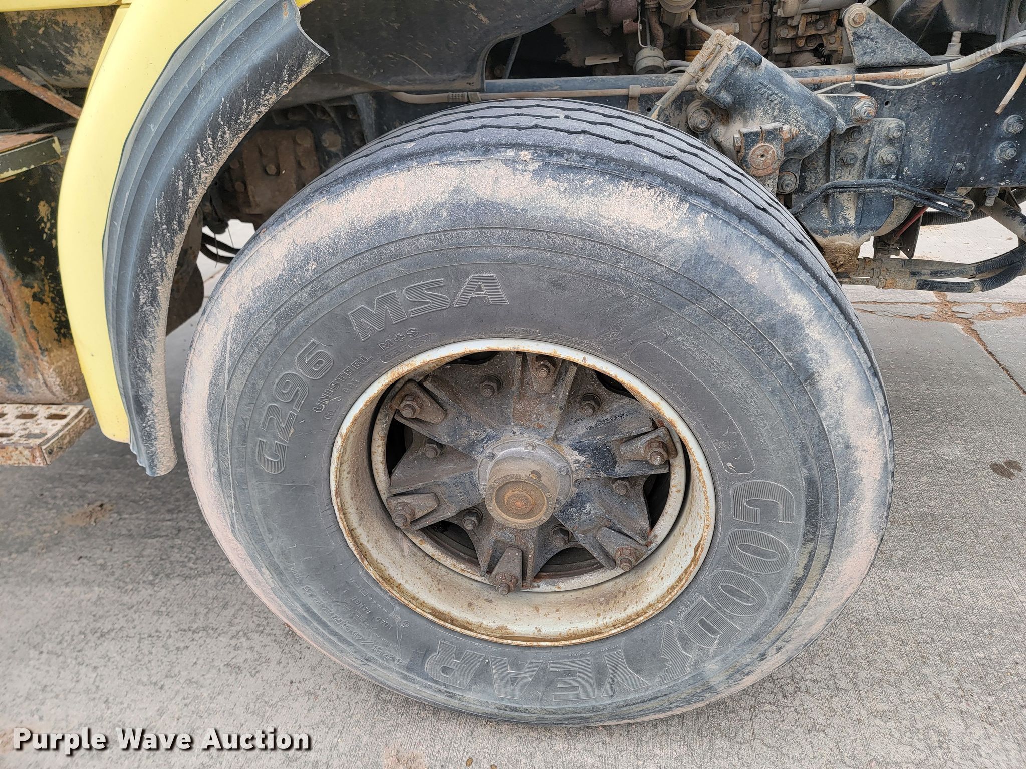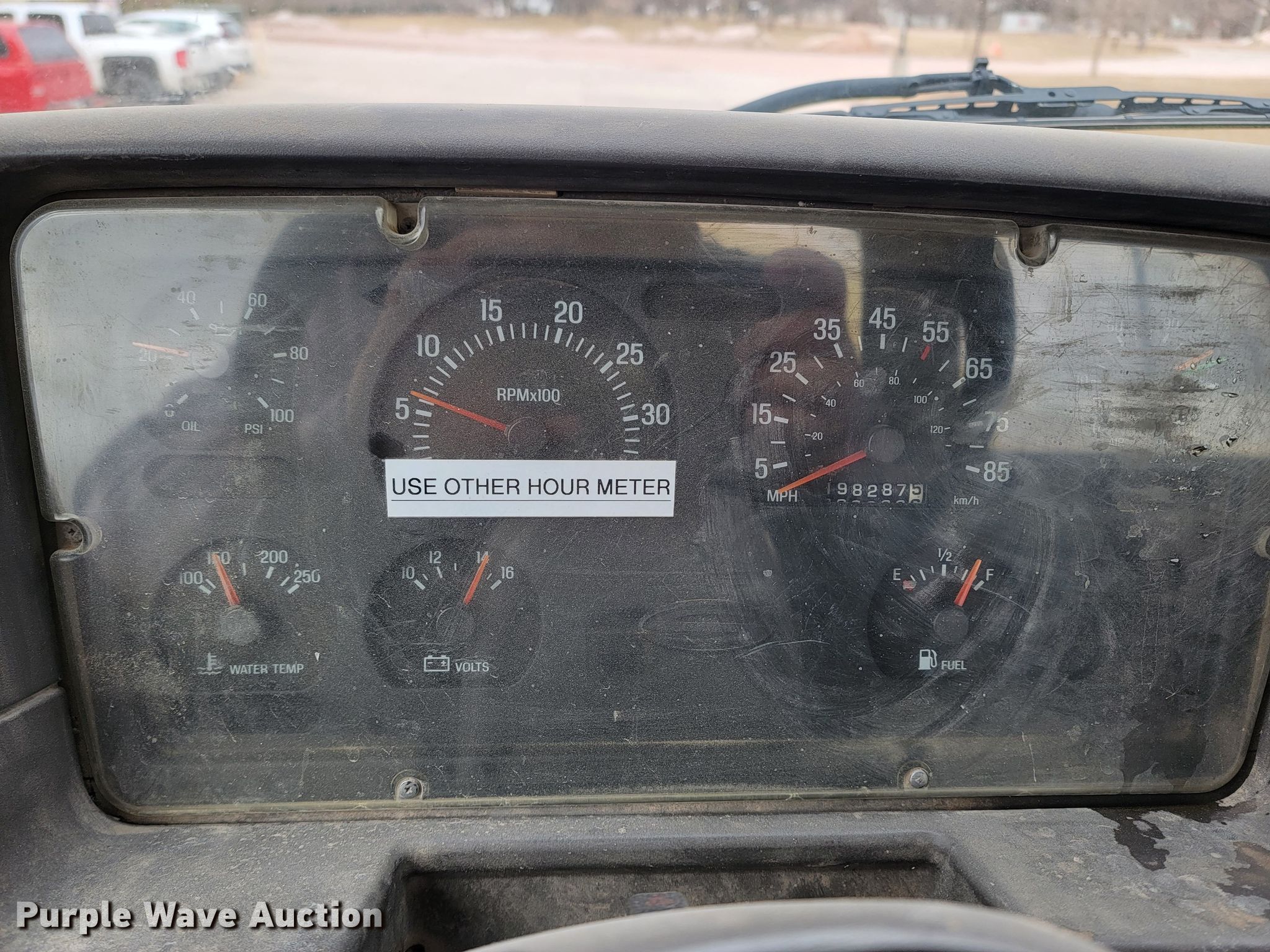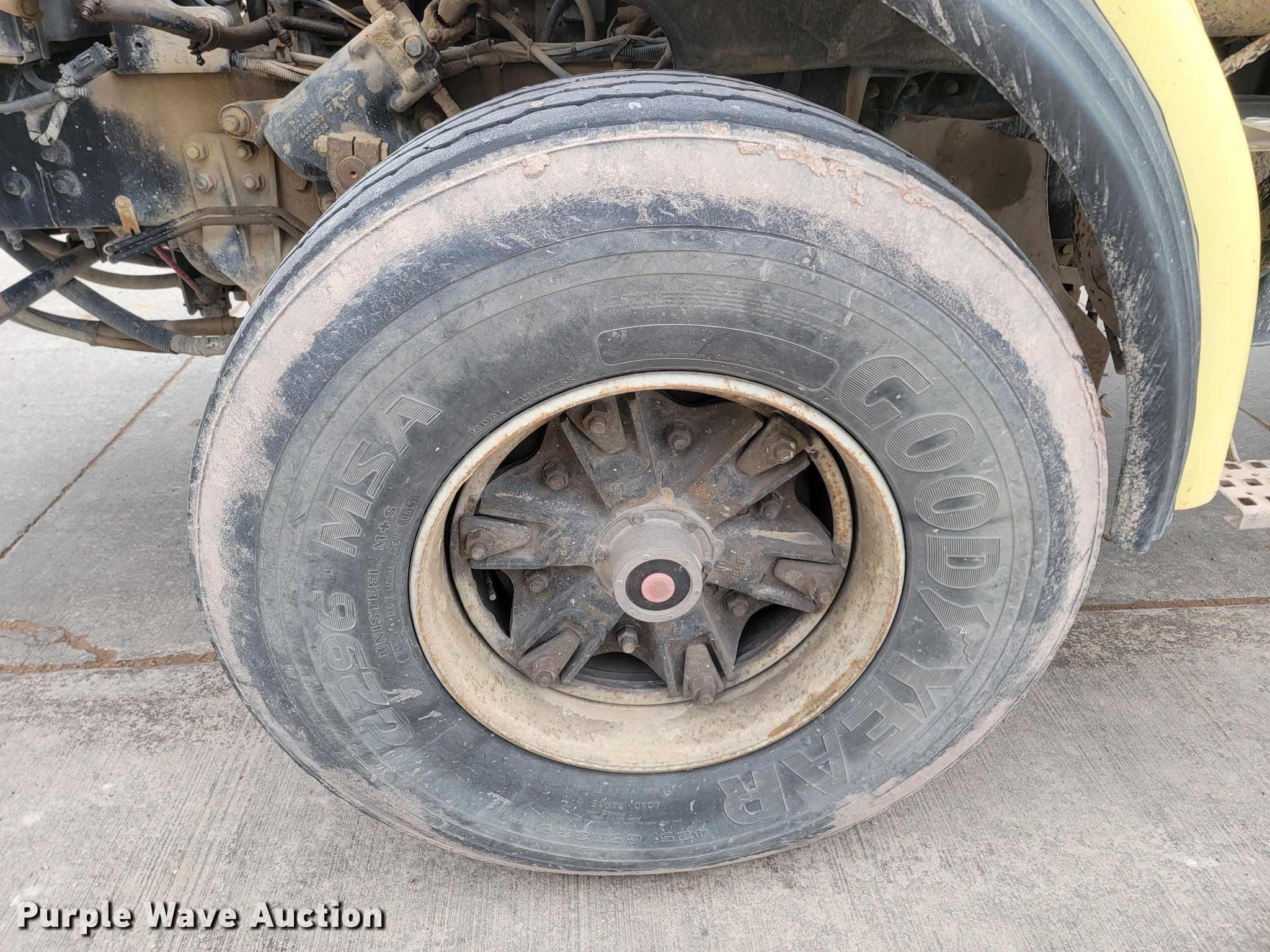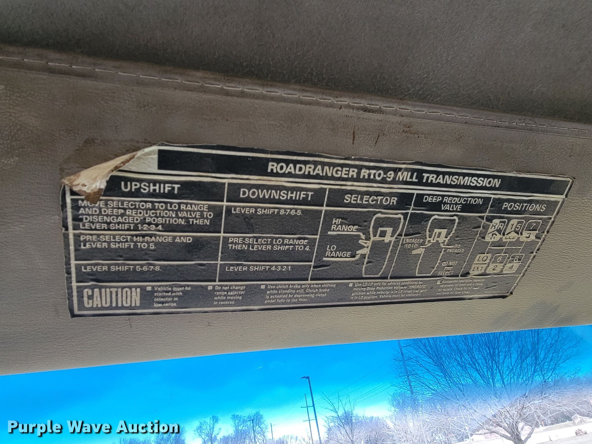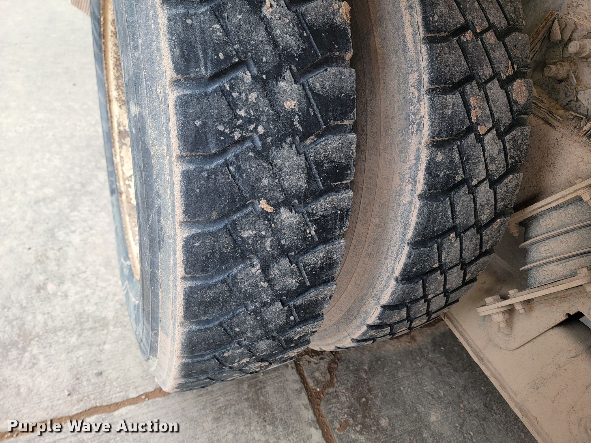 2002 Sterling LT8500 ready mix truck. Miles: 198,288 on odometer, Hours: 2,669 on meter, VIN: 2FZHAWAK82AJ62505. Engine Caterpillar 3126, Displacement: 7.2L, Cylinders: 6, Fuel type: Diesel. Transmission Eaton Fuller Road Ranger RTO-9, Manual, Speed: 11. Chassis Axles: Tandem, Differential lock: Inter-axle, Suspension: Spring over walking beam, Brakes: Air, Front mount PTO. Interior AC, Heat, Cruise control. Features Mixer Kimble Mixer Company K-2000, Serial: KS290HD1872, Capacity: 10 cu.yd., Discharge: Rear, In-cab controls, Rear drum controls, Water tank capacity: 125 gallons, Chute Extensions: 3, Chute type: Steel.. Tires Front: 425/65R22.5, Rear: 11R22.5. South Dakota title. Title distribution may be delayed up to 14 days from verification of funds. Knife River. 1305 North Louise Avenue. Sioux Falls, SD 57107