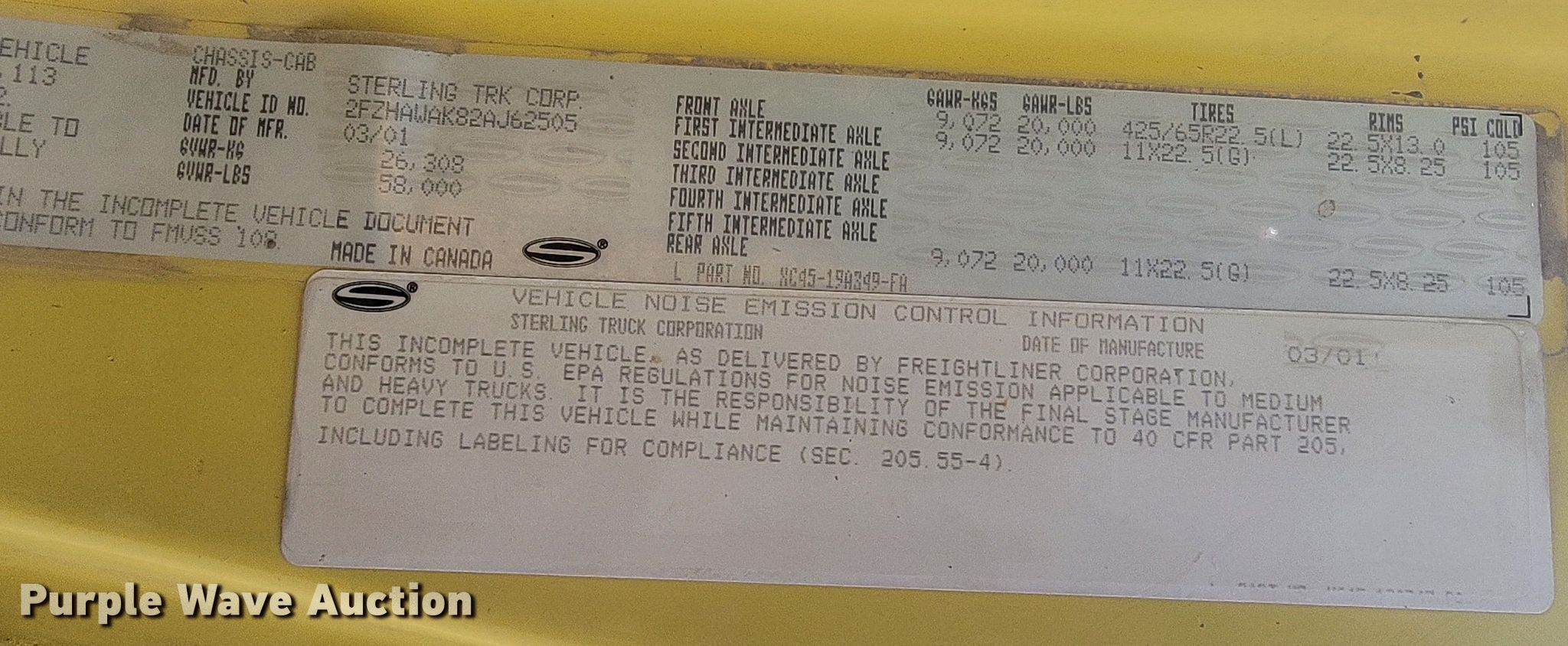 Purple Wave is selling a used Ready Mix or Pump Truck in South Dakota. This item is a 2002 Sterling LT8500 ready mix truck with the following: Miles: 198,288 on odometer, Hours: 2,669 on meter, VIN: 2FZHAWAK82AJ62505